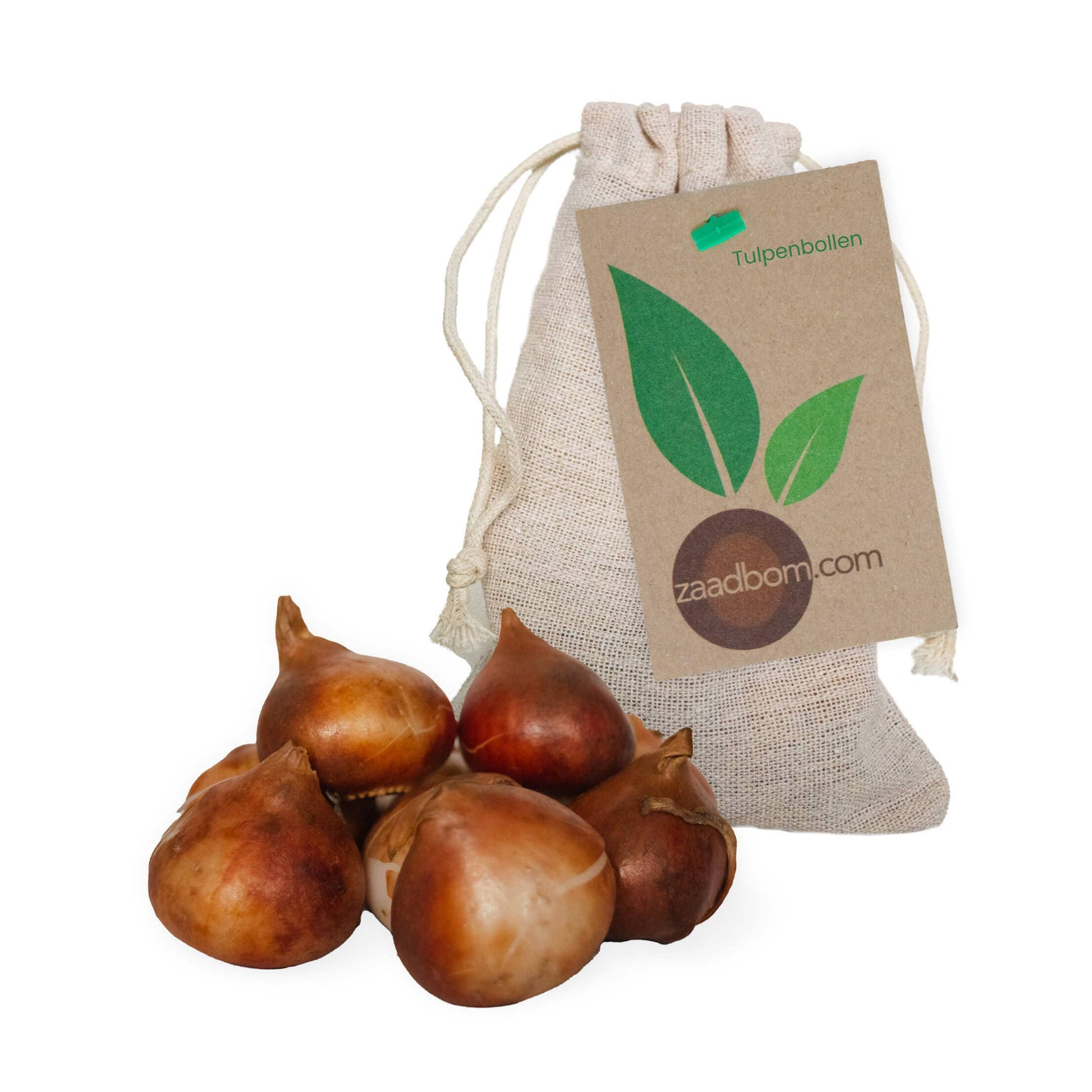 The tulip bulbs are of high quality and are grown in the Netherlands. They are suitable for planting in the garden as well as for planting in pots. In spring, tulips bloom and give your garden or home a colorful boost. The beautifully packaged tulip bulbs in a jute bag are also ideal as a gift.