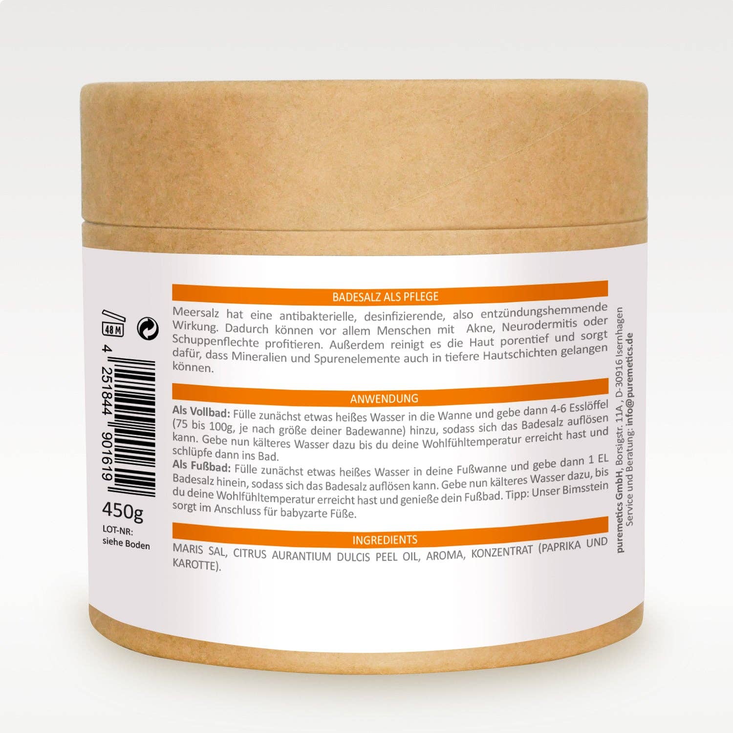 Treat yourself to pure relaxation with the Vanilla & Orange Aroma Bath . This handcrafted sea salt bath combines the sweet warmth of vanilla with the tangy freshness of orange—an olfactory duet that revitalizes body and mind. Up to five treatments offer you a sensual retreat full of well-being and balance.