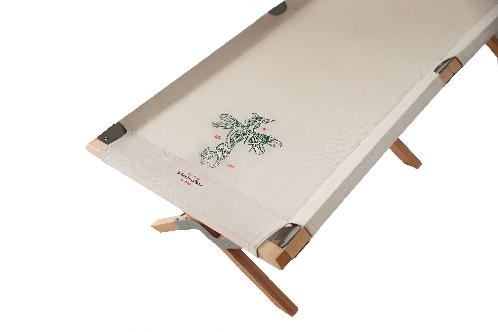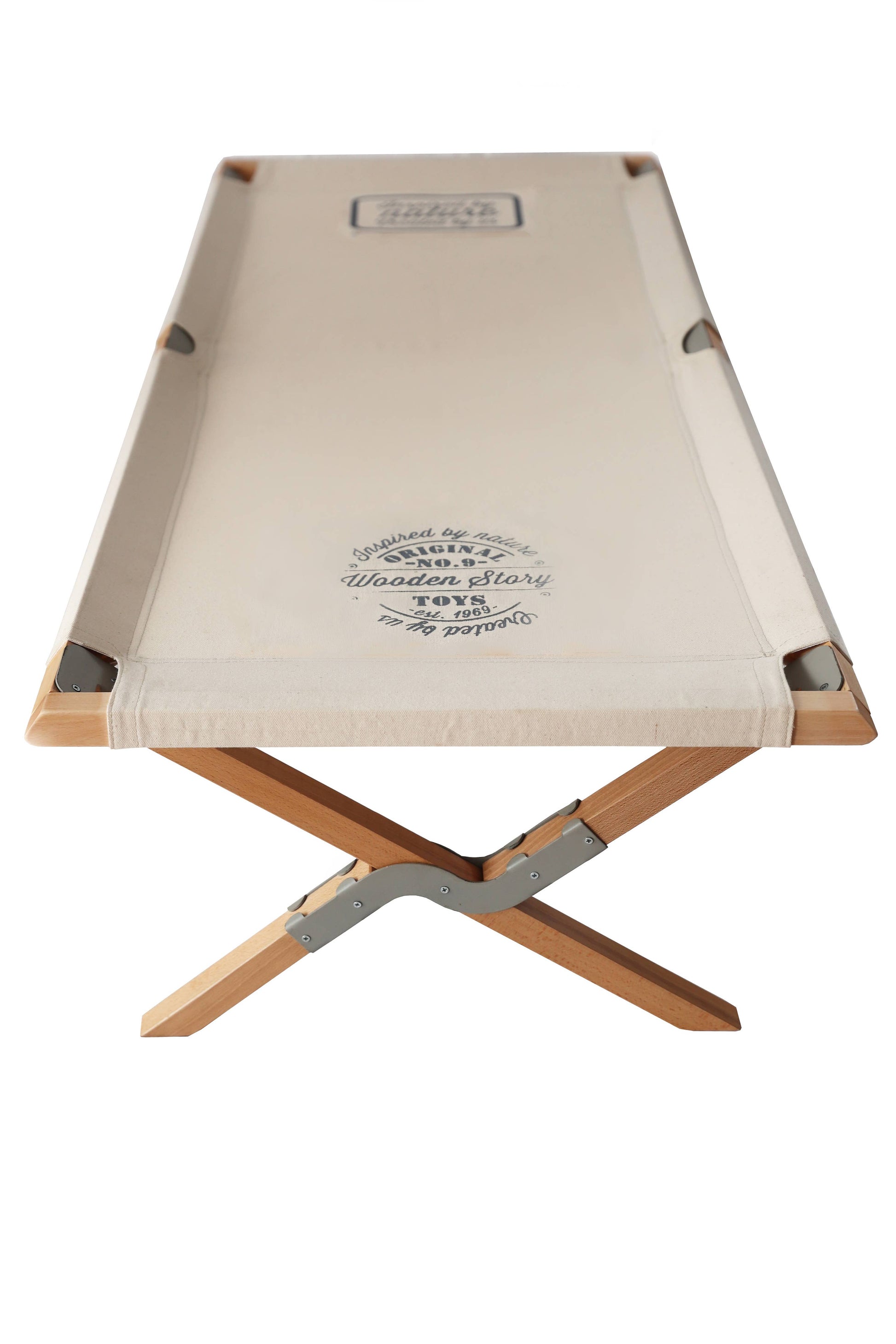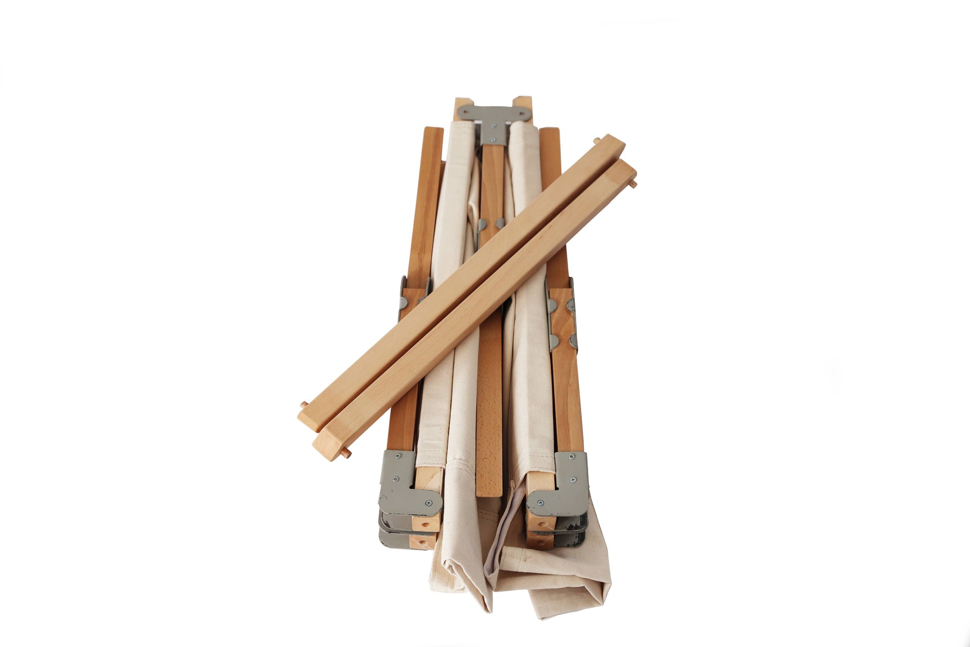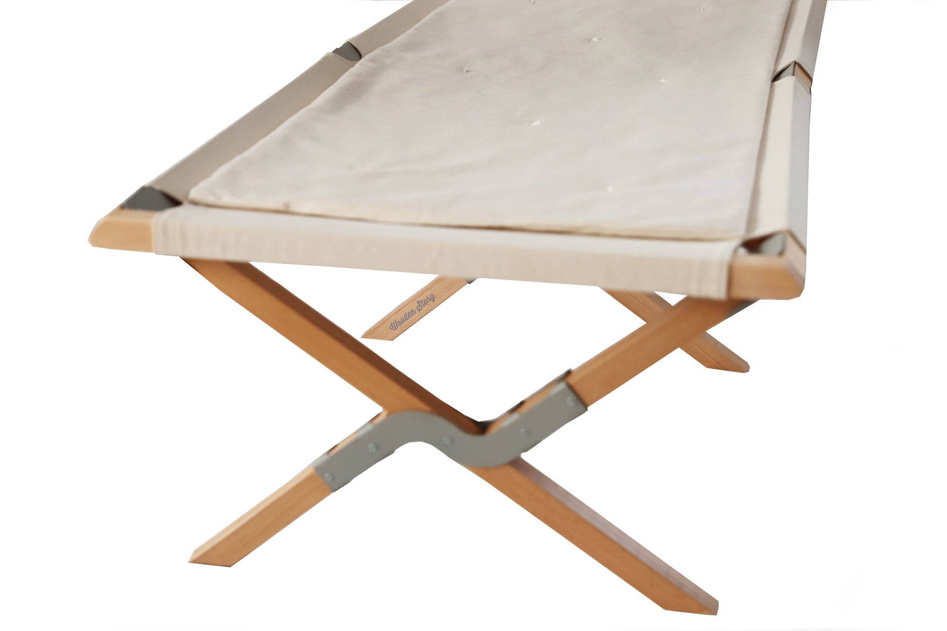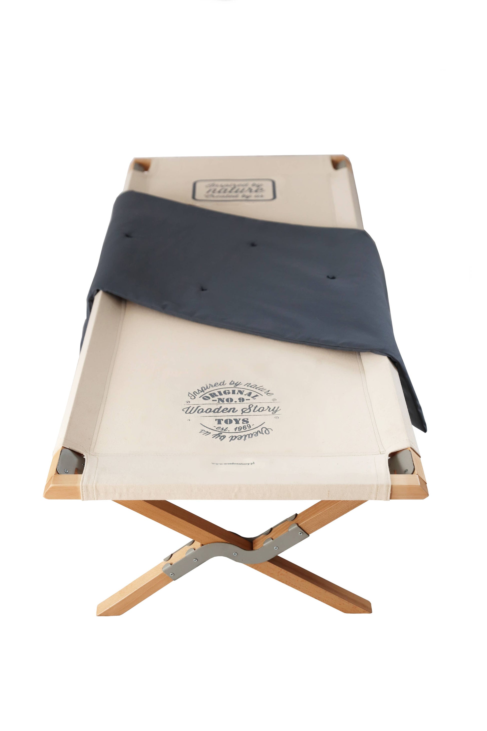 Bed to Go is a foldable bed for children that's perfect for camping, naps on the porch, balcony, or in a tent. It's also a great solution for unexpected guests. The bed folds up and down quickly, and a practical shoulder strap makes it easy to transport without straining your hands. When folded, it takes up little space, and when unfolded, it provides a comfortable resting area – ideal for any occasion. Made from natural materials, safe for children. Free from harmful substances. Environmentally friendly product. Made in the Beskids.