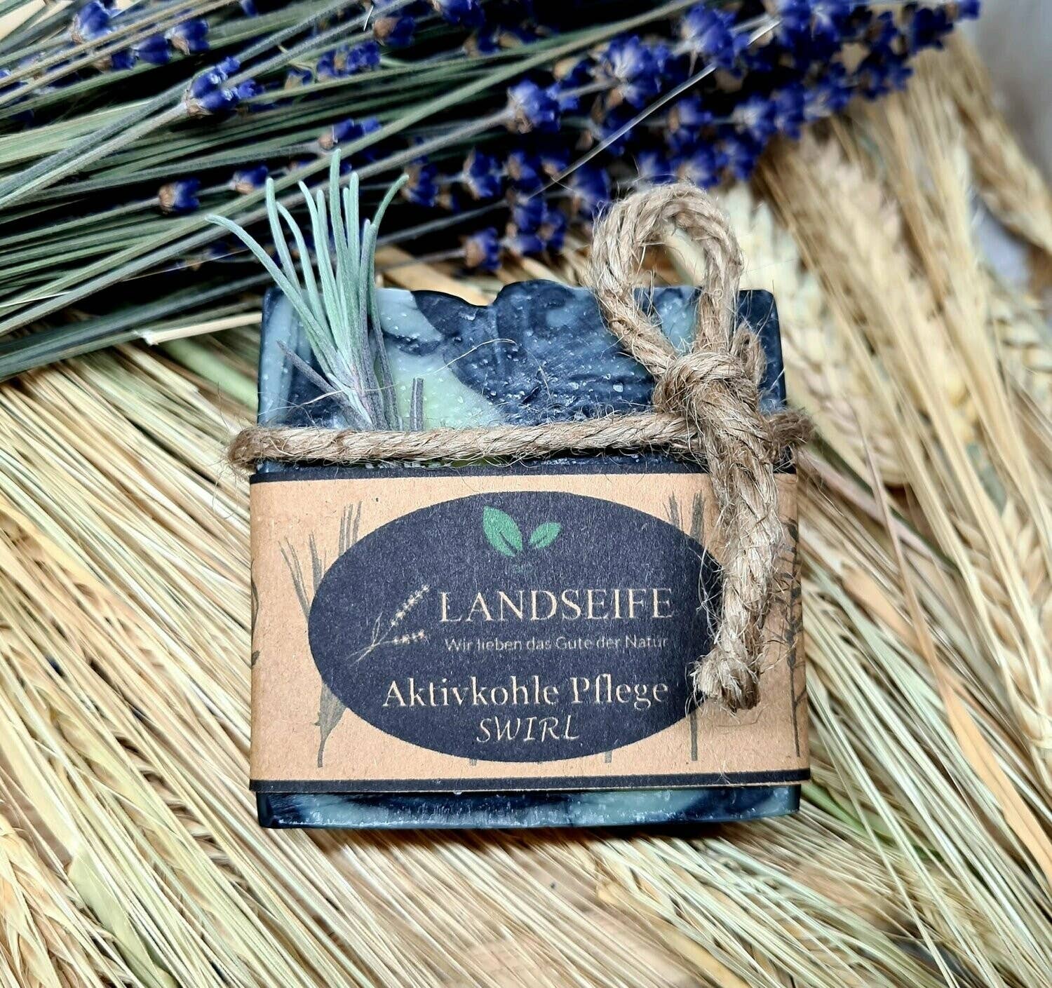 By popular demand, we have developed this Swirl Edition of our activated charcoal country soap. This natural soap features a charming black and white pattern. A real eye-catcher in any bathroom. Just like the Activated Charcoal Body Soap, the Swirl Edition is ideal for facial cleansing and shaving. A tangy, fresh herbal scent of rosemary and thyme invigorates body and soul. The activated charcoal it contains ensures deep pore cleansing of the face and helps combat pimples and blackheads. The multitude of high-quality oils richly nourishes and revitalizes your skin, eliminating the need for additional moisturizers after washing your face.