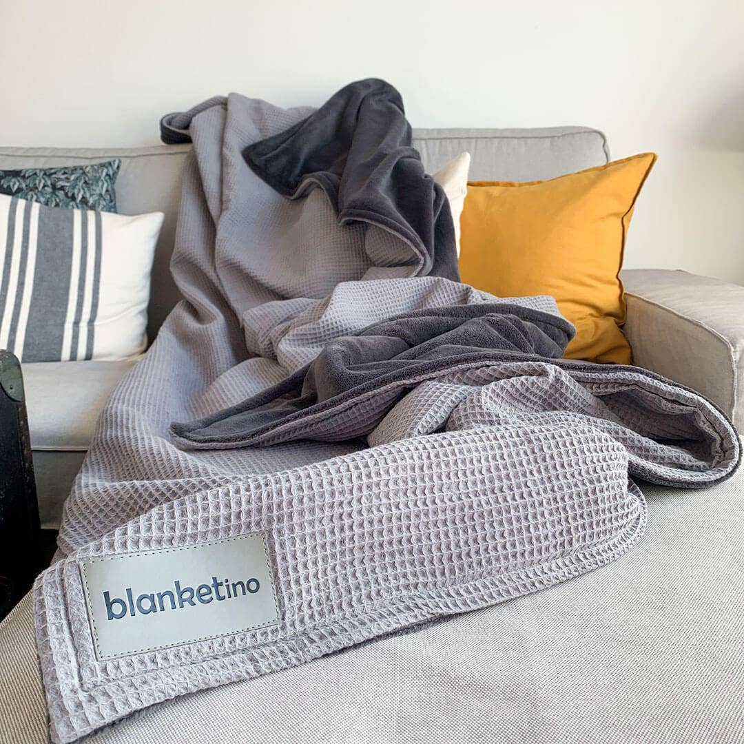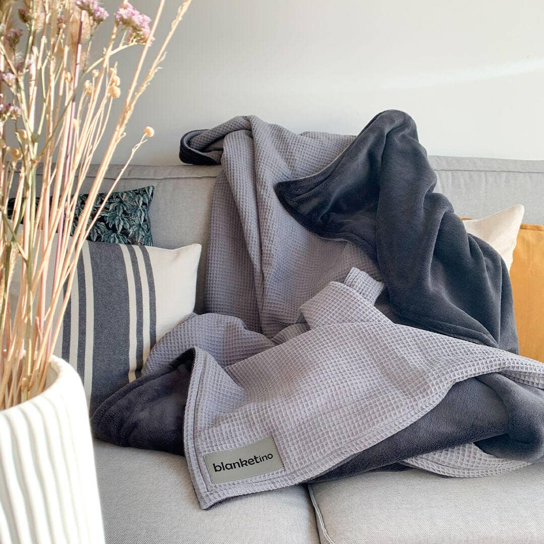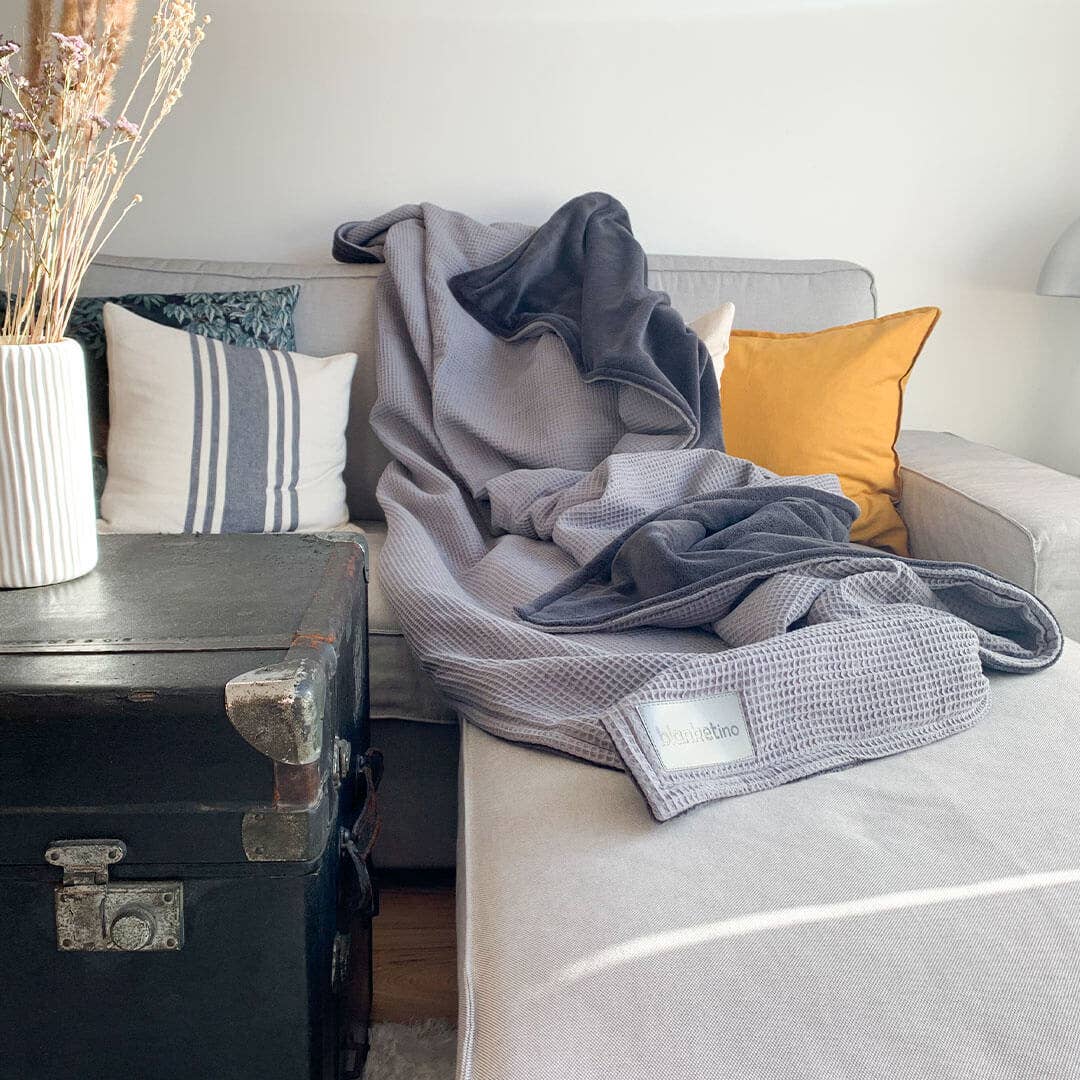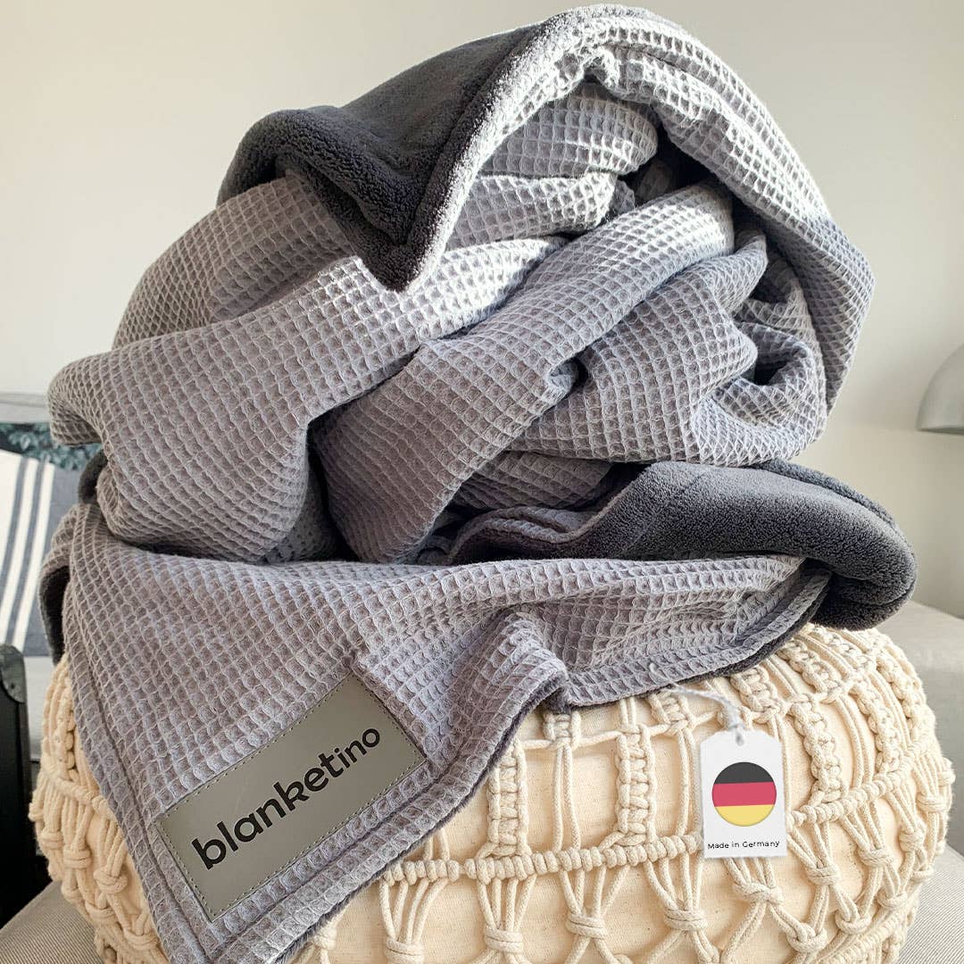 Made from high-quality waffle piqué made of 100% cotton and soft wellness fleece made of 100% synthetic fiber, the blanket impresses with its pleasant feel and comfort. The combination of both materials ensures a soft, cozy feeling against the skin, while the breathable waffle piqué side is especially suitable for warmer days.