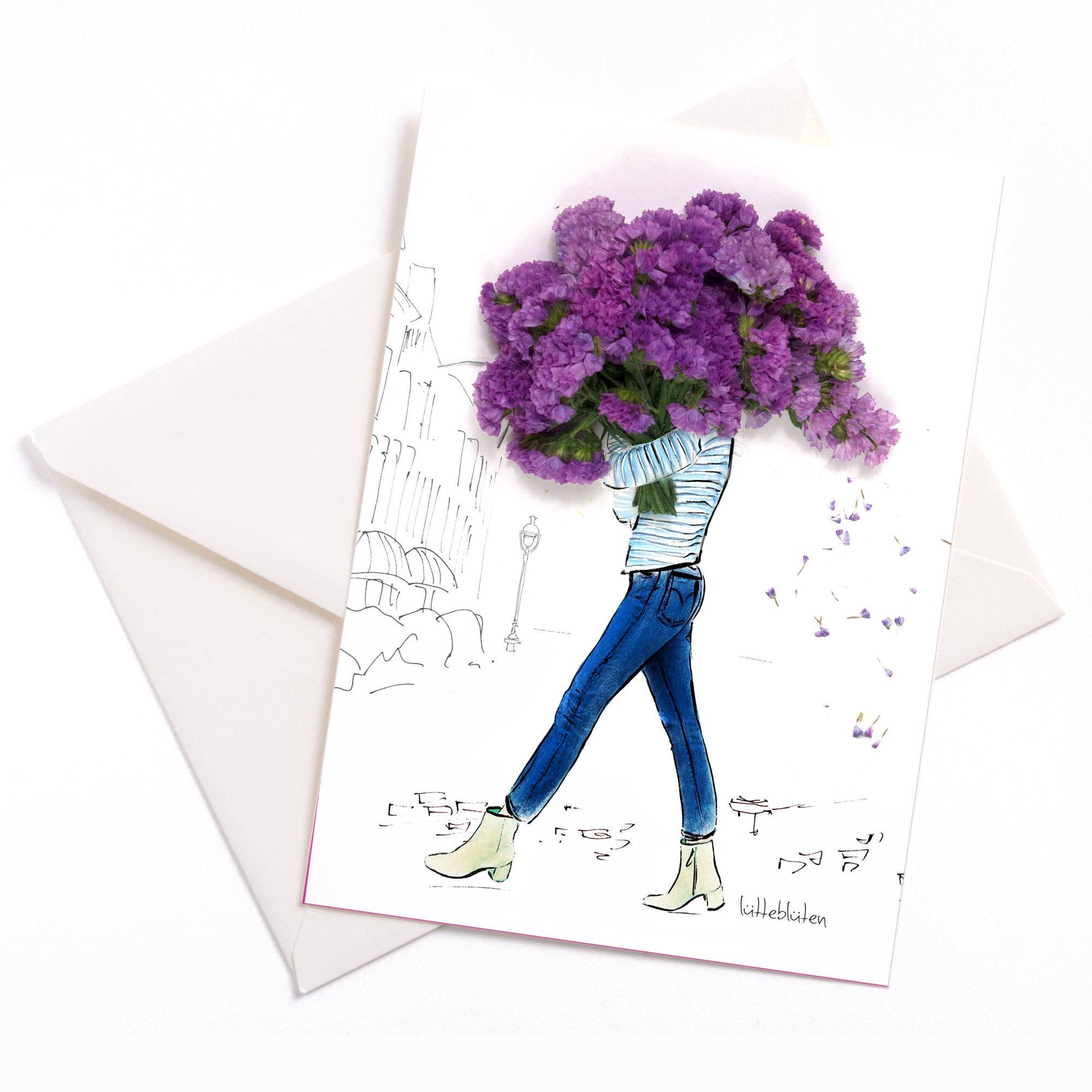 “Flowers are the most beautiful words in nature” Johann Wolfgang Goethe A6 105 x 148 mm including envelope The card is made of four layers of Mohawk Superfine paper, making it wonderfully thick (600 g/m). There's a colored border between each layer of paper. The beautiful texture gives the card a completely natural, uncoated feel and makes it very easy to write on.