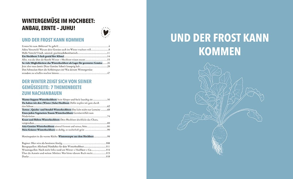 In her book "The Sensational Winter Raised Bed," Doris Kampas shows you how to make the most of your raised bed and harvest crisp vegetables even in winter. Whether it's winter salads, herbs, or root vegetables, the experienced "raised bed queen" provides in-depth knowledge, practical instructions, and inspiring ideas that prove: gardening is possible in any season.