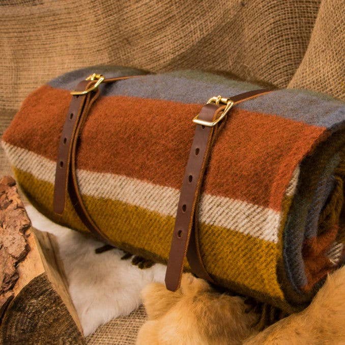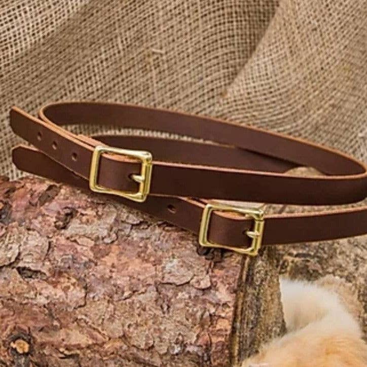 Our leather blanket straps are made from 3.5 mm thick brown vegetable-tanned leather. They feature a solid brass buckle and seven adjustment holes. The straps are approximately 75 cm long. Sold as a pair.