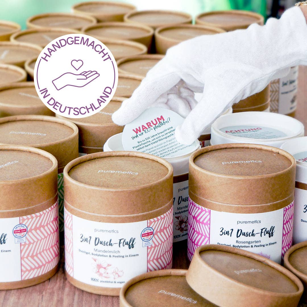 Eine kleine Menge des Dusch-Fluffs in den Händen oder direkt auf der Haut verteilen, sanft einmassieren und anschließend gründlich mit Wasser abspülen. Geeignet für die tägliche Körperreinigung.