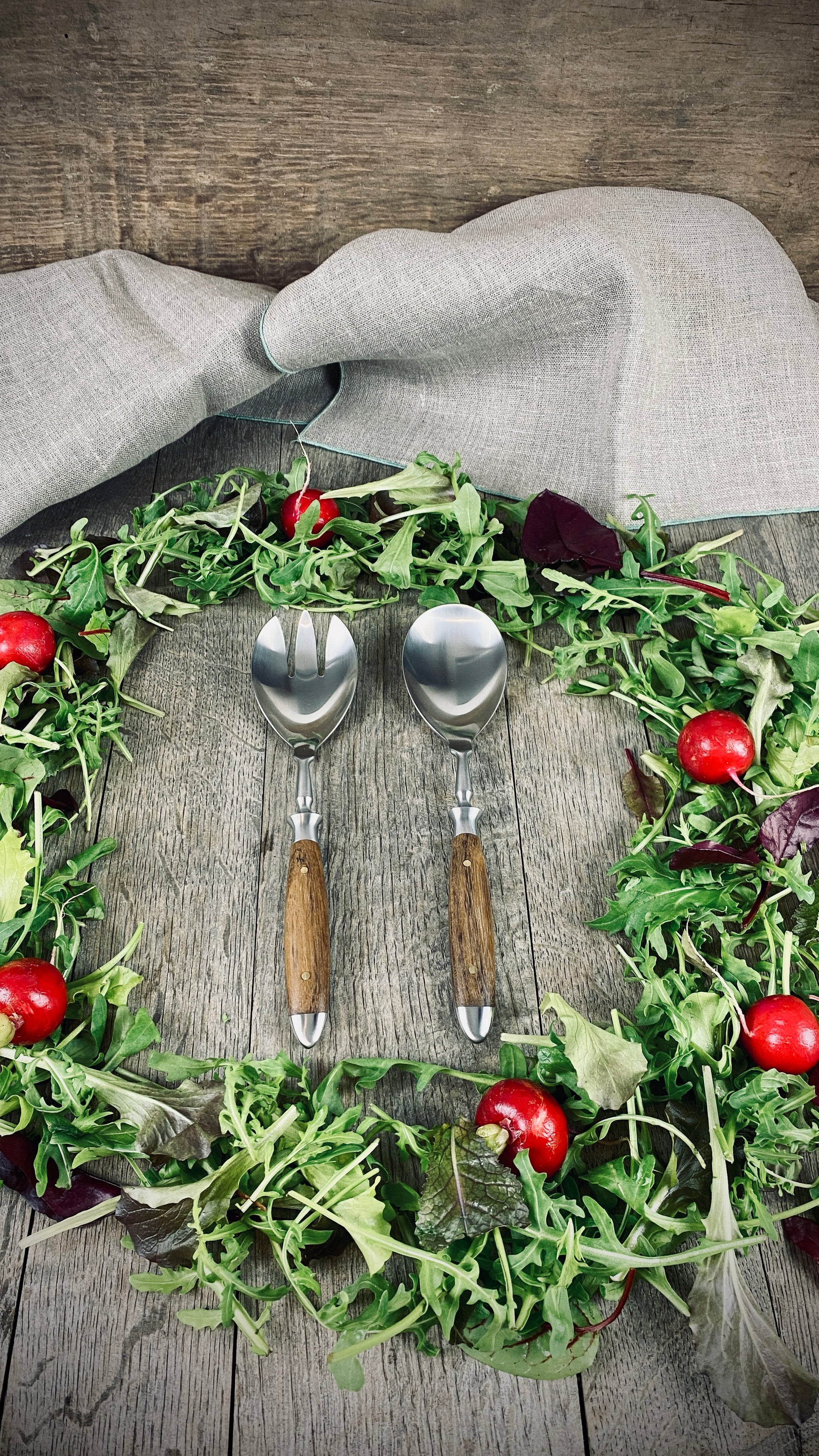 Salad cutlery set from Eichenlaub consisting of a salad fork and a salad spoon of the highest quality.