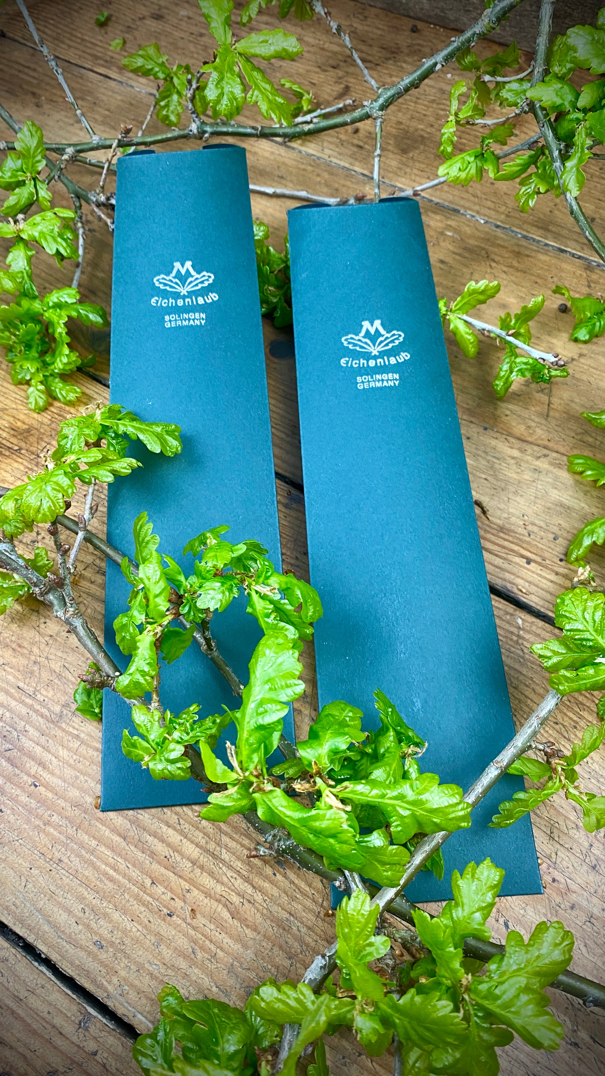 In an age where mass production and fast-paced lifestyles dominate the market, Eichenlaub inspires us with genuine craftsmanship, uncompromising quality, and timeless elegance. The cutlery is not only functional but also aesthetically pleasing and feels perfectly in the hand. It quickly became clear to us: Eichenlaub belongs in our product range.