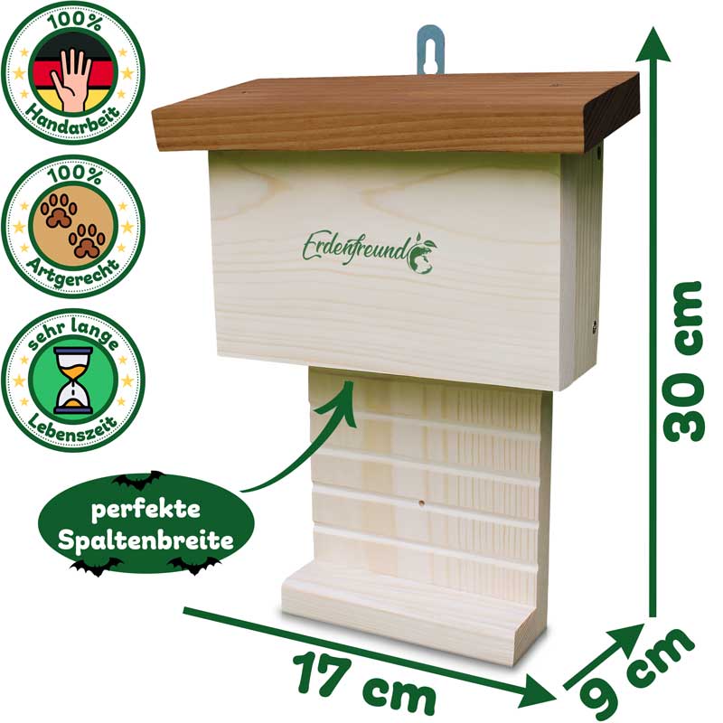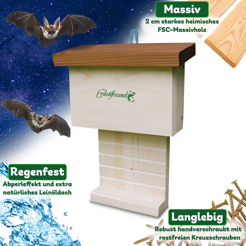 • Space-saving bat house – ideal for hanging in the garden or on buildings
