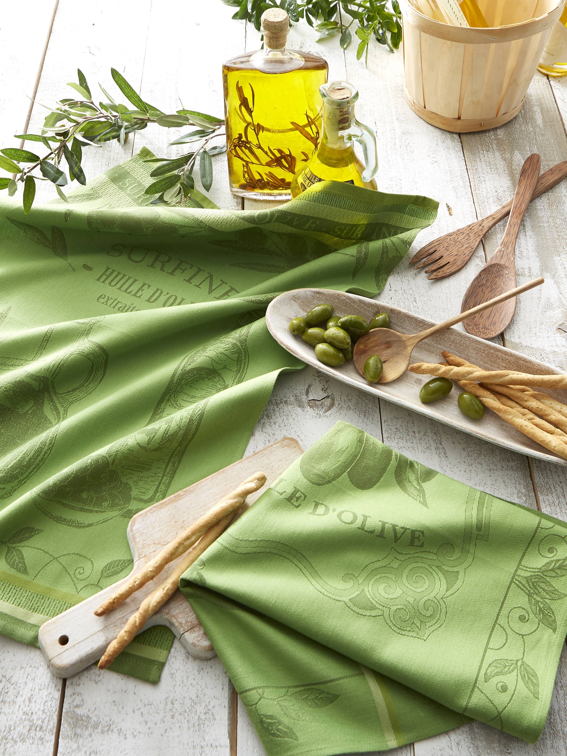 Olive oil! Appreciated for its flavor and benefits, it has become an indispensable element of French cuisine. All our tea towels are woven from cotton jacquard to ensure high durability and excellent water absorption. Material composition: 100% cotton. Dimensions: 50x75cm
