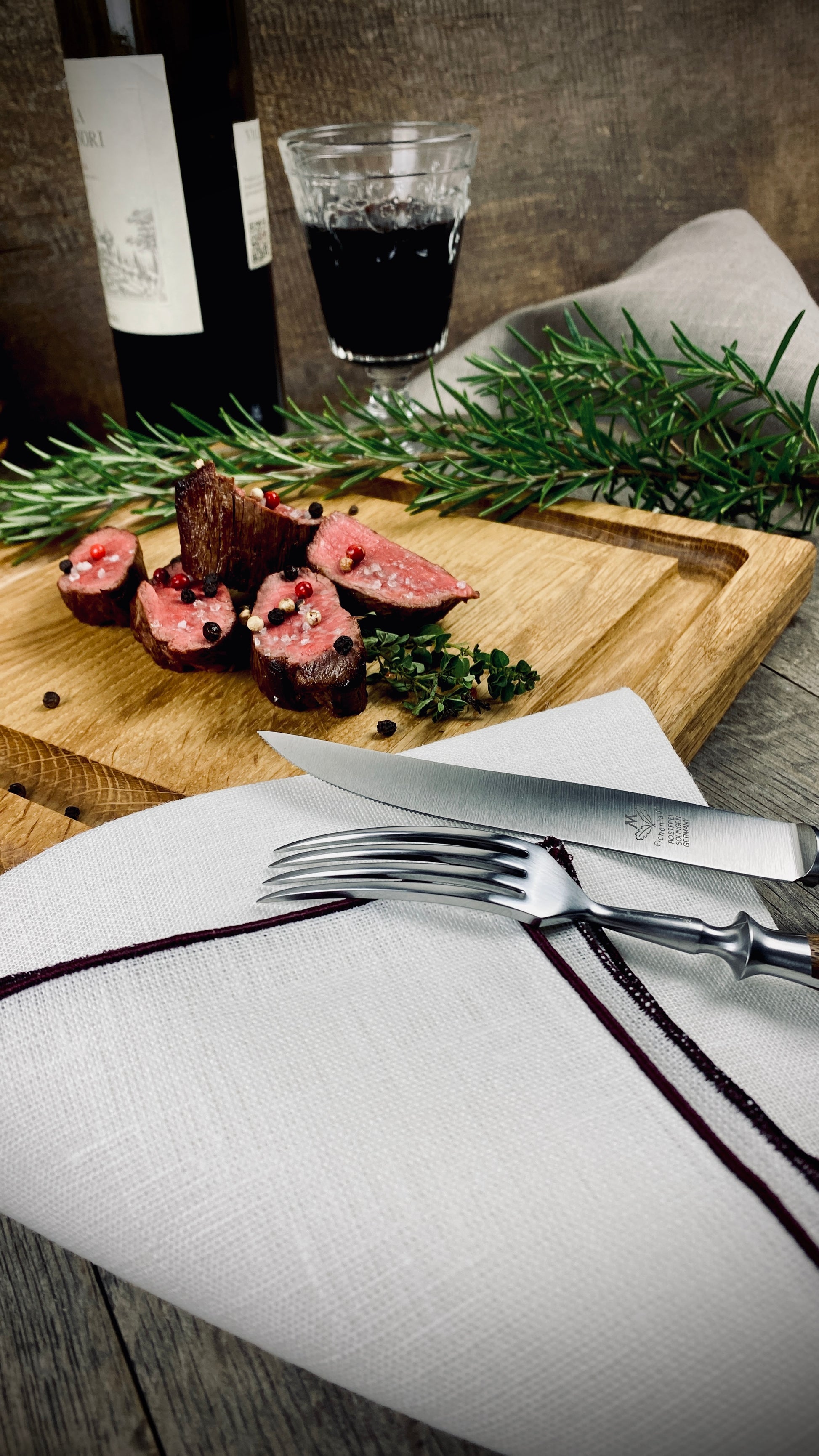 Eichenlaub focuses on the production of table cutlery for discerning connoisseurs. Whether table knives, forks, spoons, or specialty cutlery – all products are forged from a single piece of stainless chrome-vanadium steel, hand-ground, and finished with high-quality handle materials. The cutlery is characterized by its exceptional sharpness, perfect balance, and ergonomic handles, which enable effortless and precise use.