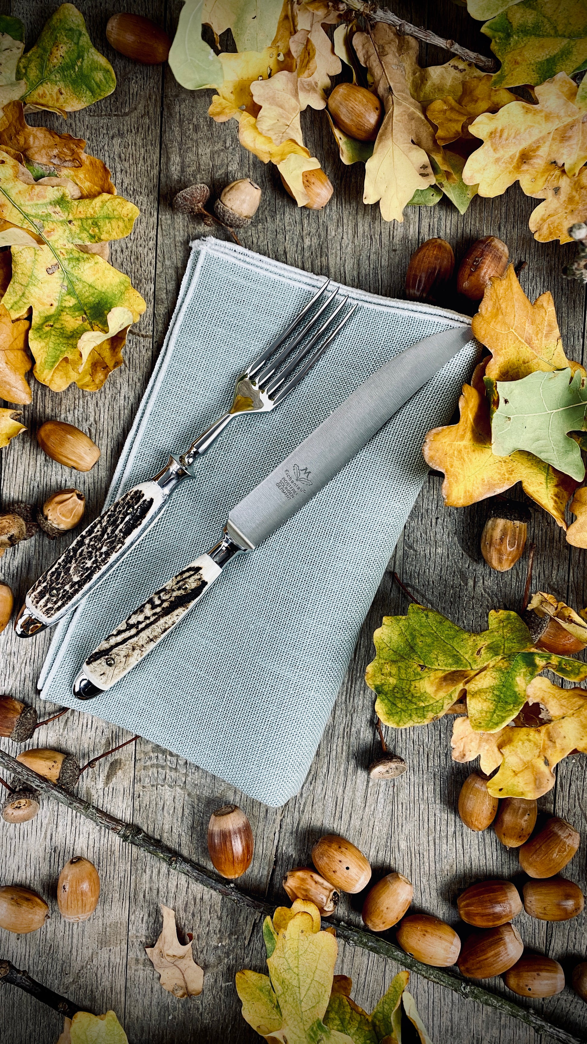 Eichenlaub focuses on the production of table cutlery for discerning connoisseurs. Whether table knives, forks, spoons, or specialty cutlery – all products are forged from a single piece of stainless chrome-vanadium steel, hand-ground, and finished with high-quality handle materials. The cutlery is characterized by its exceptional sharpness, perfect balance, and ergonomic handles, which enable effortless and precise use.