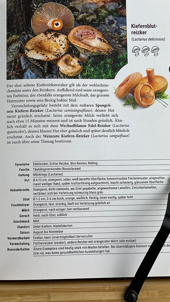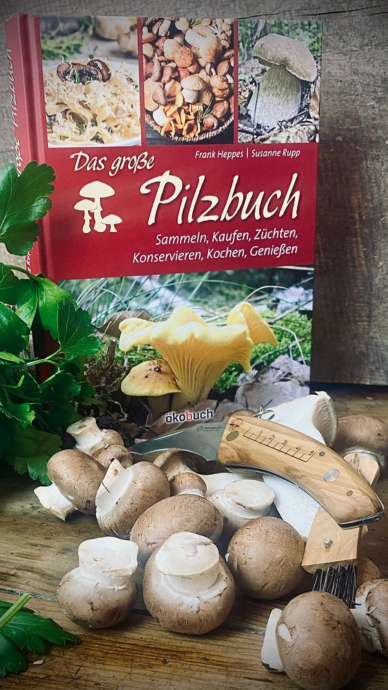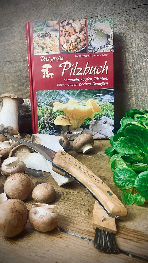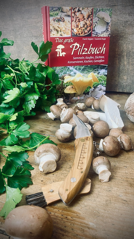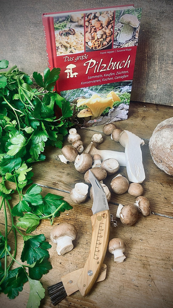 The ideal gift set for forest visitors and mushroom pickers: a comprehensive mushroom book and the ultimate mushroom knife from the renowned Maserin factory in Italy – lovingly packaged from our gift factory.