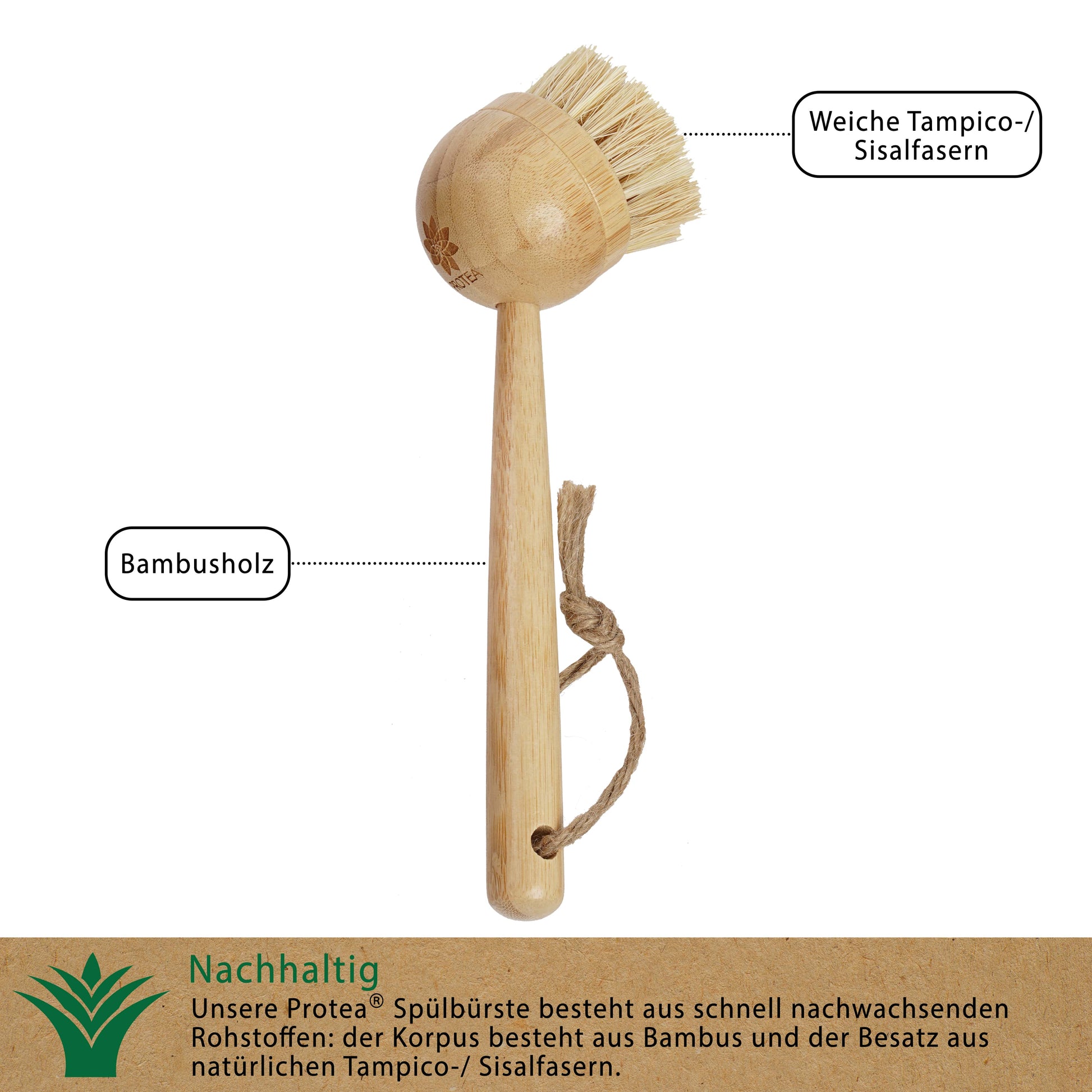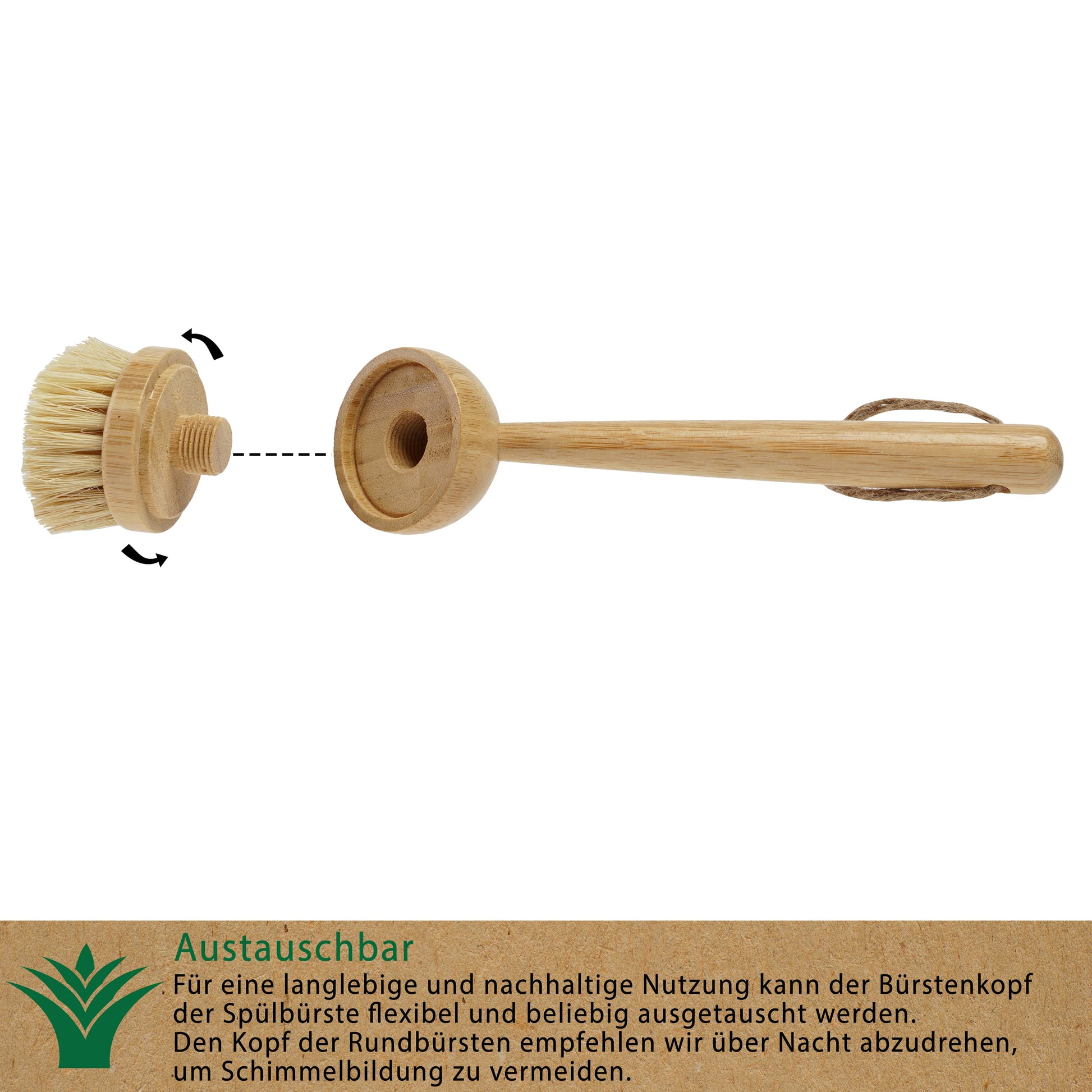 - Bamboo dish brush (with replacement head): approx. 21.5 × 6 × 5 cm