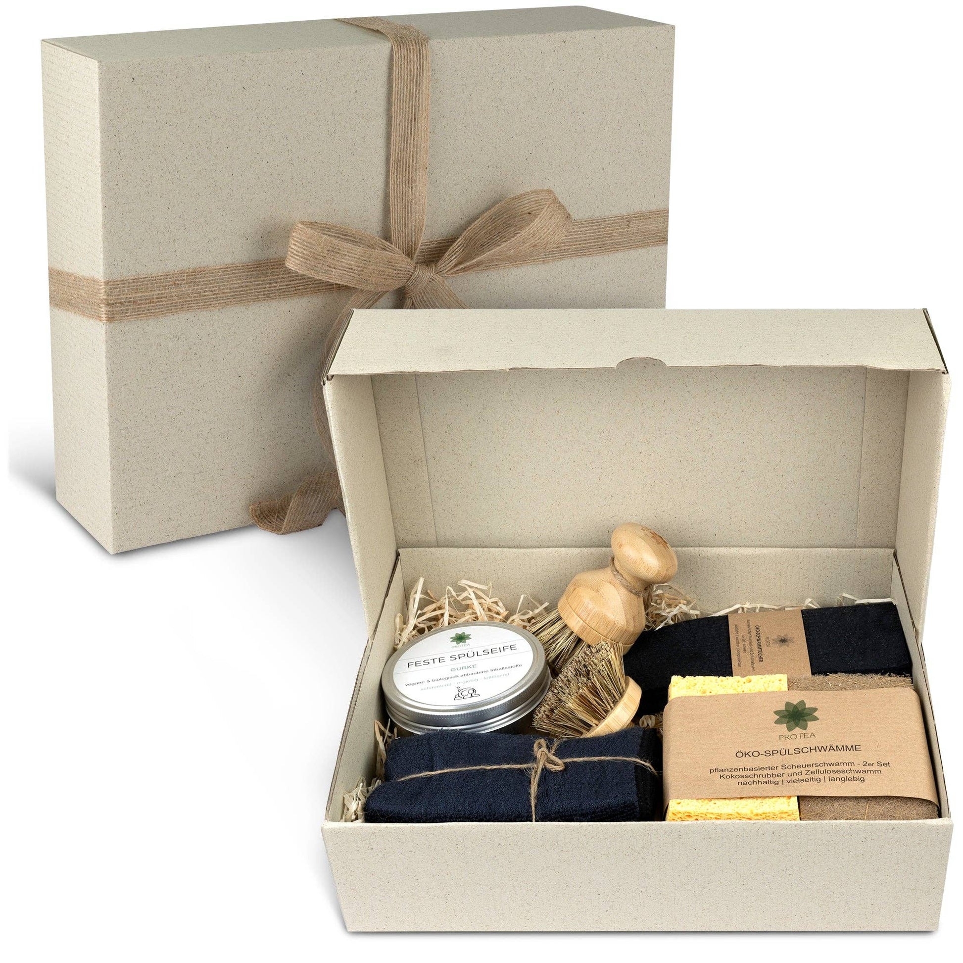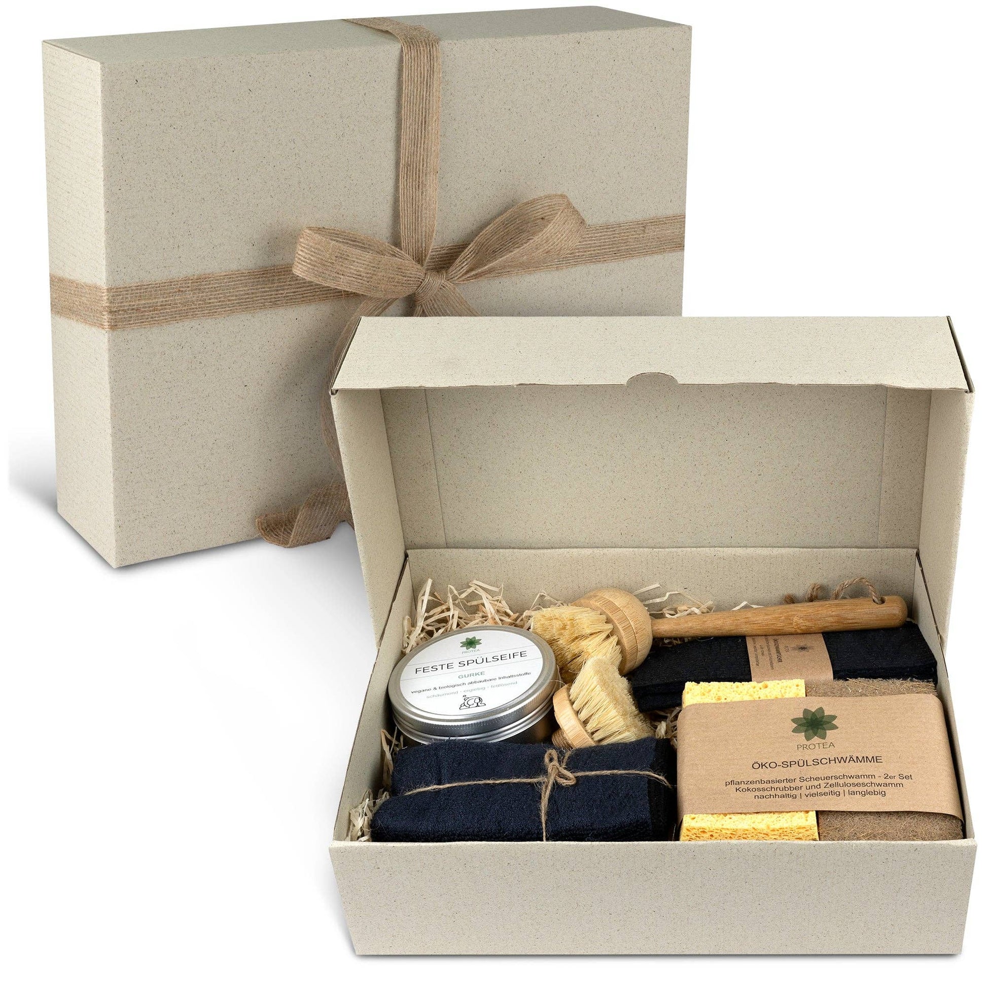 Are you looking for a sustainable gift that is meaningful, unique and practical? With our Sustainable Kitchen Helper Gift Box, you can surprise your loved ones with innovative everyday helpers made from plant-based materials . This box supports the move to a more plastic-free household – sensible, useful and stylish. Each set is lovingly packaged by hand in a grass paper box with wood wool and natural cord.