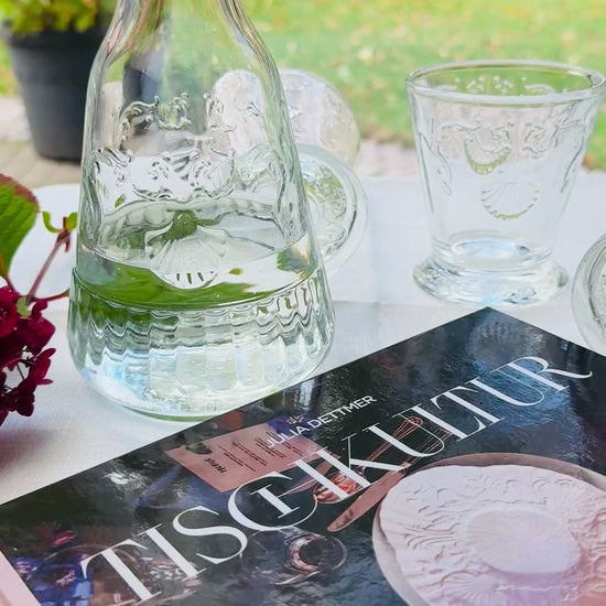 Ein Geschenk, das Stil, Geschichte und Handwerkskunst vereint – dieses Set bringt französische Eleganz an jeden Tisch. Sechs kunstvoll gearbeitete Versailles-Wassergläser und der passende Krug von La Rochère ergänzen sich zu einem harmonischen Ensemble, das Tradition und Lebensfreude in sich trägt. Das begleitende Buch „Tischkultur“ lädt dazu ein, den Zauber gemeinsamer Mahlzeiten und die Kunst des Genießens neu zu entdecken.