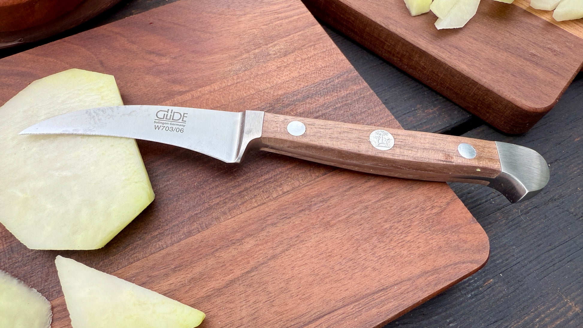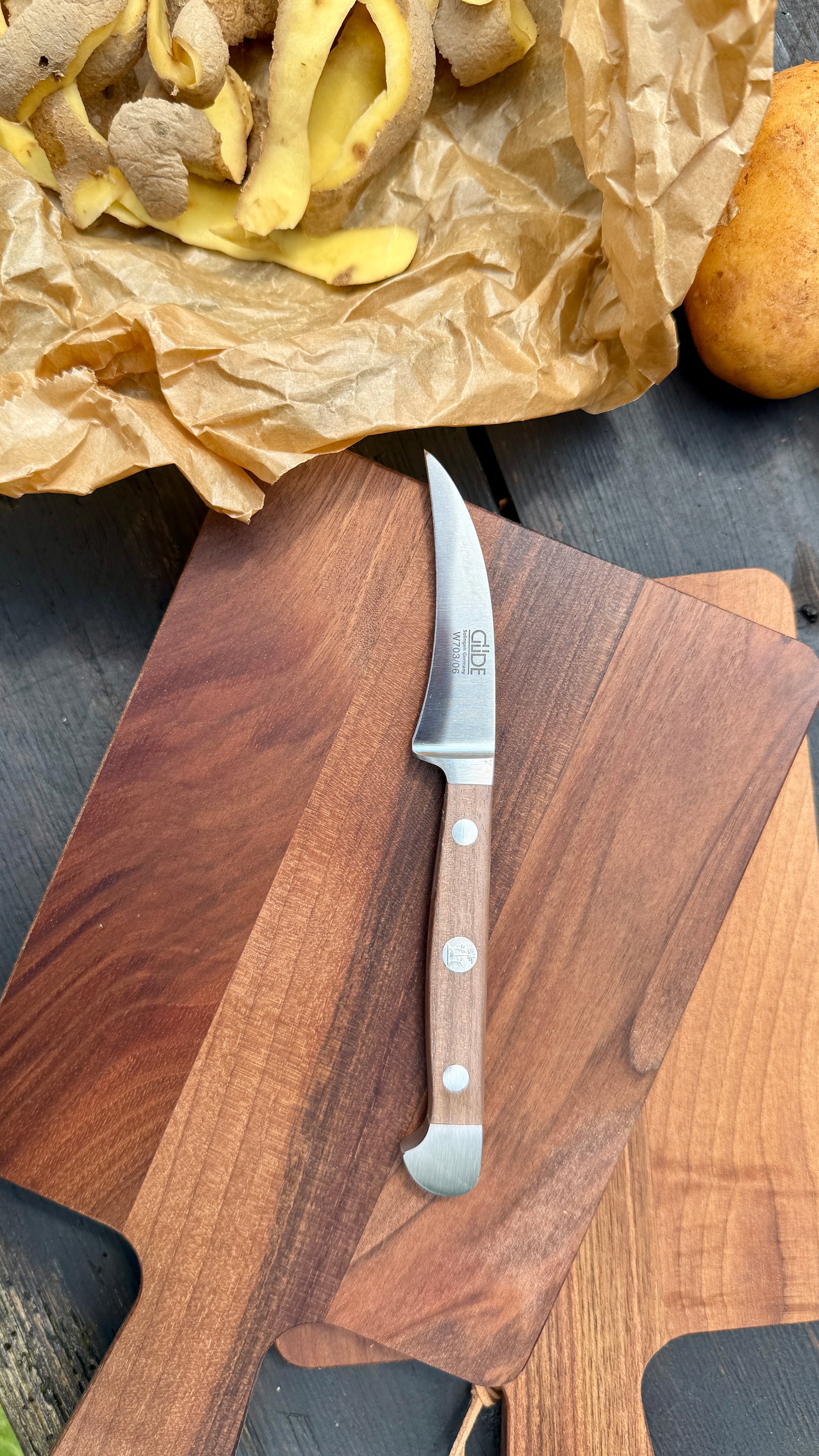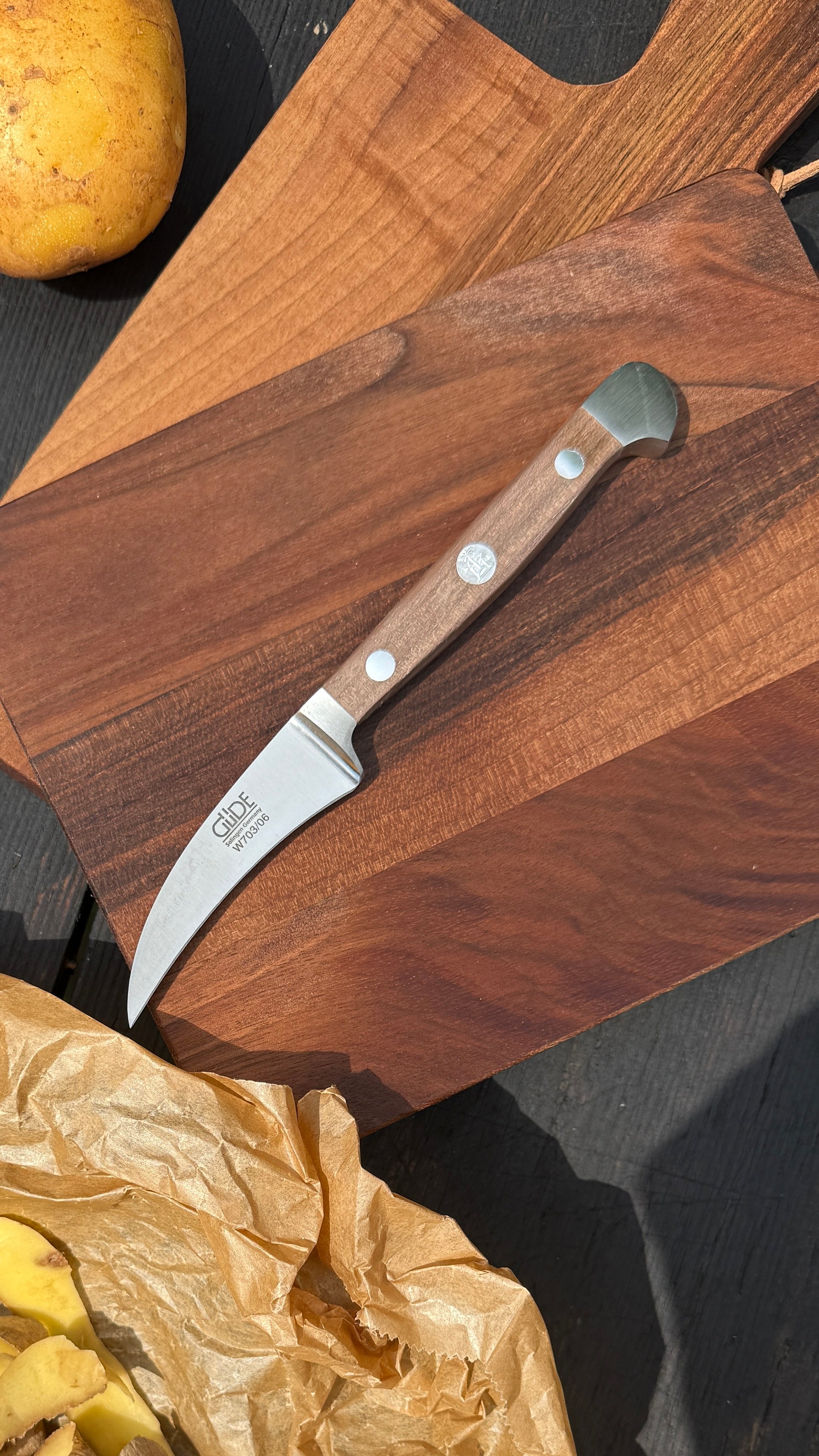 The Güde Alpha Walnut paring knife set with a cutting board is the perfect choice for fine cutting work and a stylish gift for any discerning kitchen.