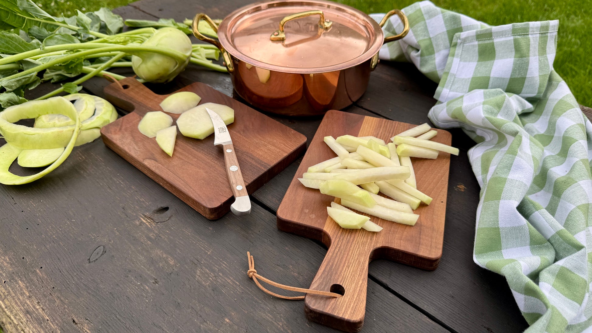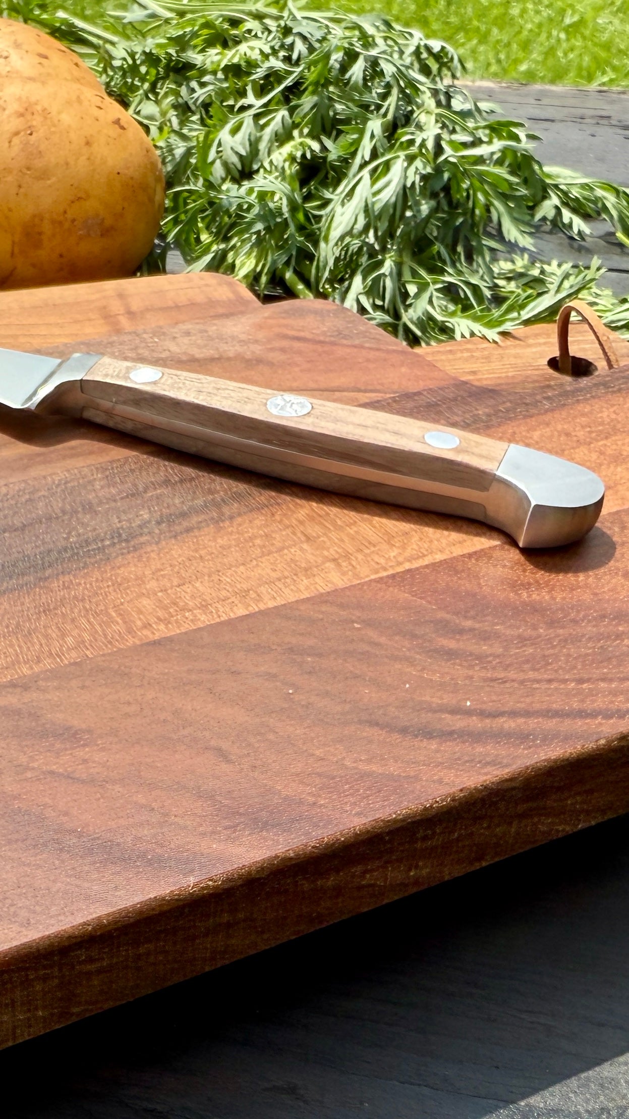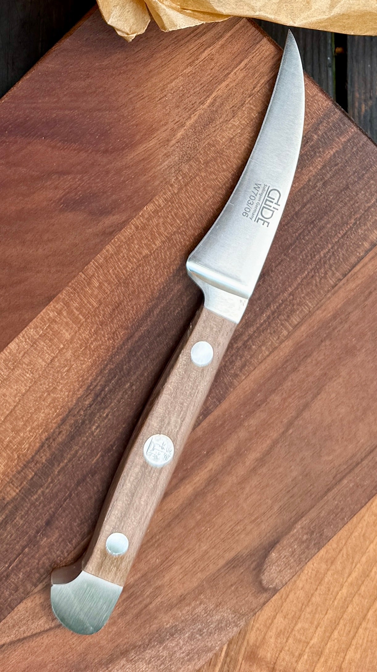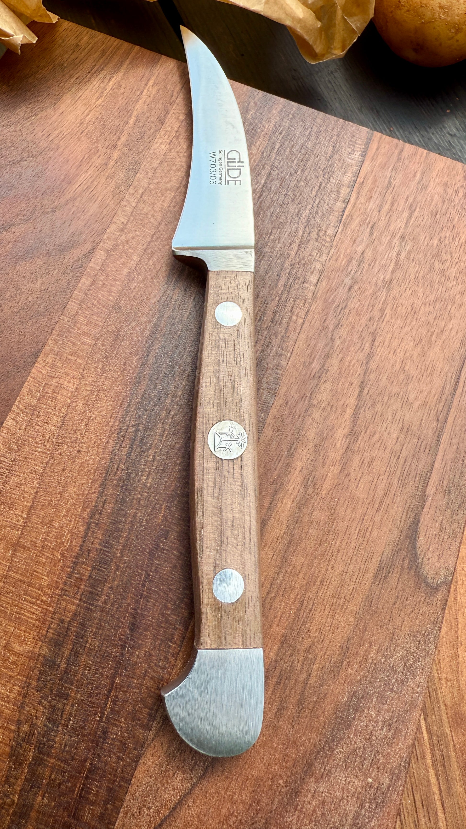 The Güde Alpha Walnut paring knife set with a cutting board is the perfect choice for fine cutting work and a stylish gift for any discerning kitchen.