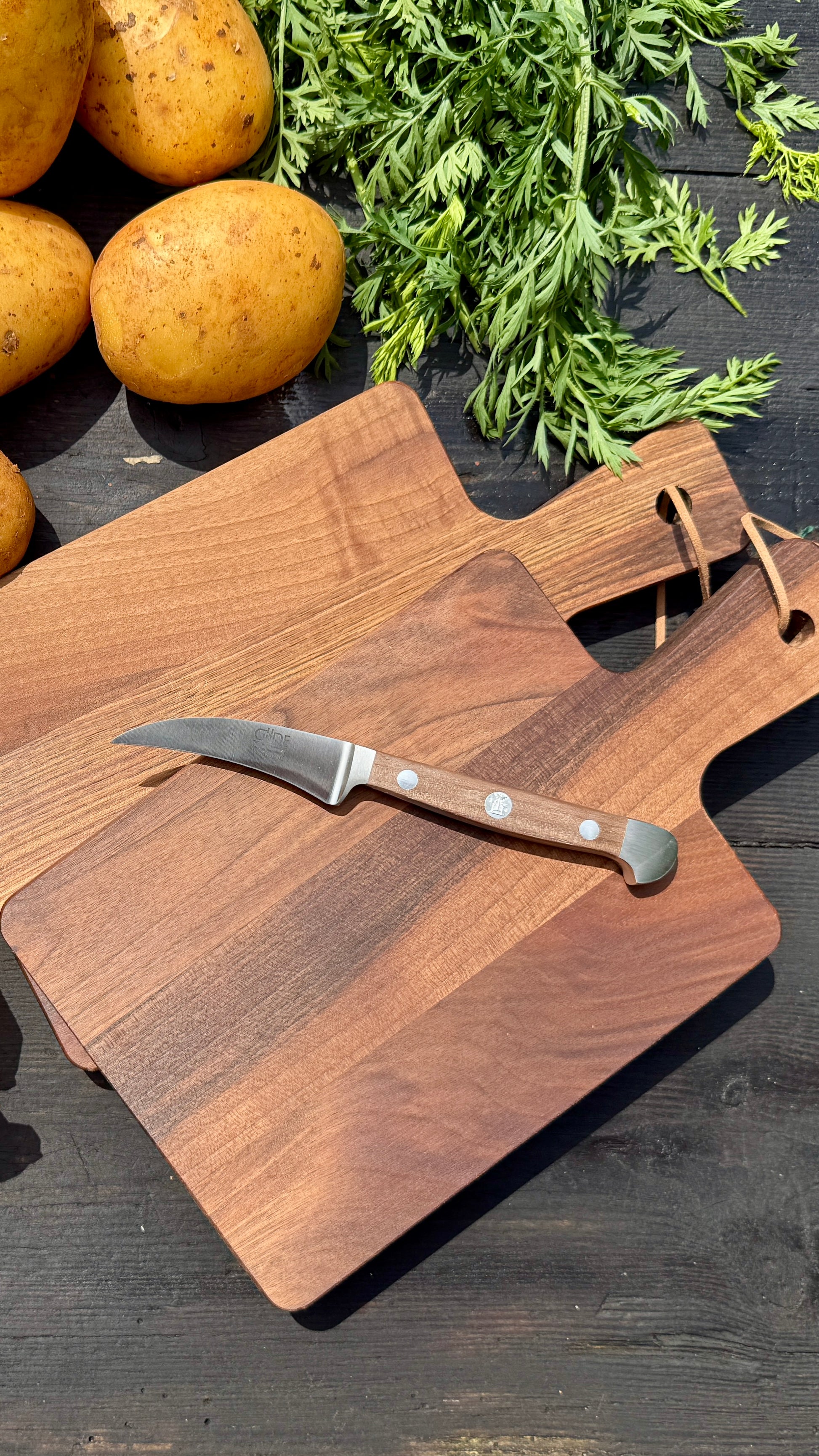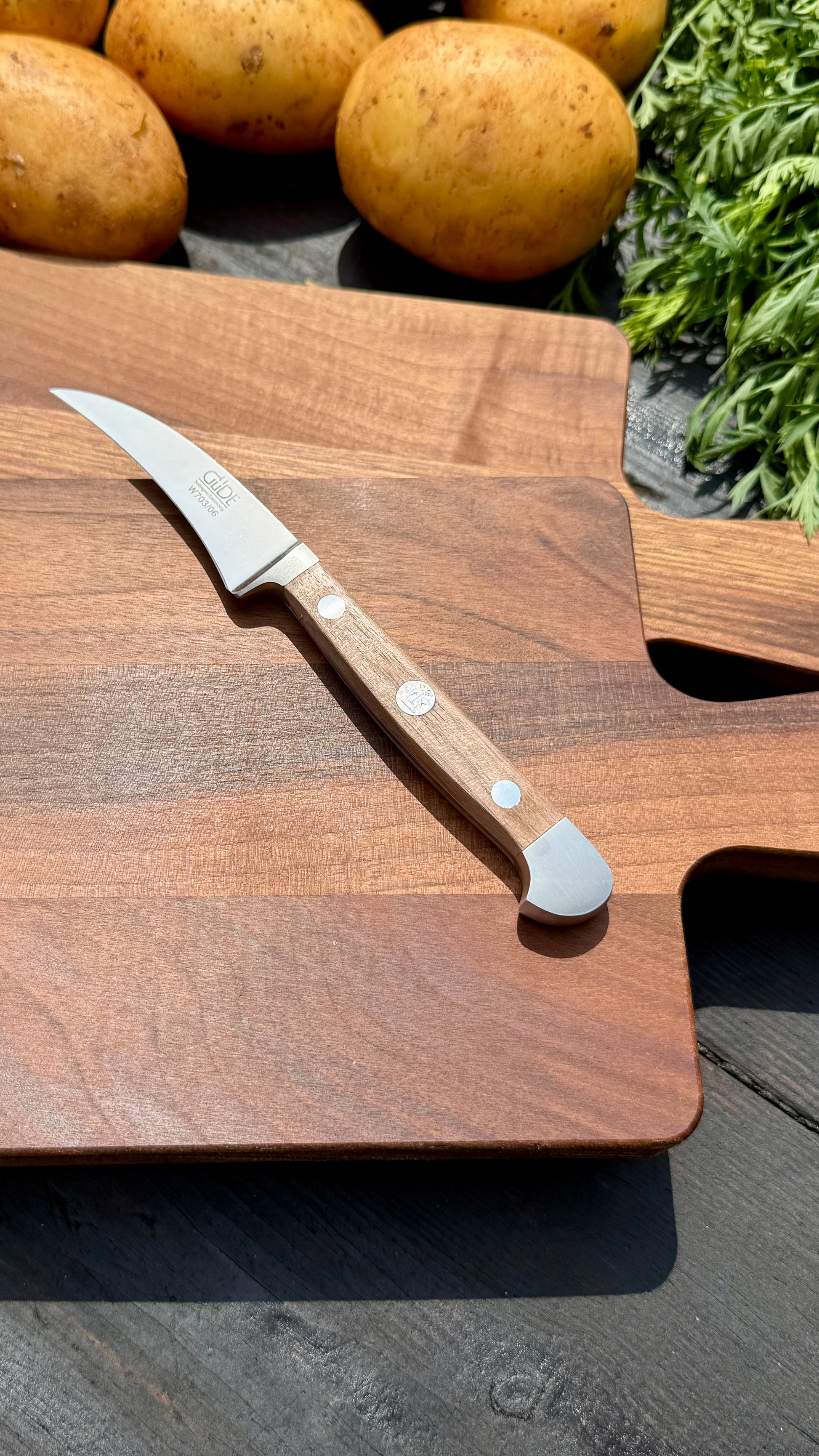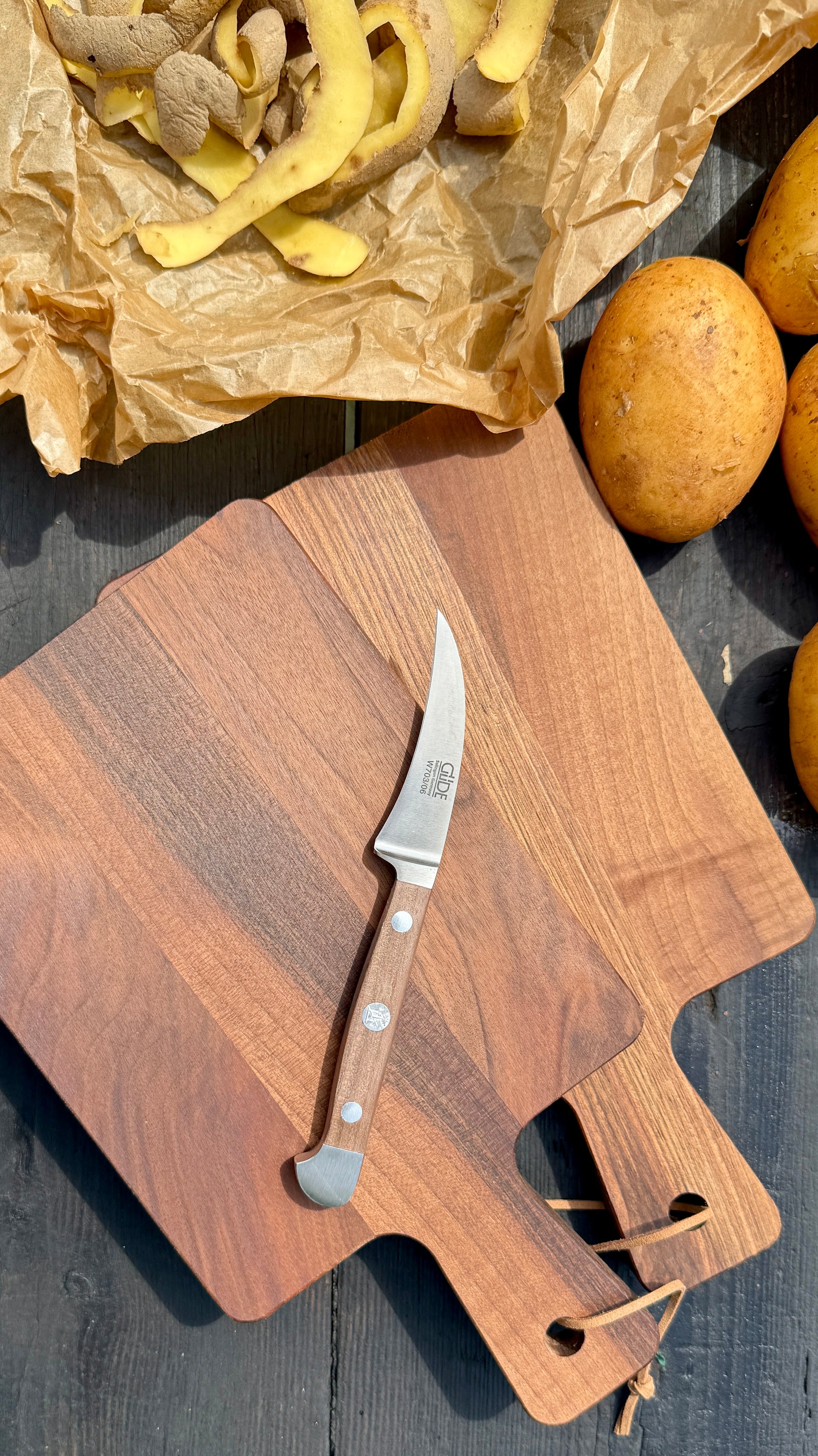 Güde Alpha Walnut Paring Knife (6 cm) with Walnut/Beech Board