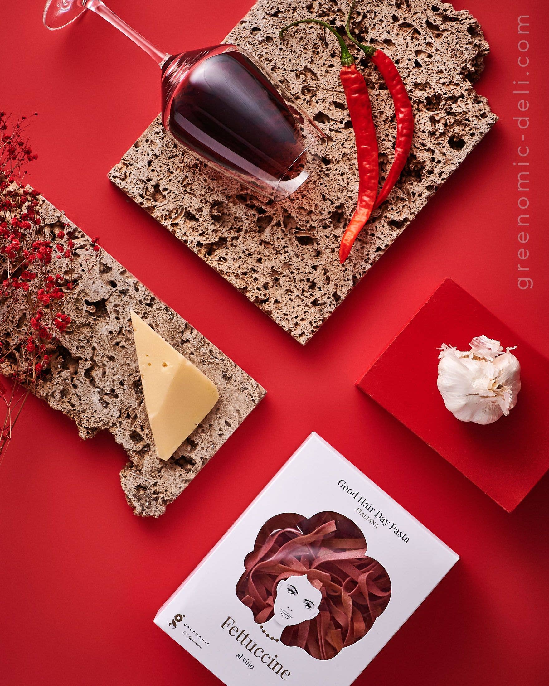 Original Italian fettuccine from Umbria refined with exquisite red wine.