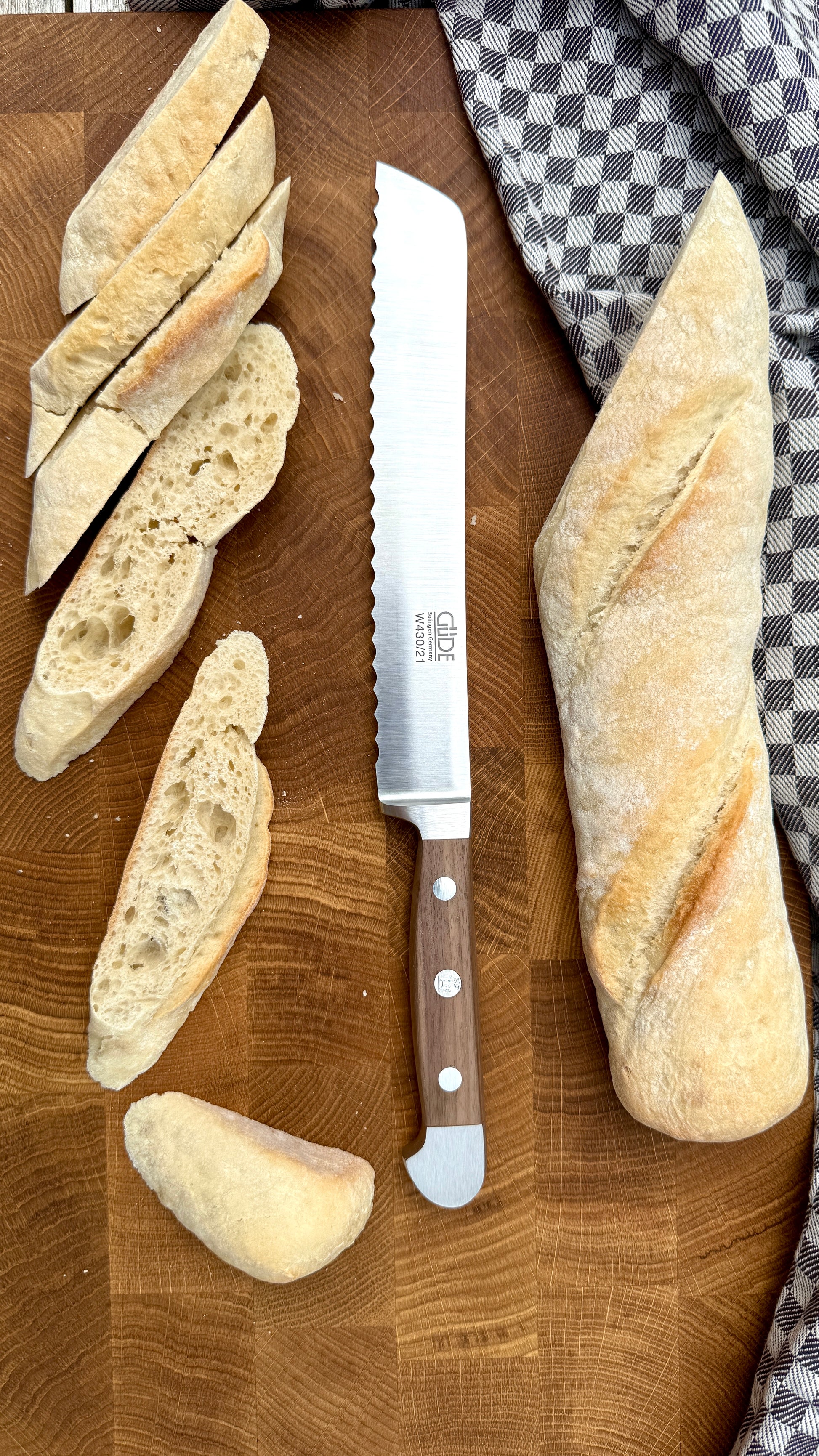 Whether cutting crispy loaves of bread, portioning baguettes or preparing rolls – With this knife, fine cutting work can be carried out effortlessly and precisely.