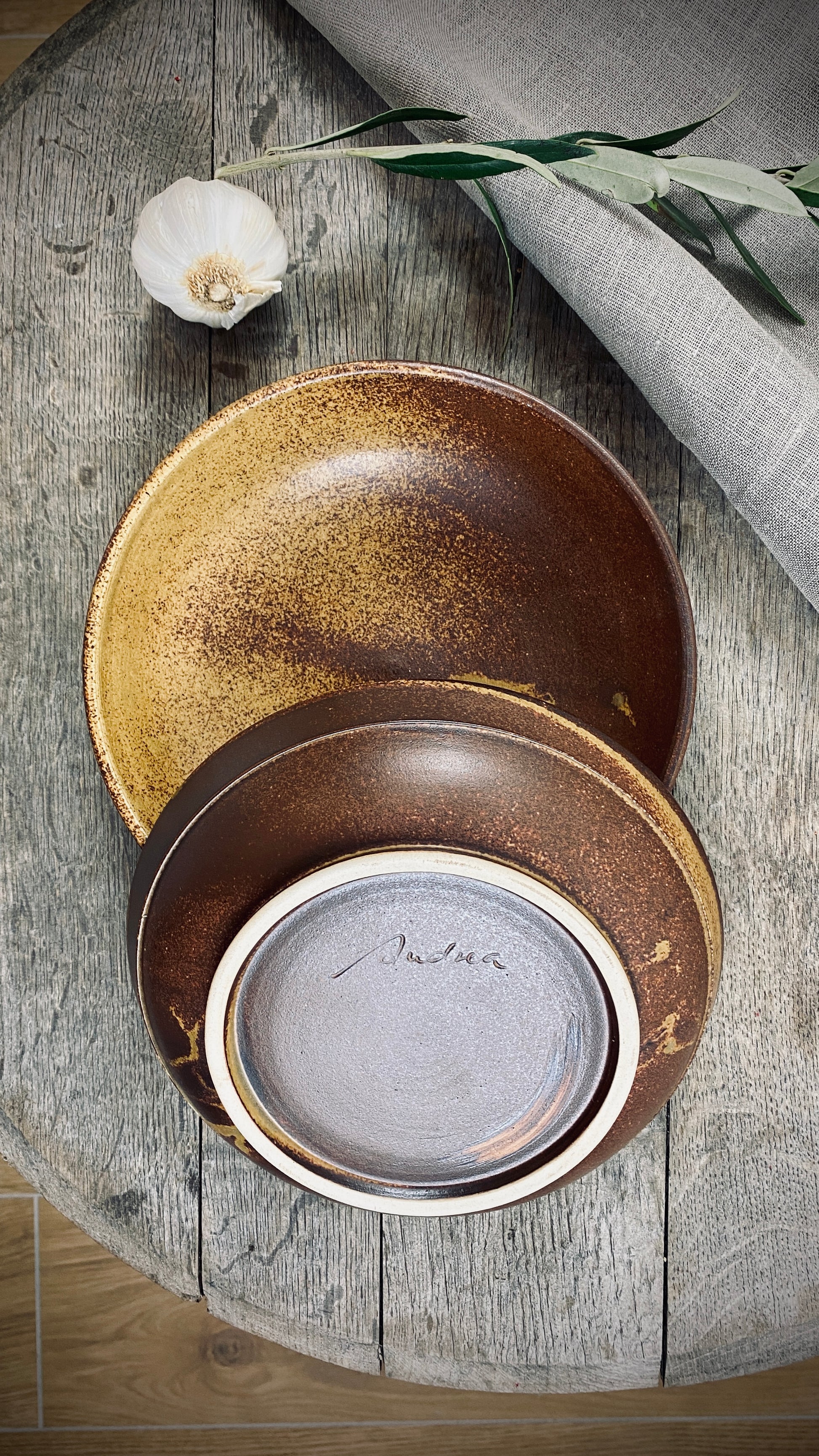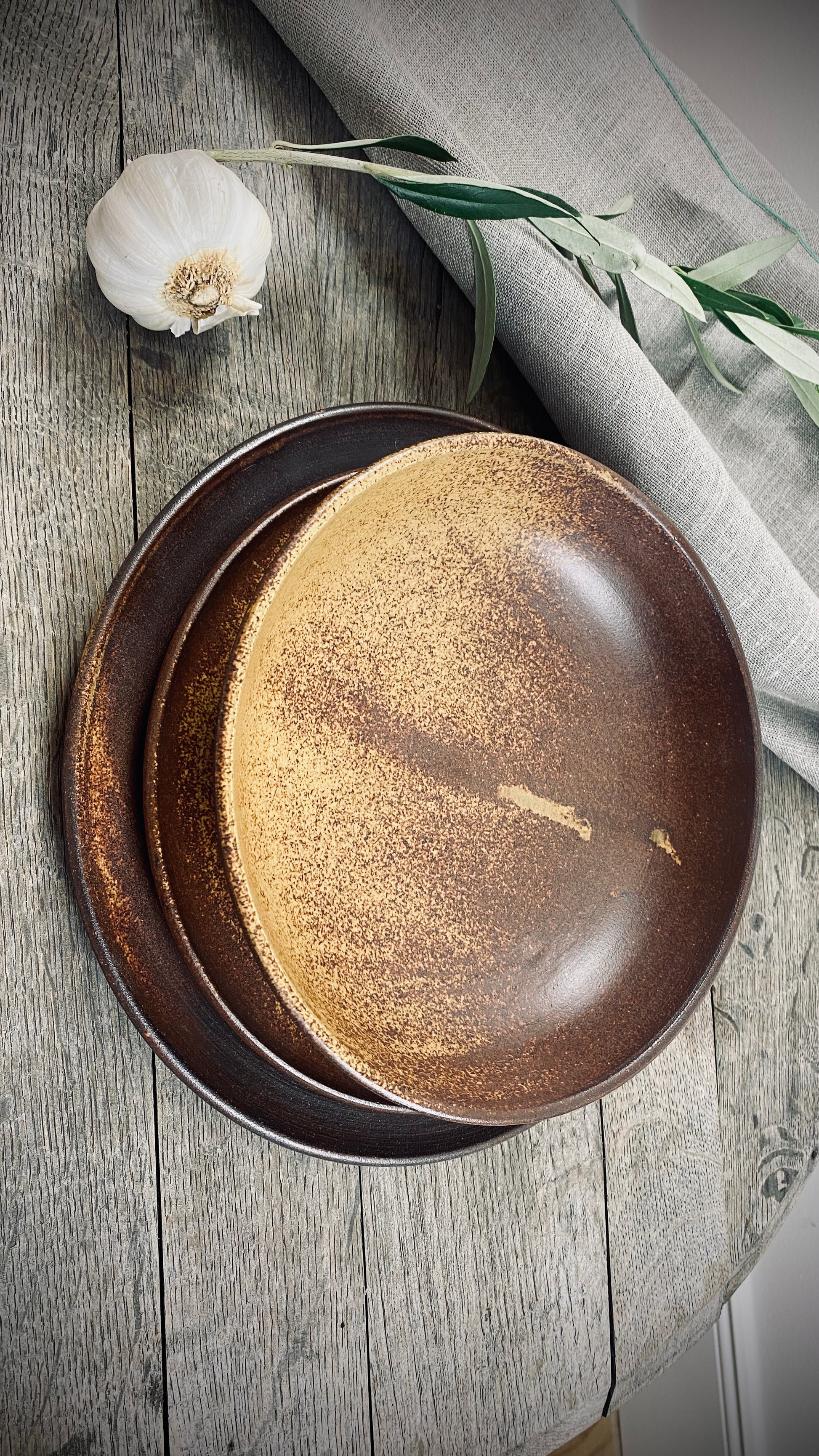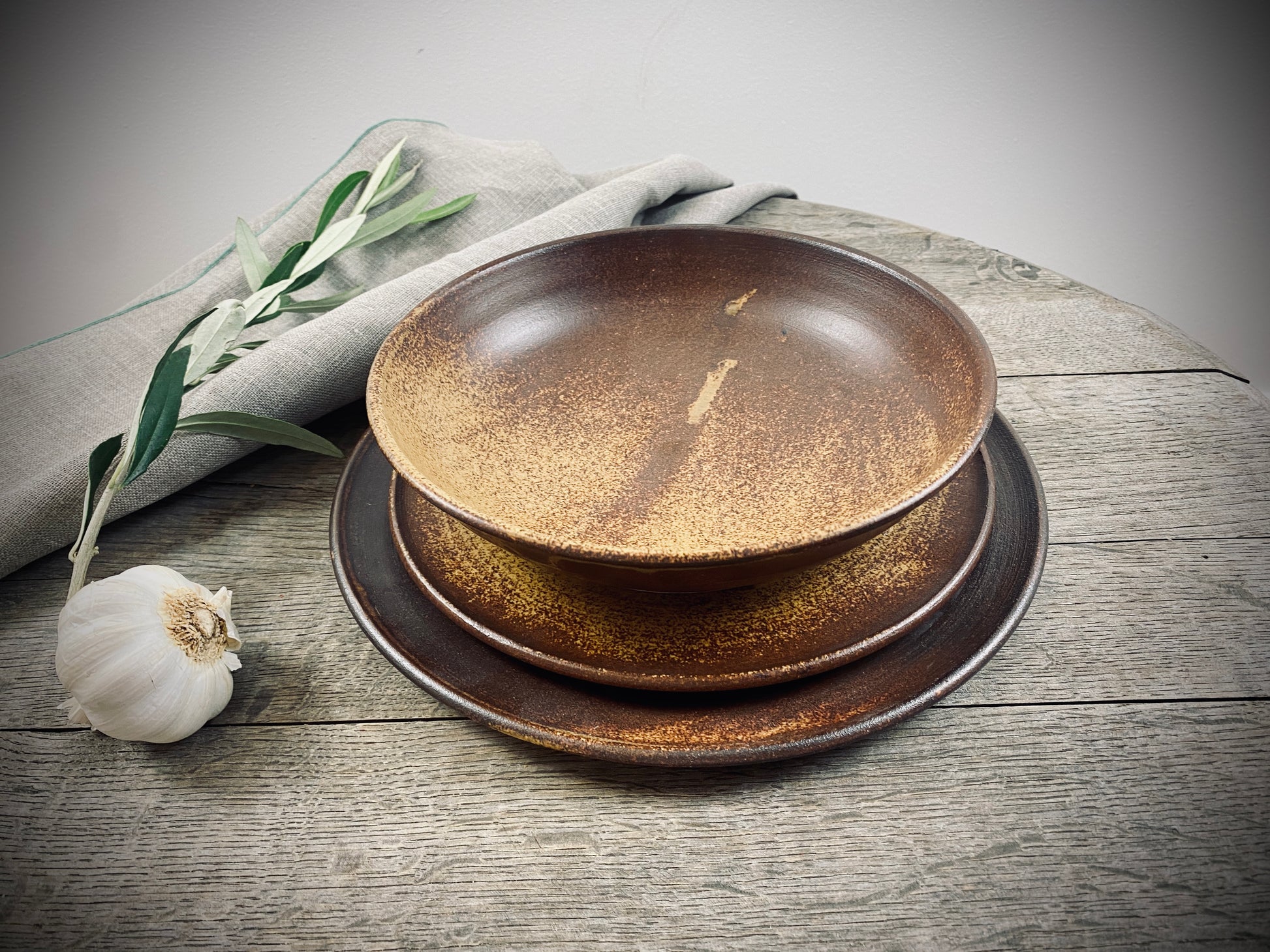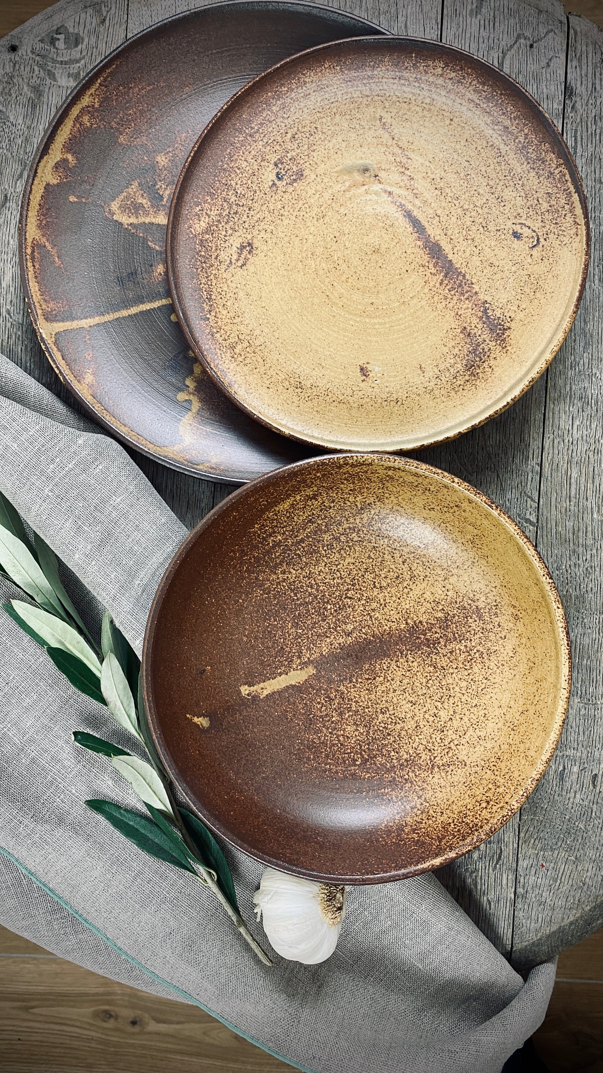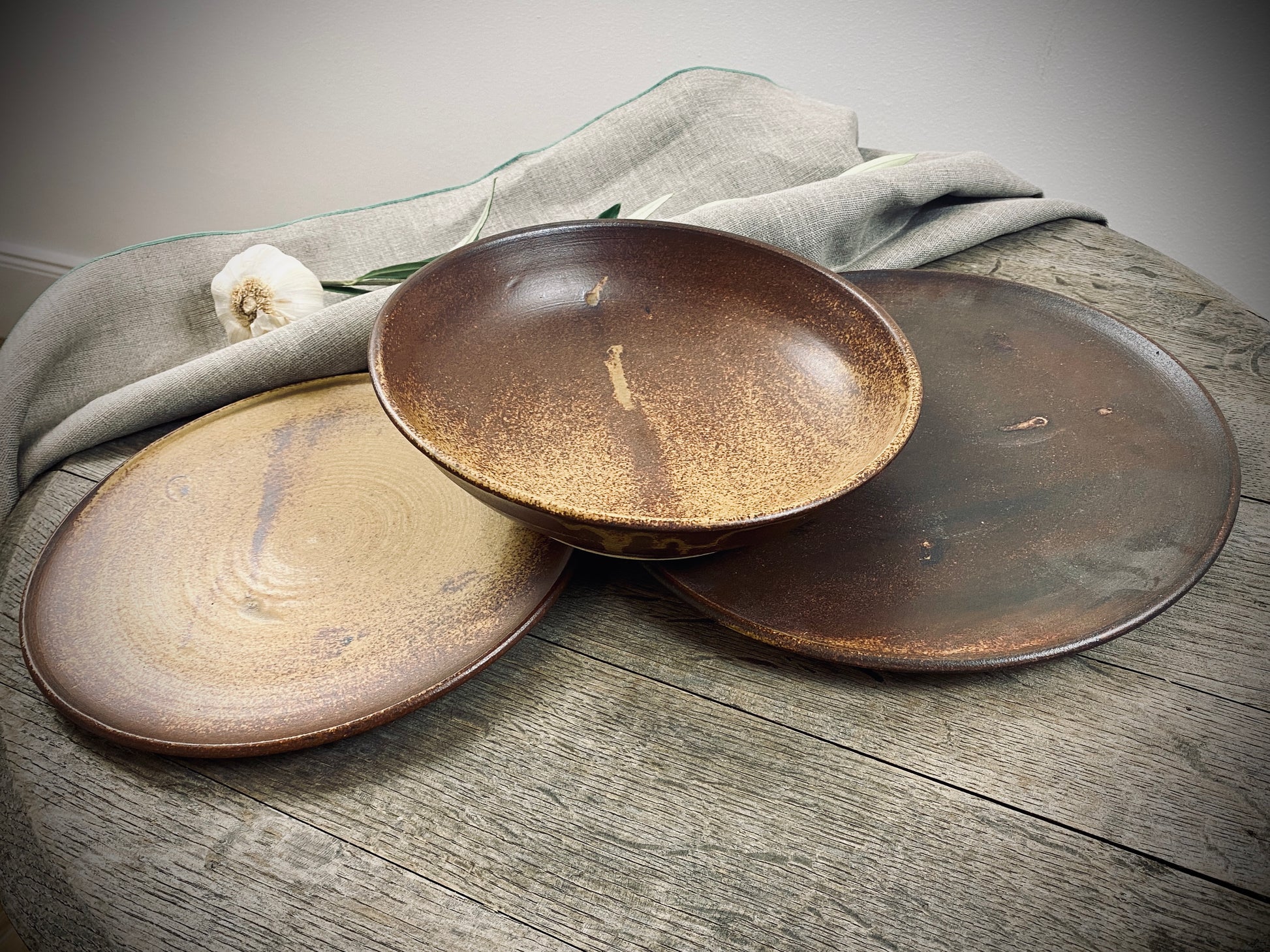 Hand-made set of 3 table series Classic with special glaze