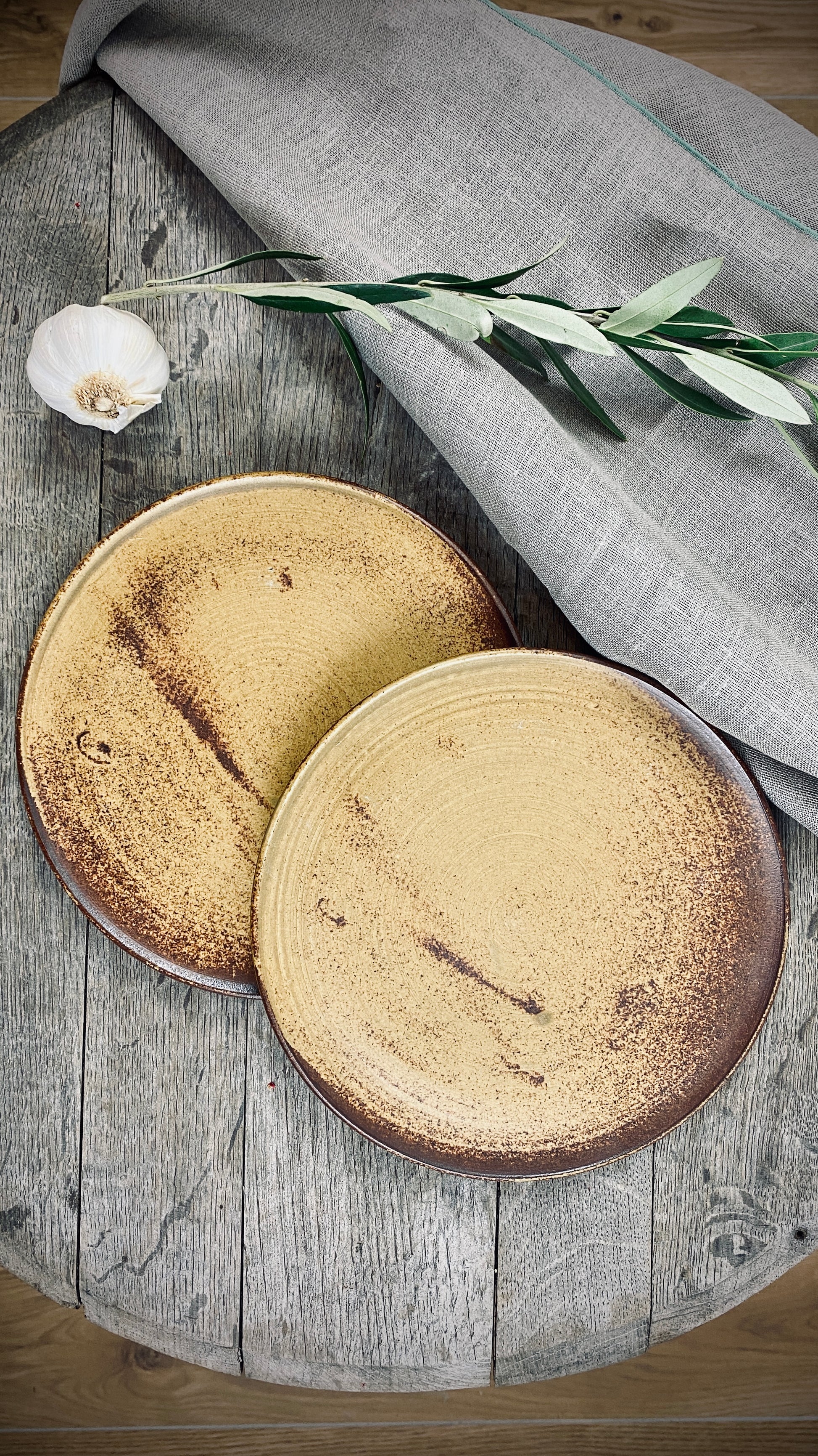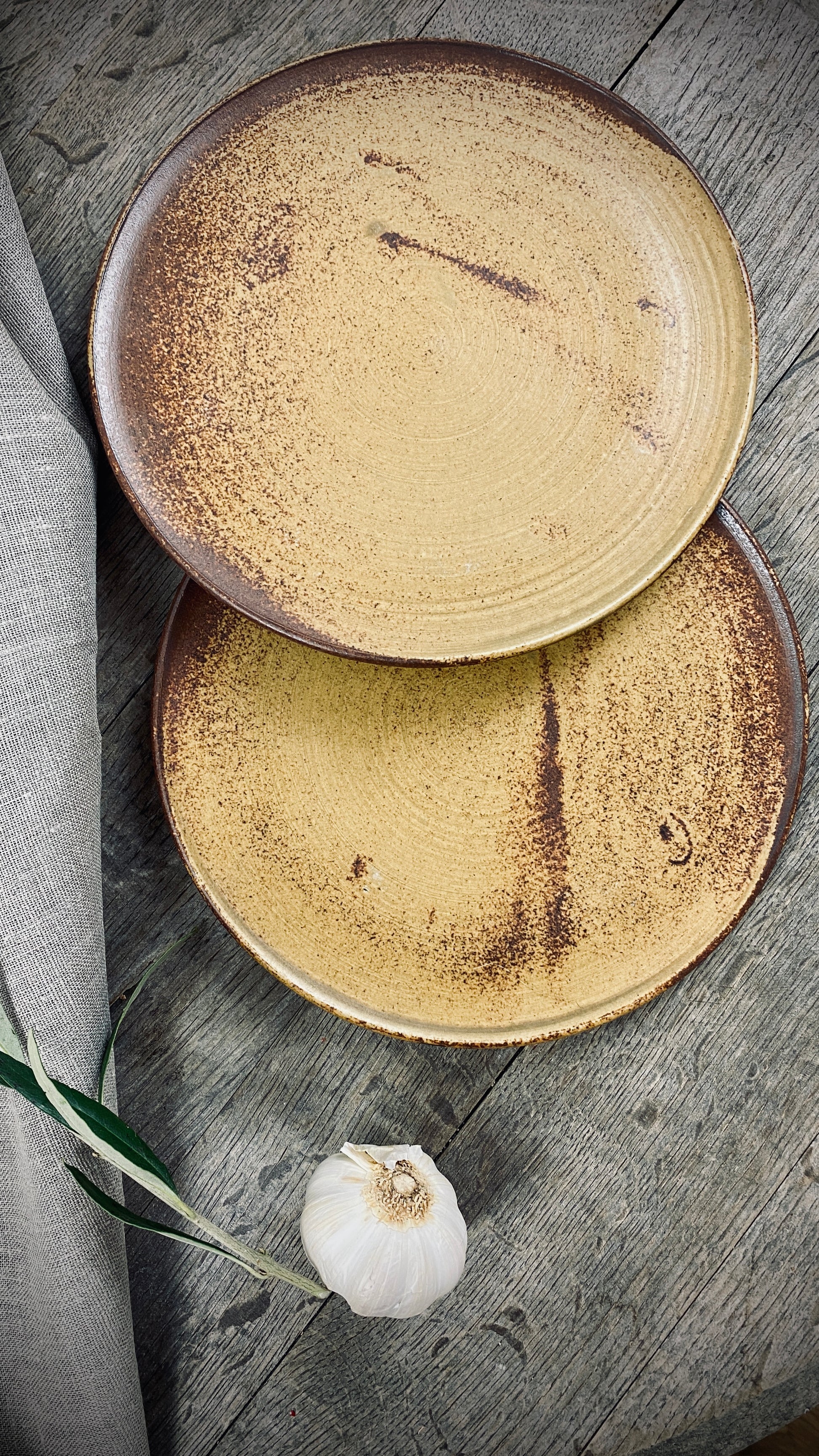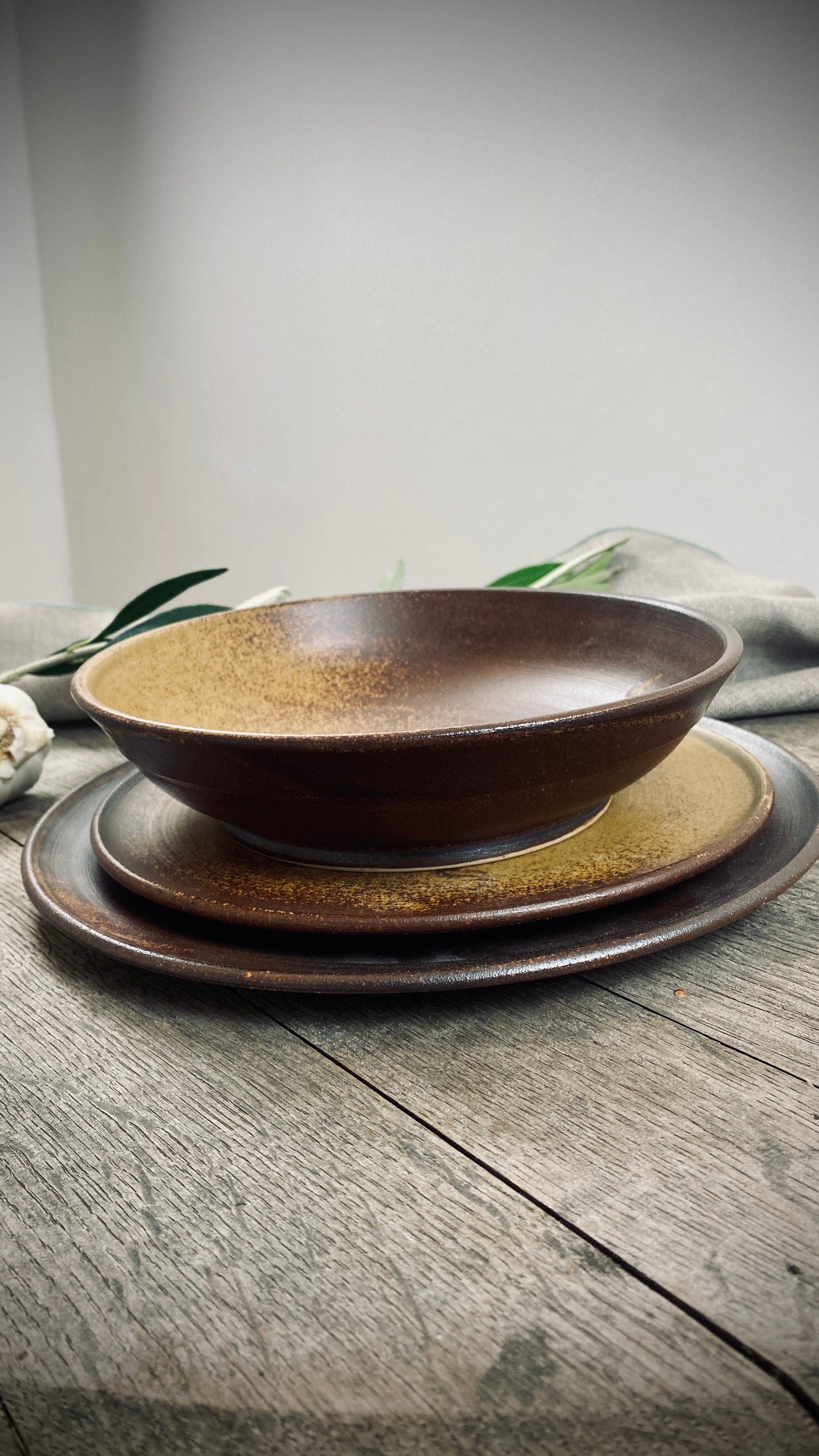 Our hand-thrown Classic set of three tableware pieces will delight you and your guests. It features a large dinner plate with a diameter of approximately 28 cm and a height of approximately 2 cm, followed by a small plate with a diameter of approximately 22 cm and a height of approximately 2 cm, and the crowning glory of the deep plate with a diameter of approximately 21 cm and a slightly curved shape, a height of approximately 5 cm, and a capacity of approximately 500 ml. The smooth, cream-colored glaze gives the plates a pleasant texture and allows the food to stand out particularly well.