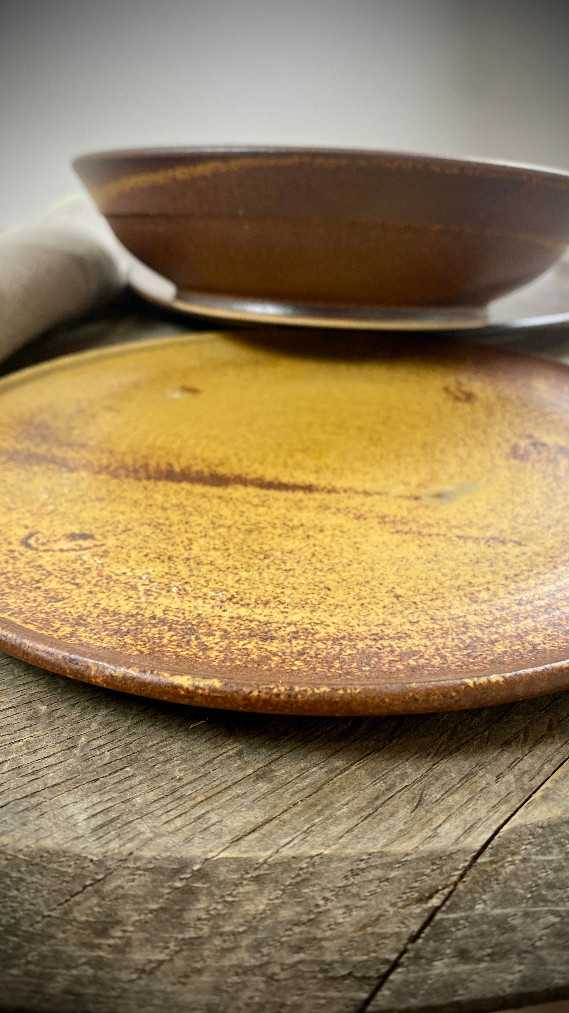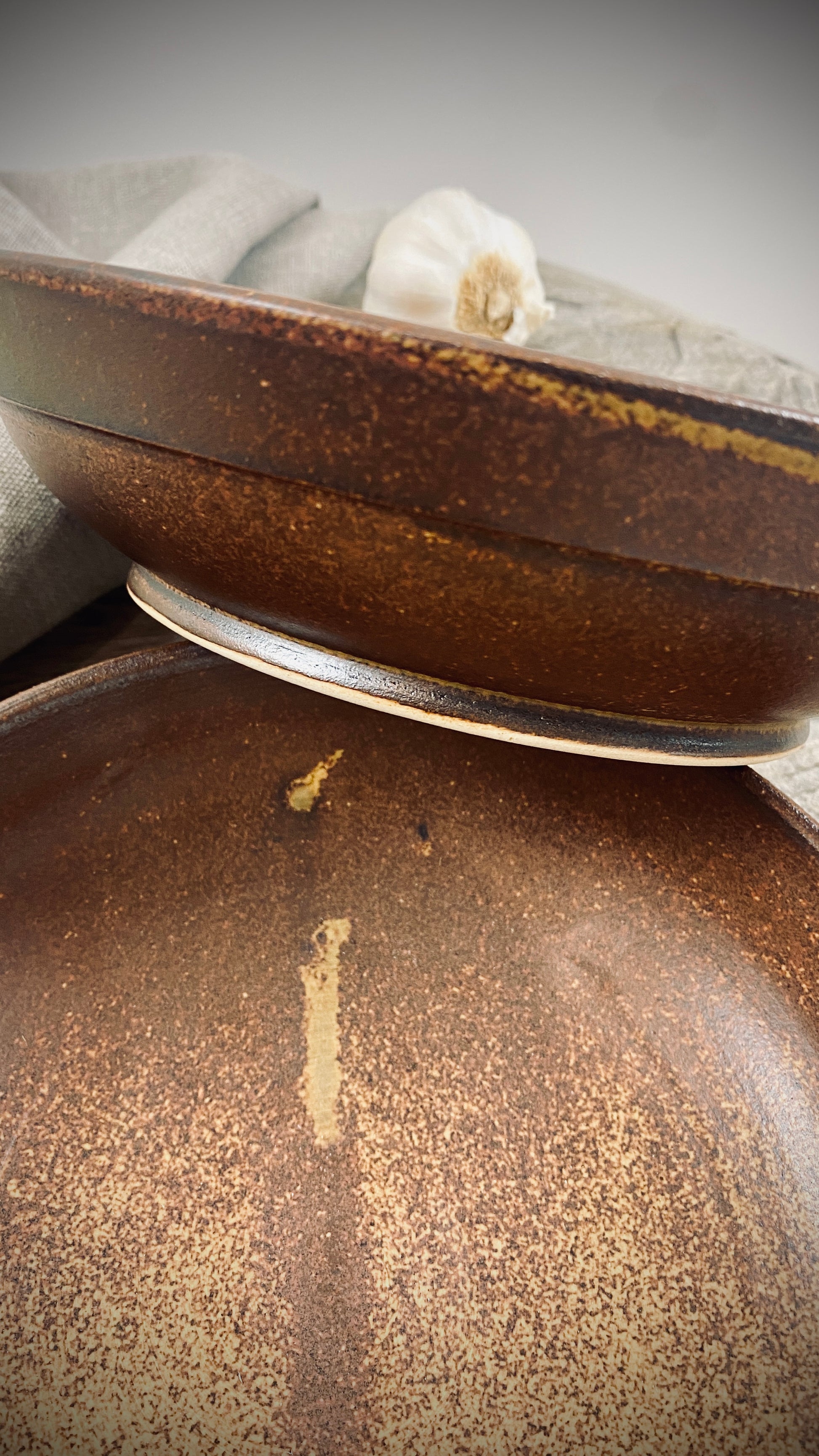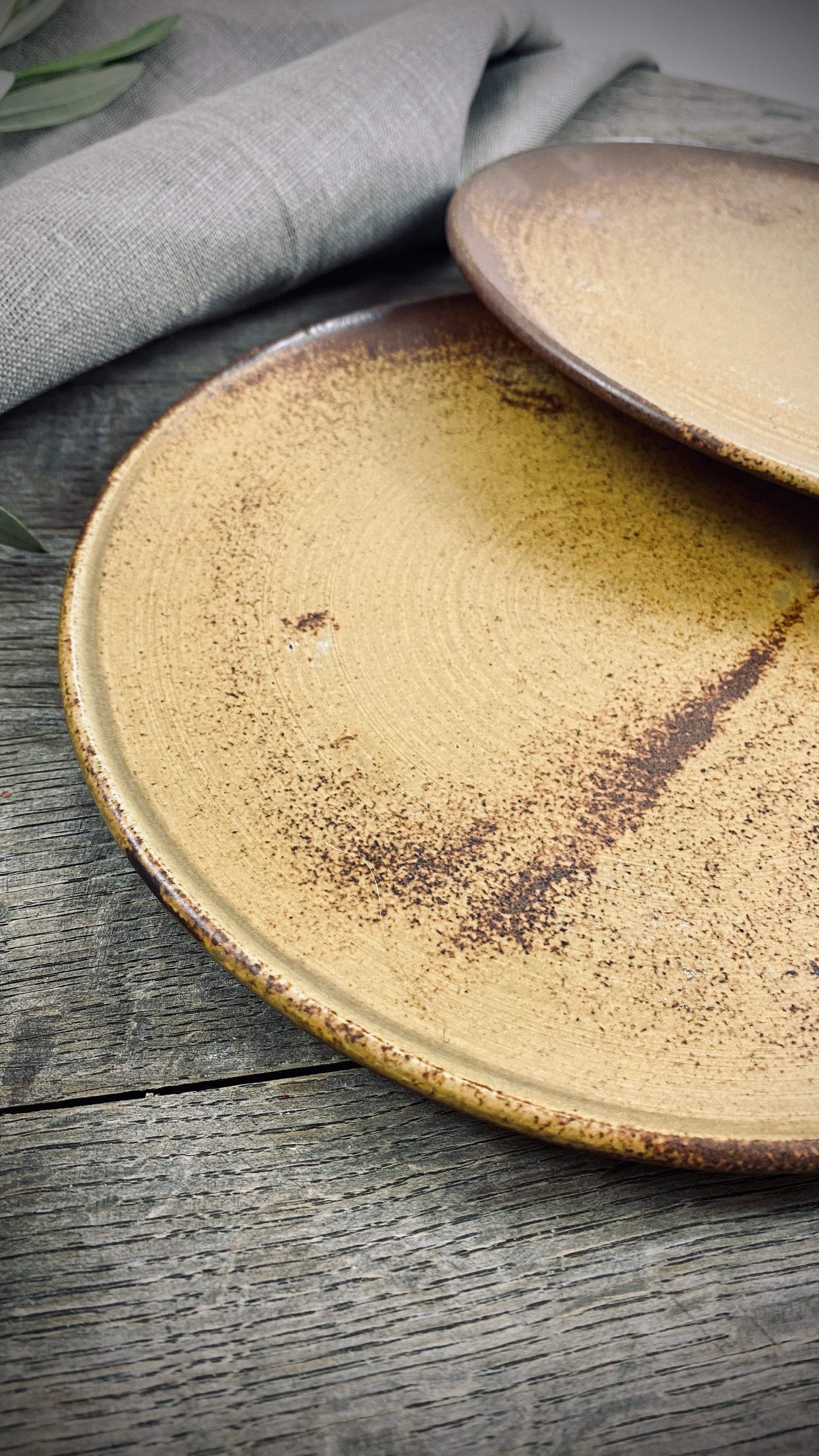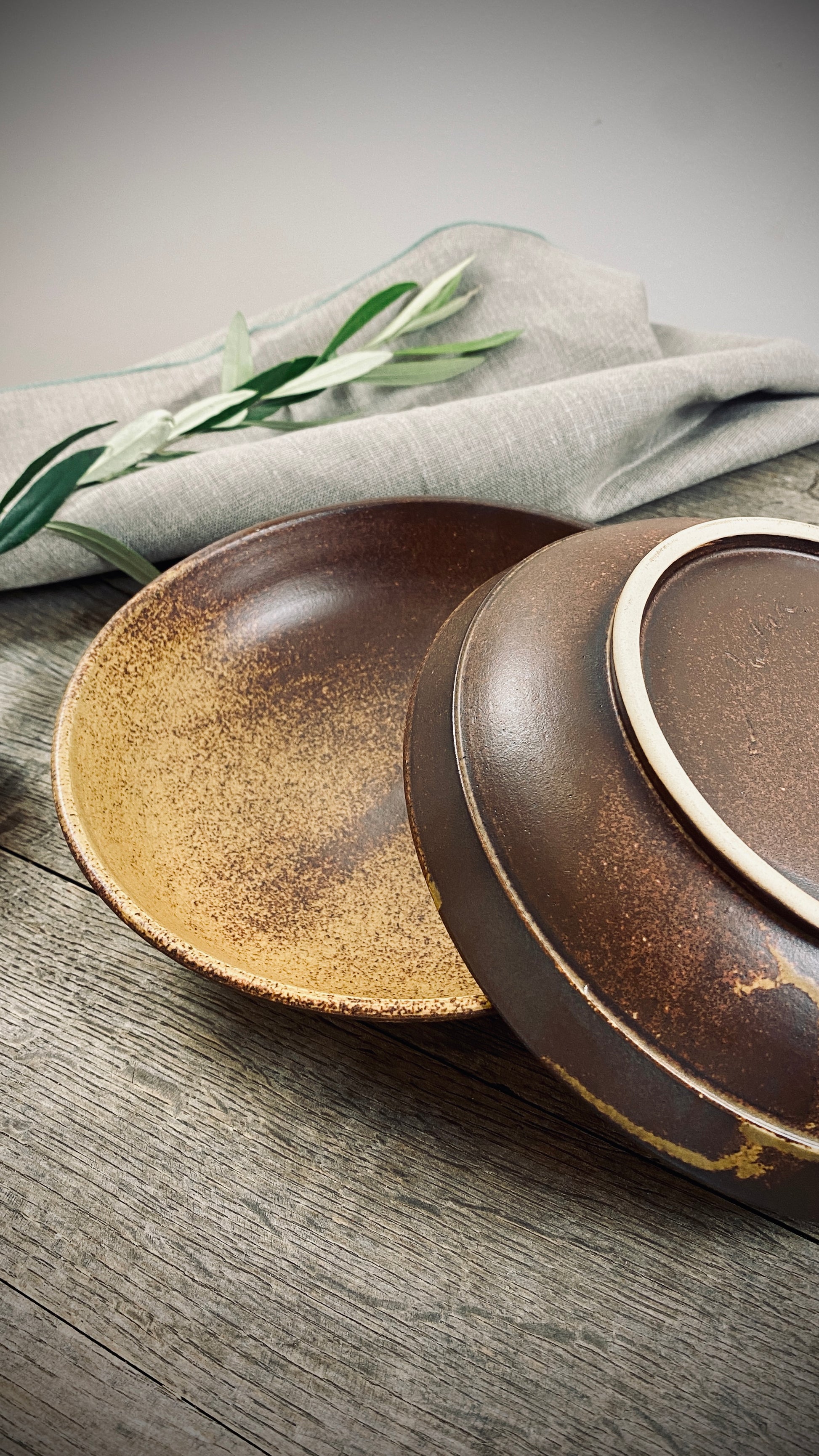 Our hand-thrown Classic set of three tableware pieces will delight you and your guests. It features a large dinner plate with a diameter of approximately 28 cm and a height of approximately 2 cm, followed by a small plate with a diameter of approximately 22 cm and a height of approximately 2 cm, and the crowning glory of the deep plate with a diameter of approximately 21 cm and a slightly curved shape, a height of approximately 5 cm, and a capacity of approximately 500 ml. The smooth, cream-colored glaze gives the plates a pleasant texture and allows the food to stand out particularly well.