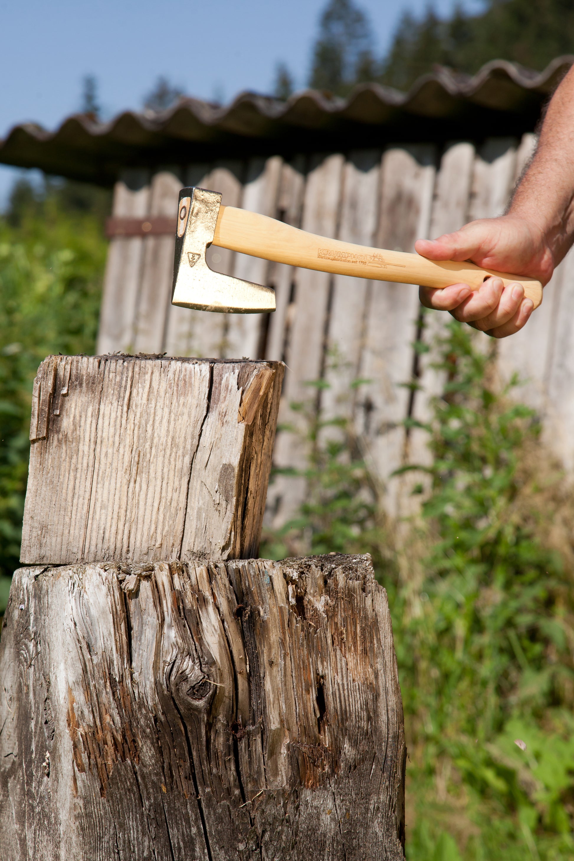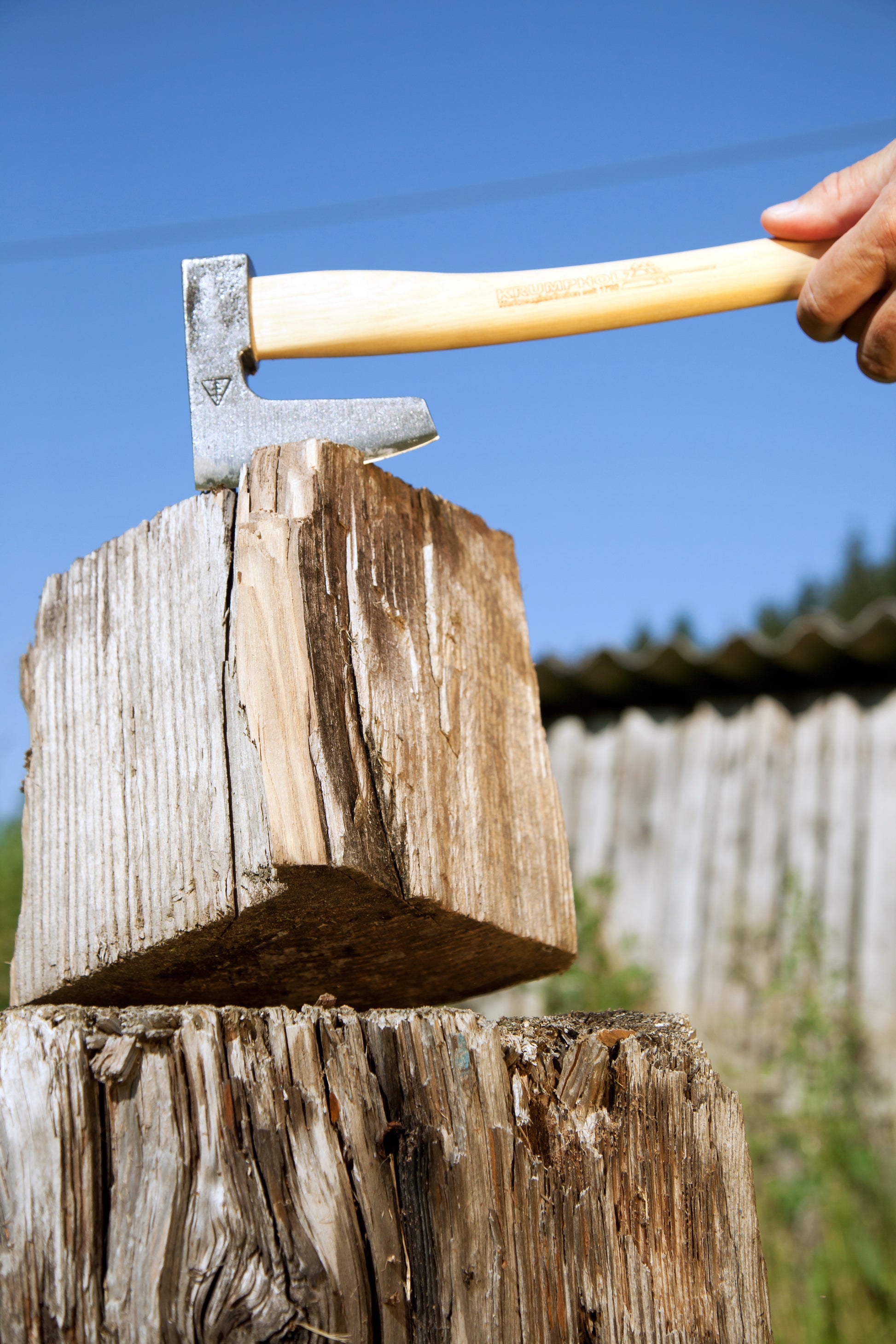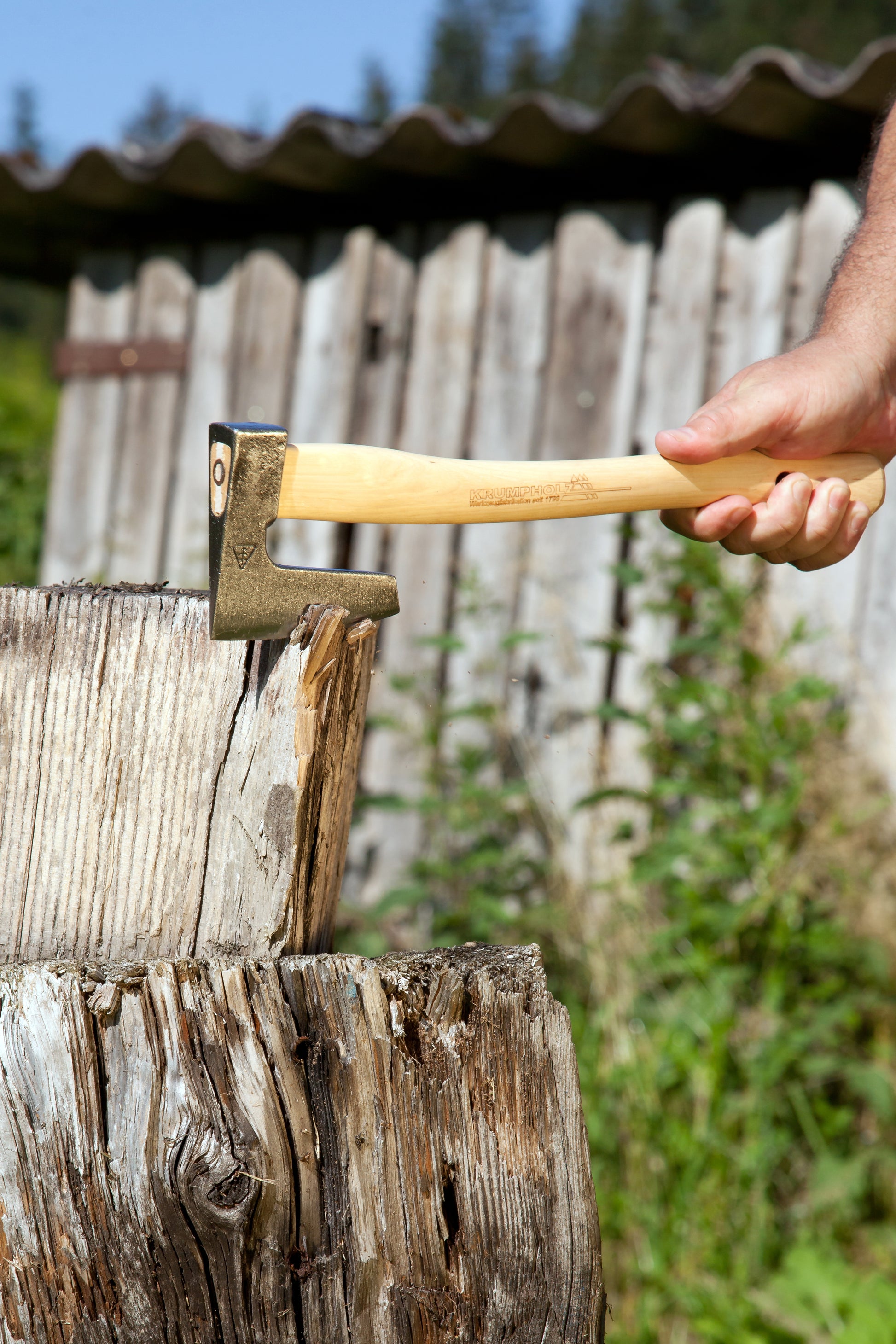 To ensure the longevity of the axe, the blade and wooden handle should be thoroughly dried after each use. Storage is ideally in dry, unheated rooms such as barns or garden sheds. In heated rooms, the wood can dry out, lose its elasticity and thus break more easily. For additional care, we recommend occasionally treating the handle with wood oil or linseed oil.