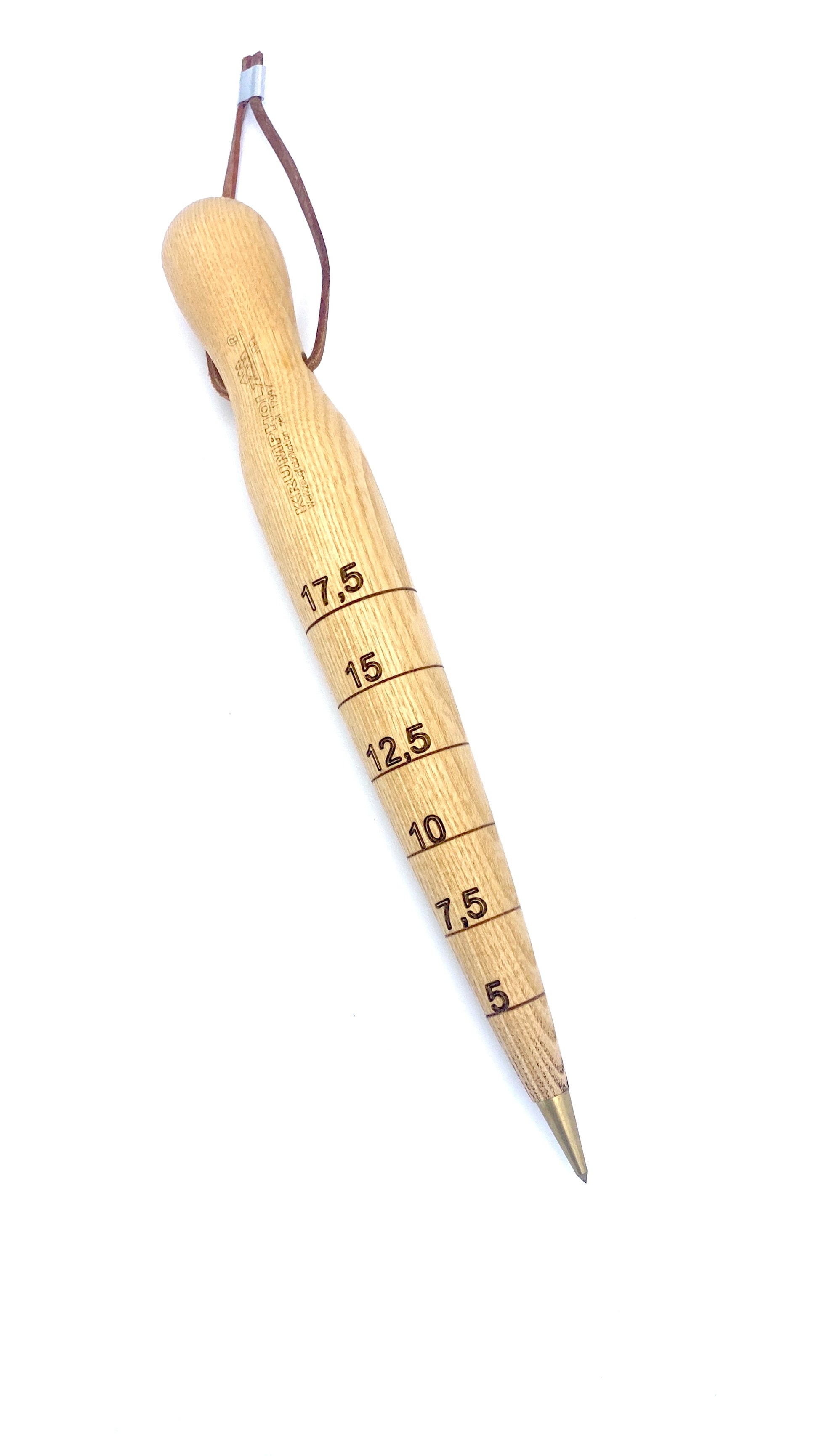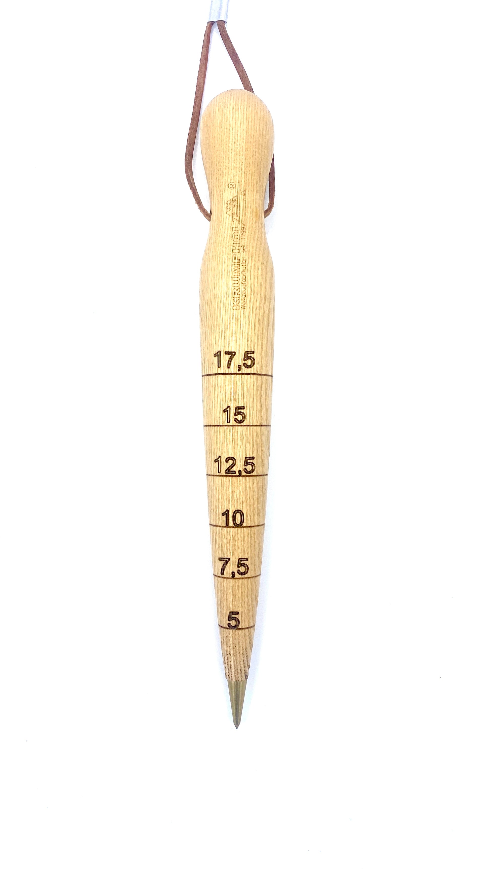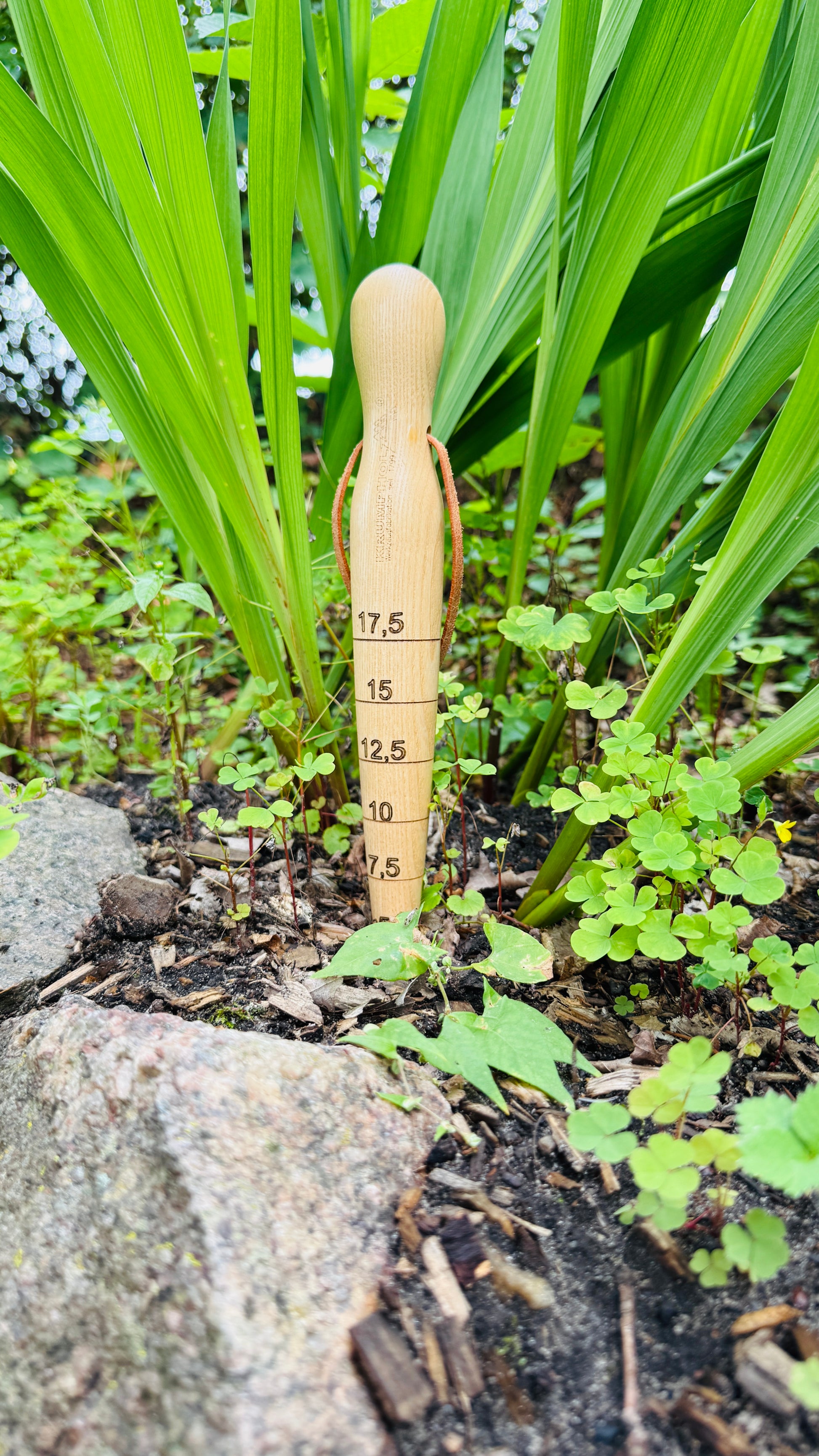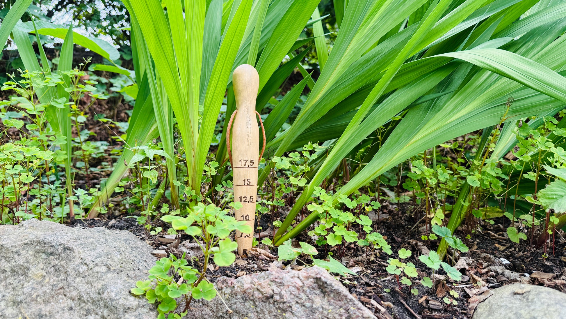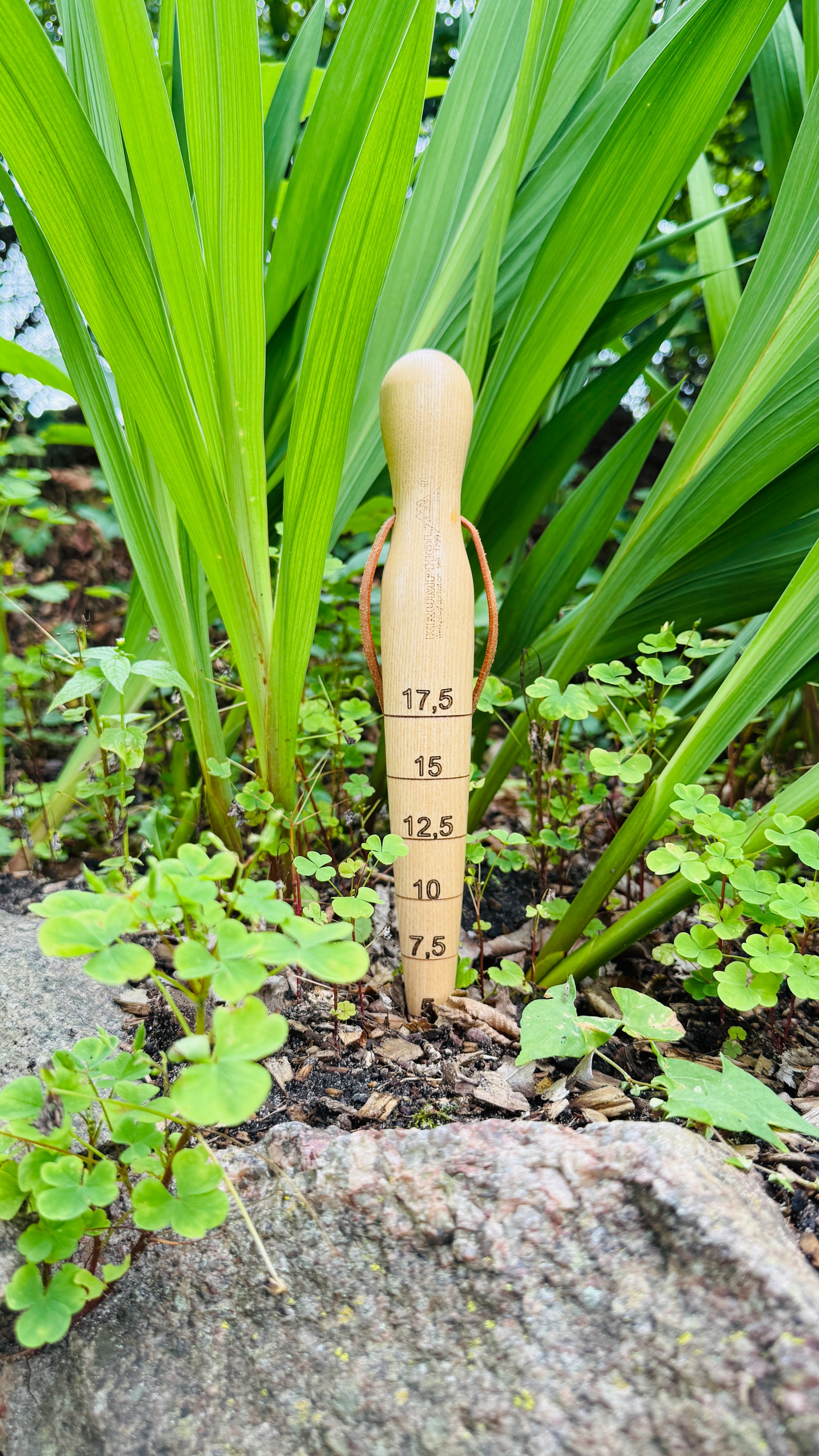 The robust brass tip allows for effortless penetration into the soil and protects the wood from moisture. An engraved centimeter scale precisely indicates the planting depth, while the ergonomic knob handle provides comfort even when gripping firmly. This classic gardening tool is crafted by a traditional blacksmith shop in Franconia.