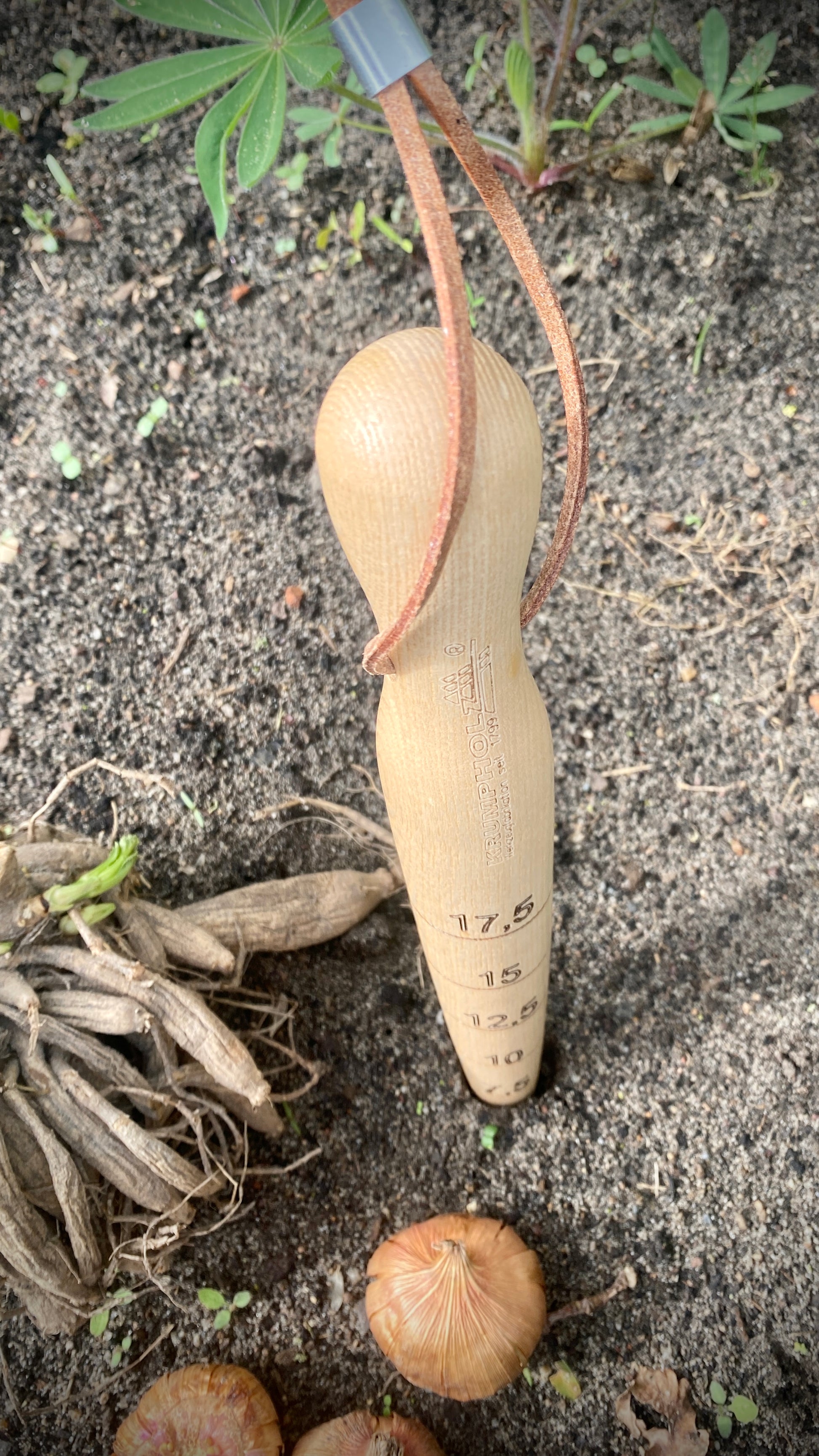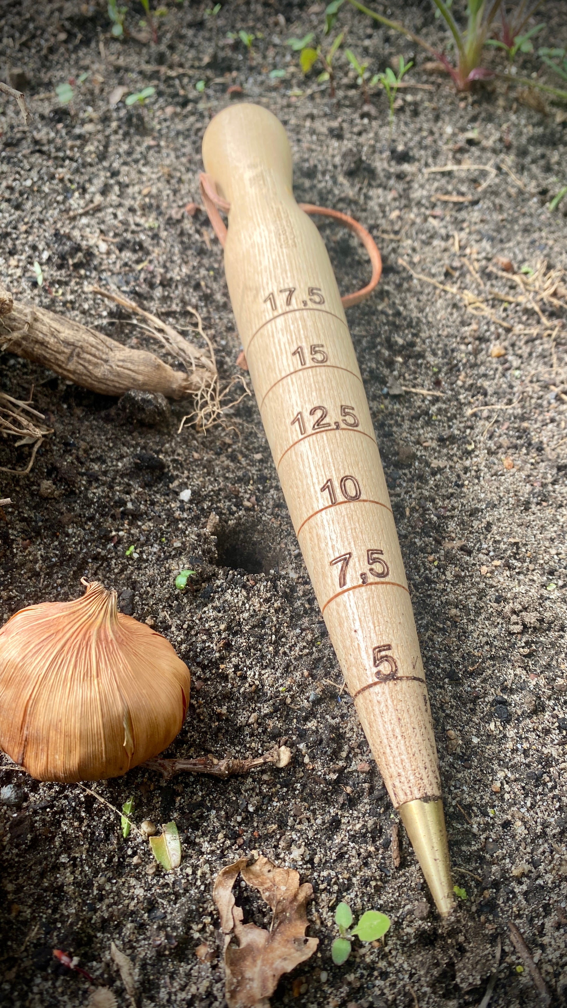 The brass-tipped planting stick is a versatile gardening tool ideal for year-round use. Whether for planting young vegetables in spring, transplanting early flowers in early summer, or planting bulbs in fall, this tool makes creating planting holes much easier.