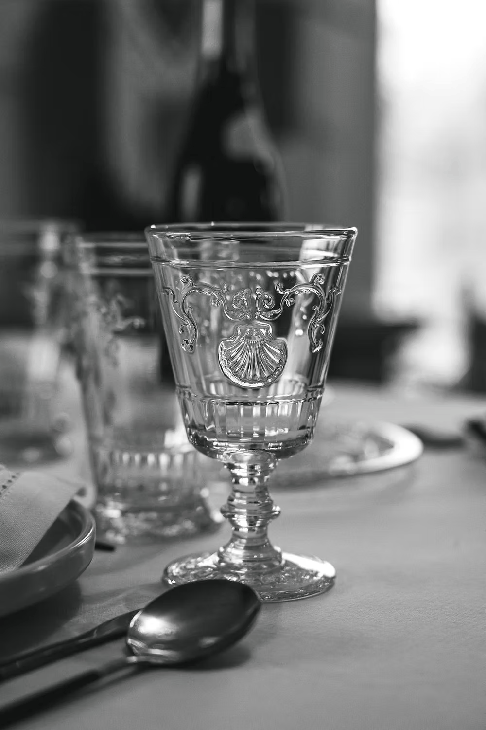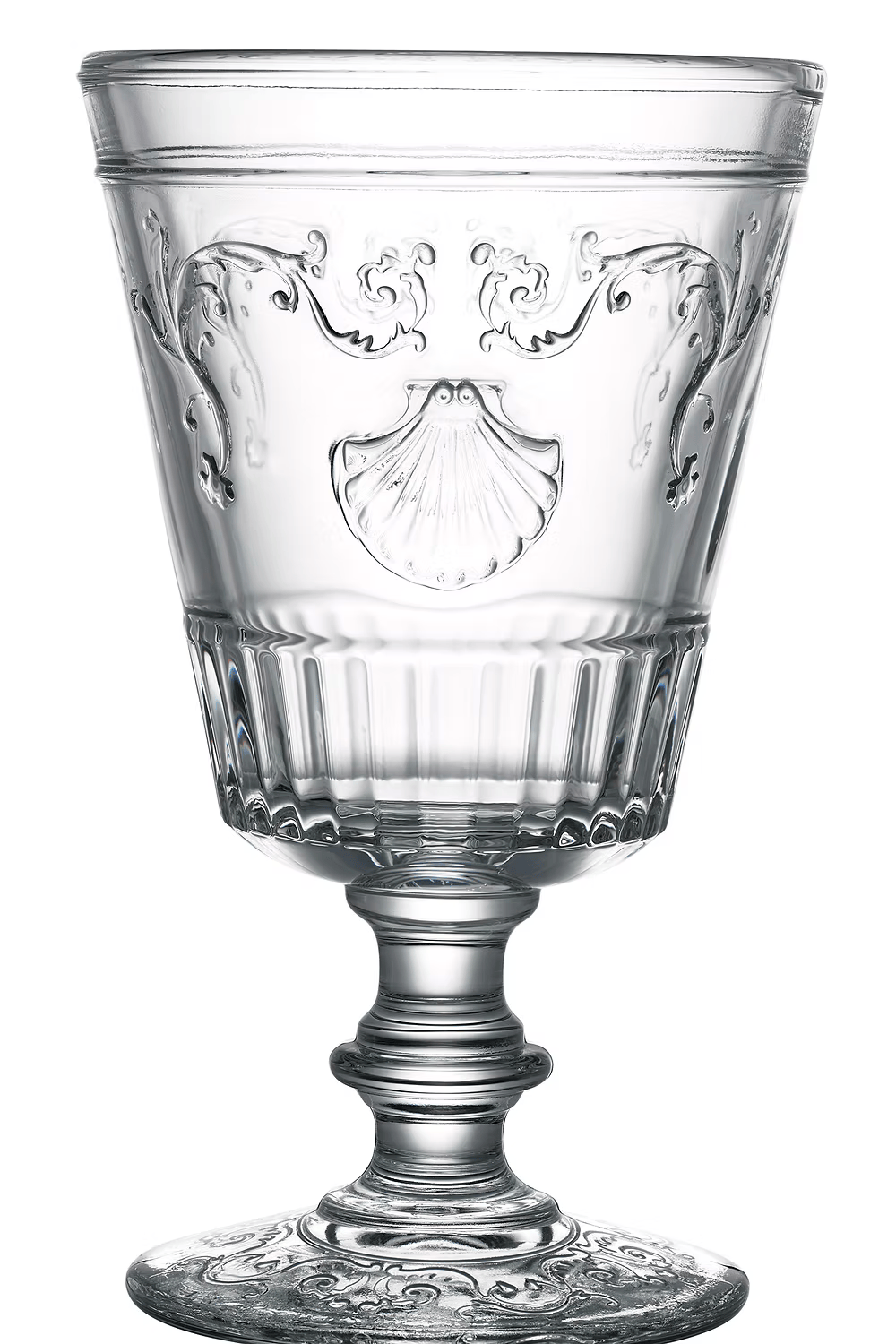 La Rochère Large Wine Glass VERSAILLES – A jewel on the table. This large wine glass made of pressed glass is perfect for a festive table or a stylish garden party. It features a beautiful baroque design.