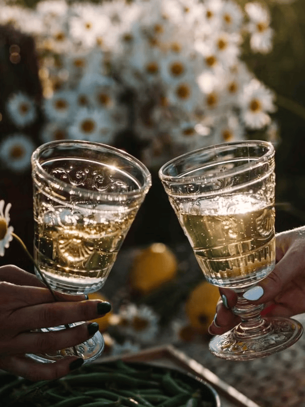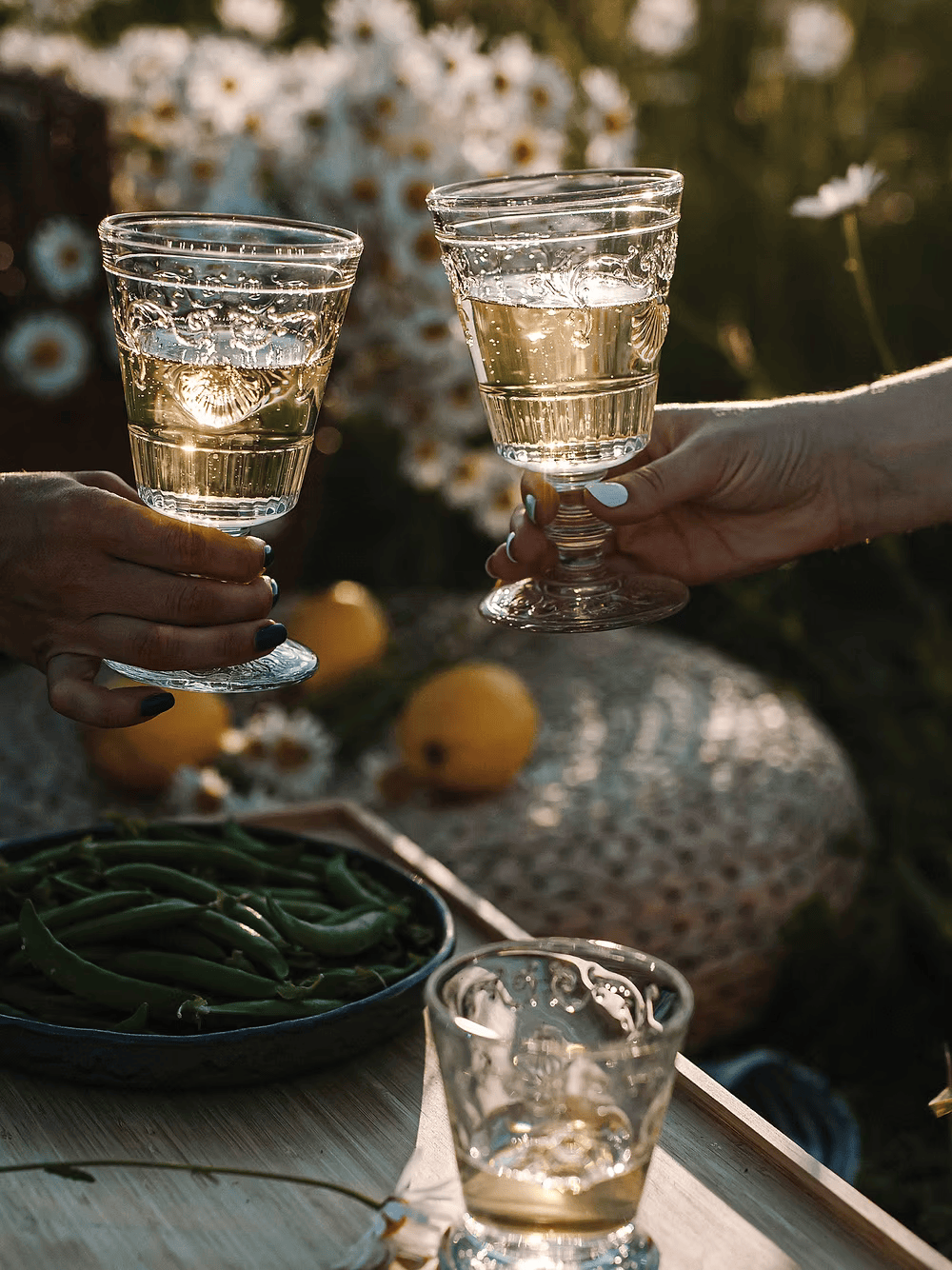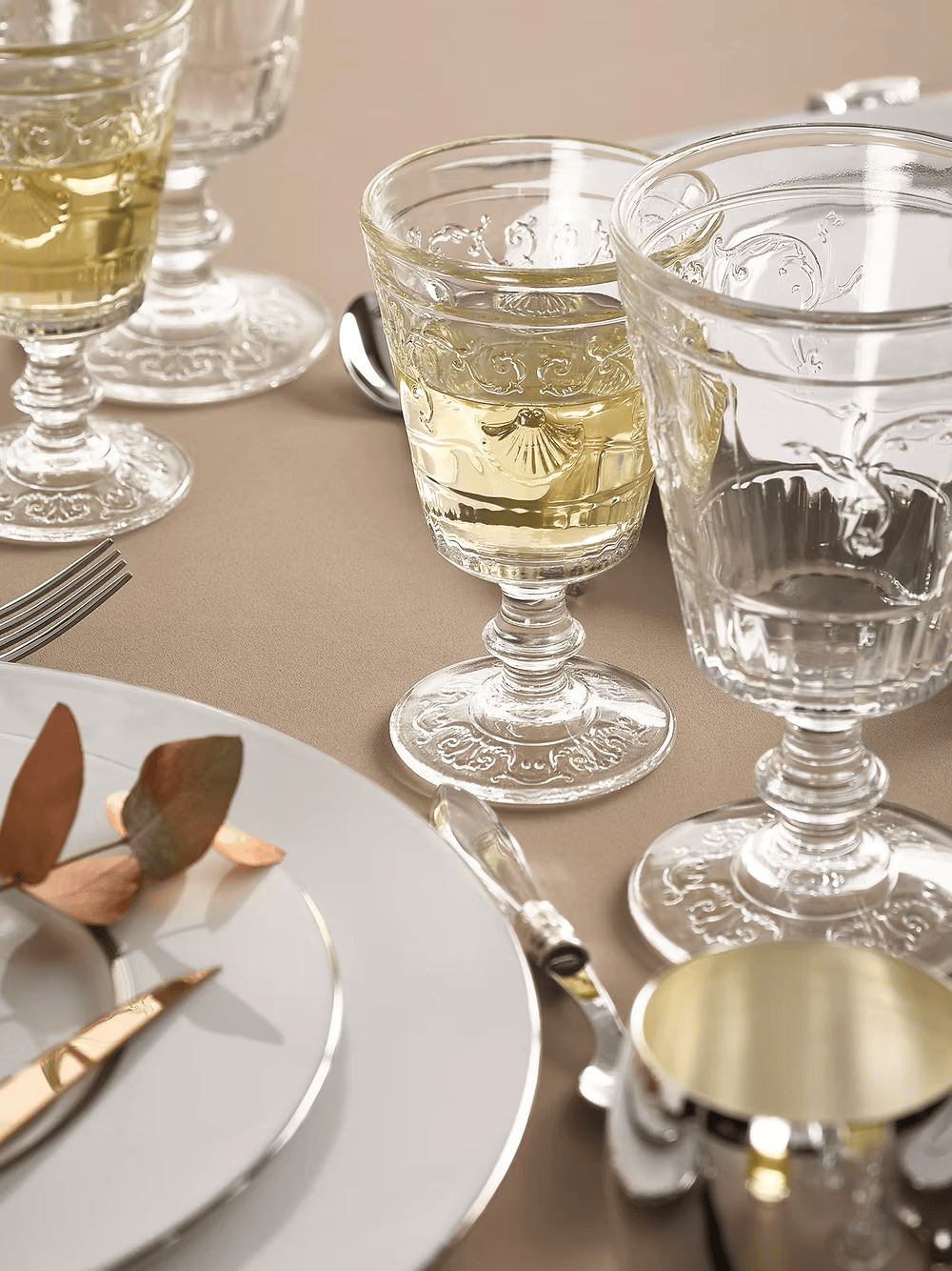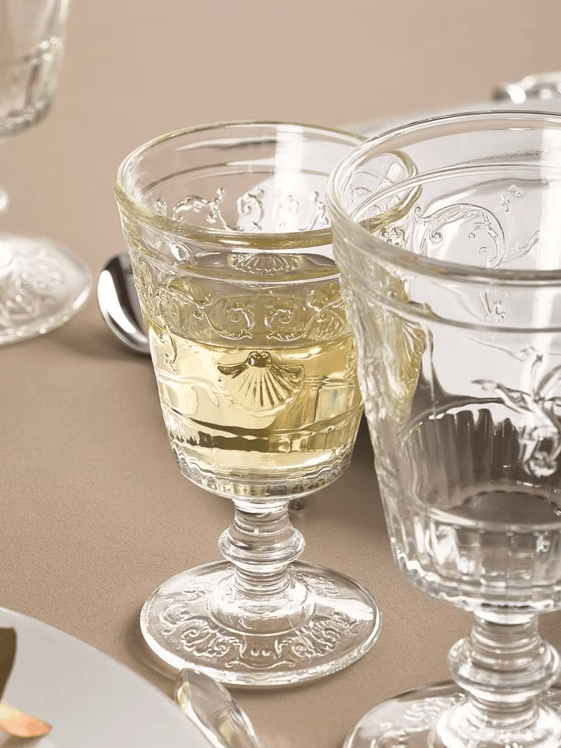 La Rochère Large Wine Glass VERSAILLES – A gem on the table. This small wine glass made of pressed glass is perfect for a festive table or a stylish garden party. It features a beautiful baroque design.