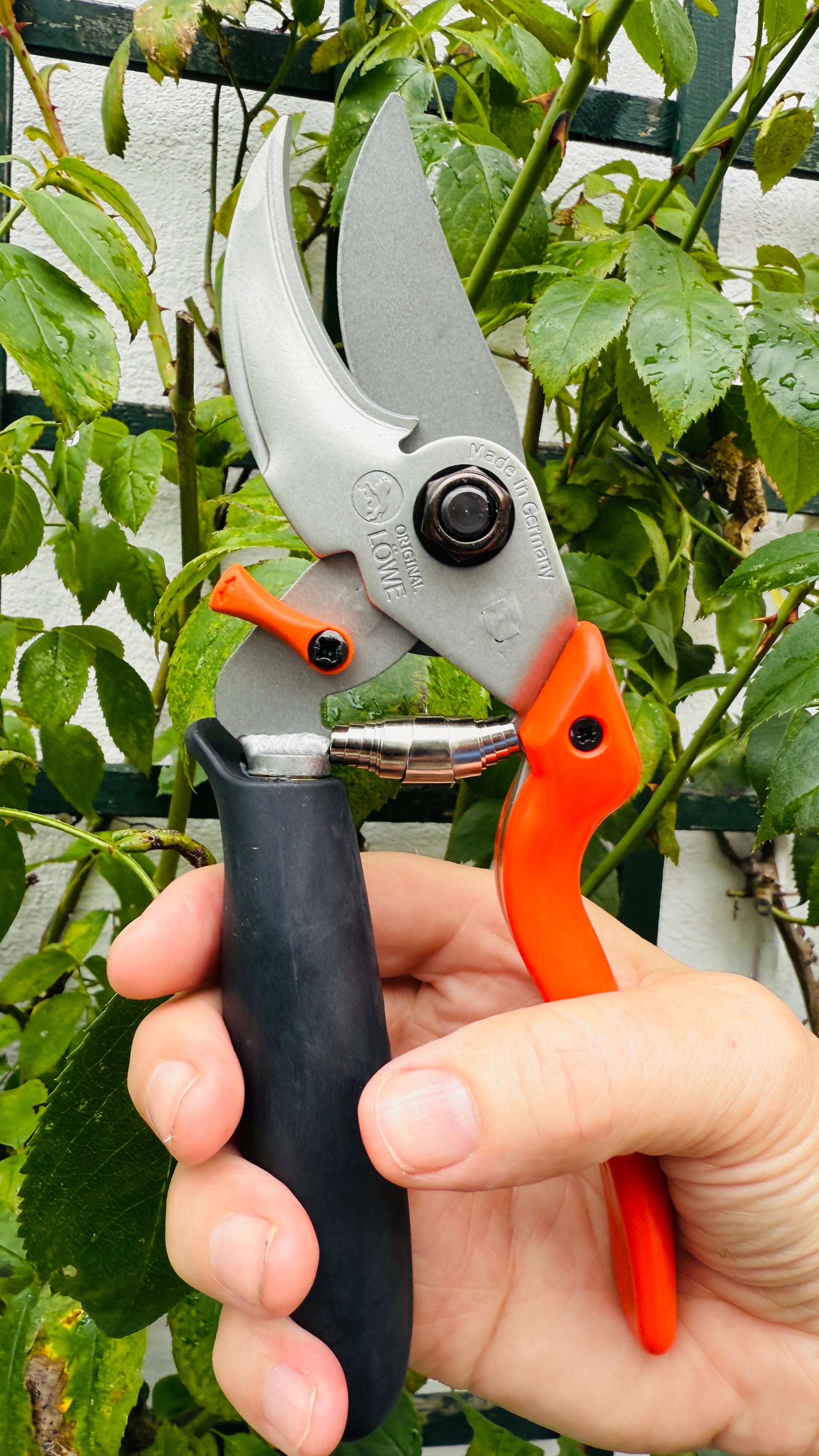 The original LÖWE 9.109 bypass shears with a rotating handle combine the highest quality with an ergonomic design. Made in Germany, they stand for long-lasting precision and maximum efficiency when cutting branches up to approximately 22 mm in diameter. The innovative rotating handle reduces strain on the hand and joints, while the sharp cutting head ensures precise, clean cuts.