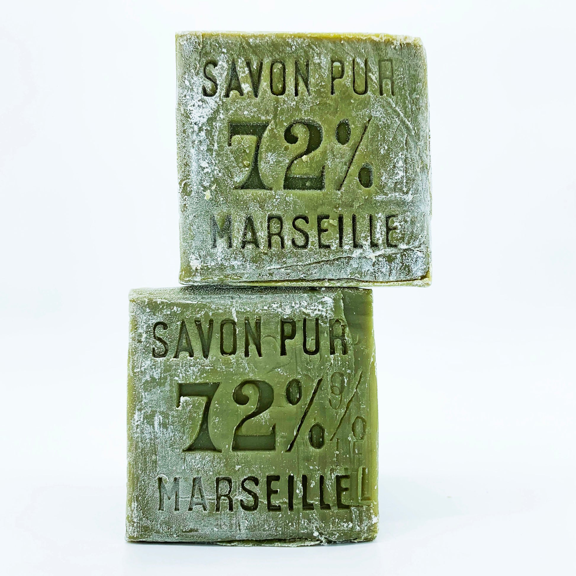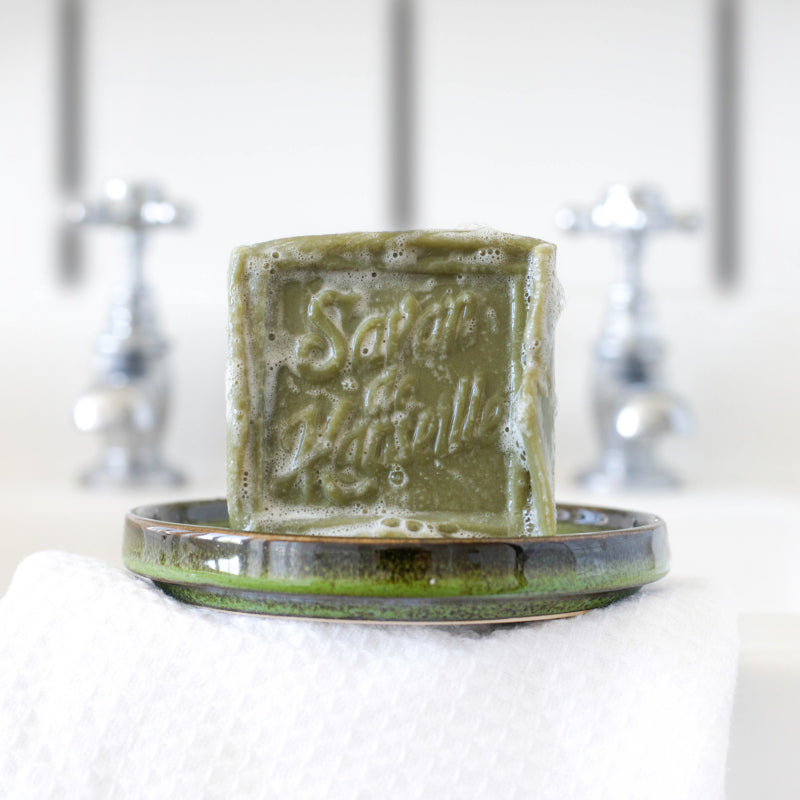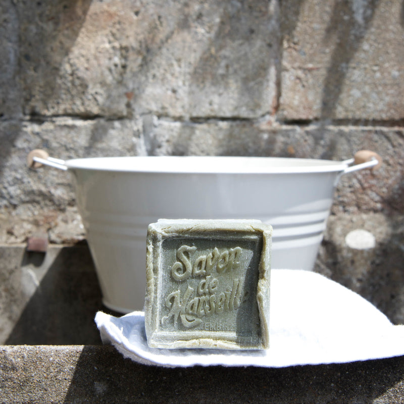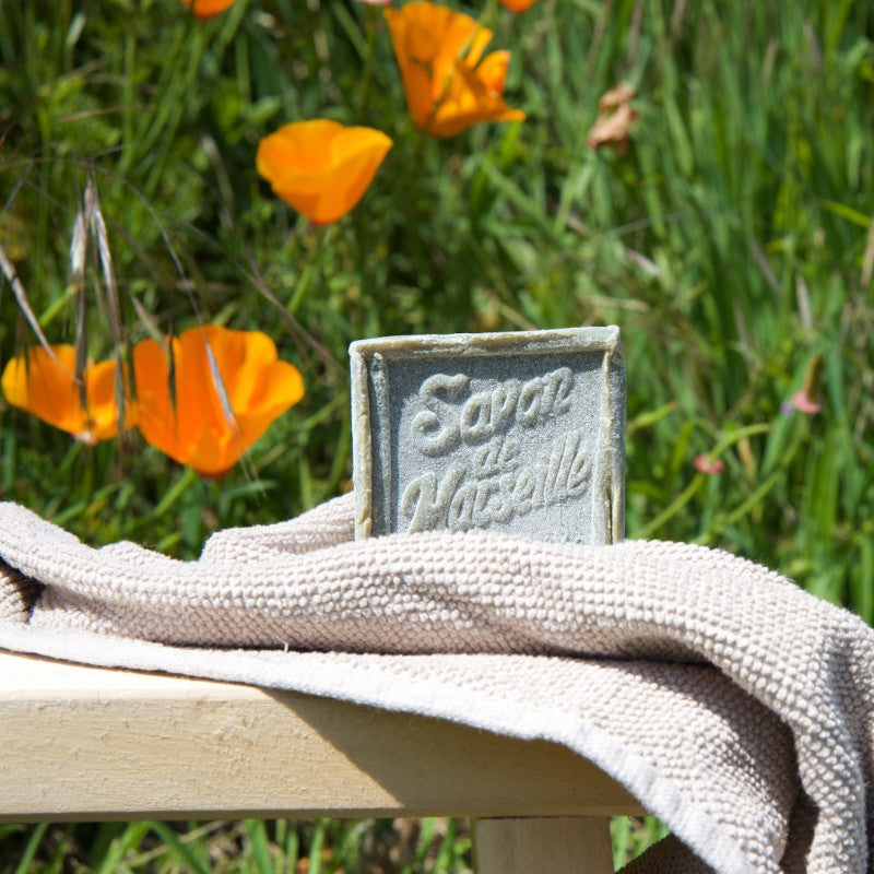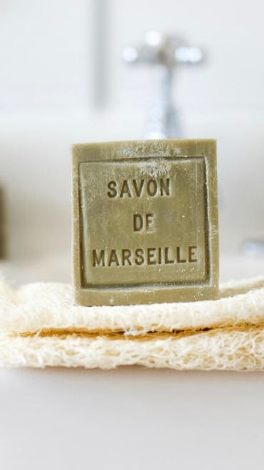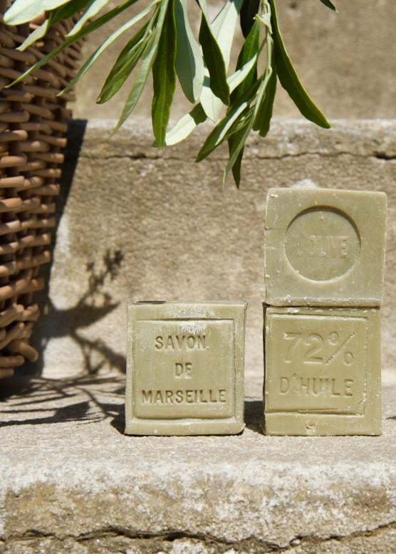 These genuine French Marseille soap cubes with olive oil are guaranteed free of palm oil, dyes, preservatives, or perfume. They are made in a cauldron using an ancestral process dating back over 300 years and bear the "Entreprise du Patrimoine Vivant" (EPV) quality seal.