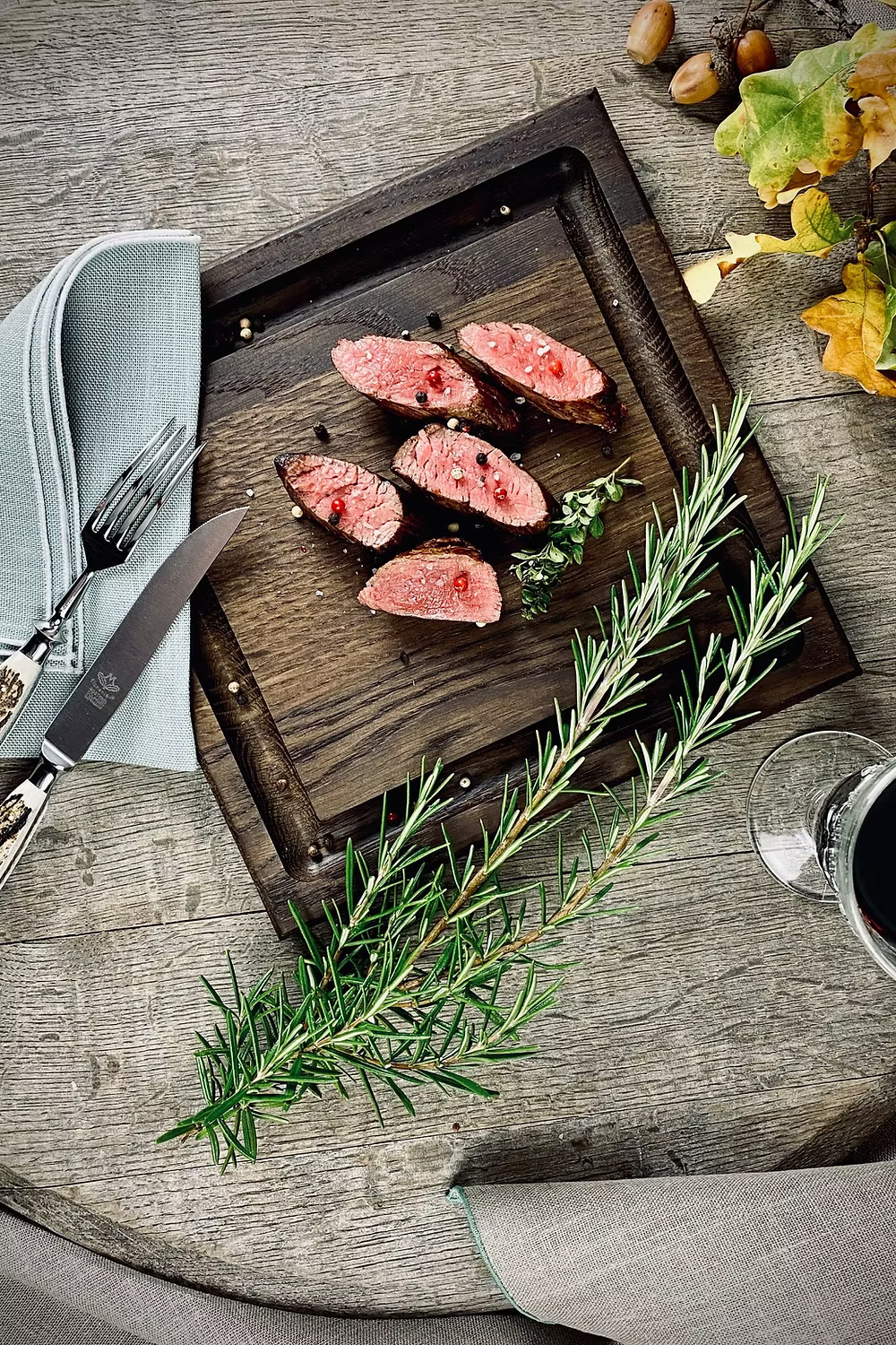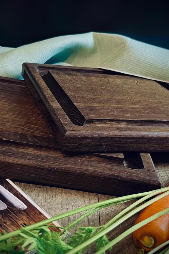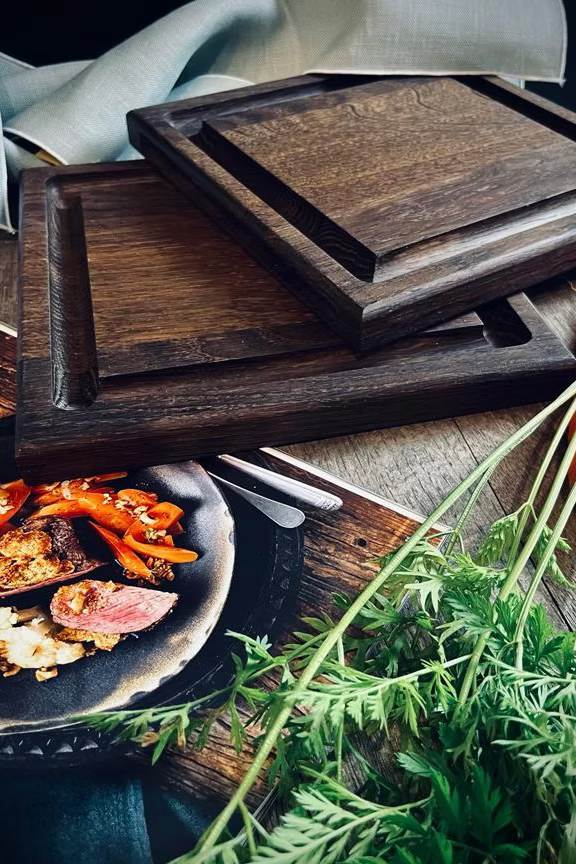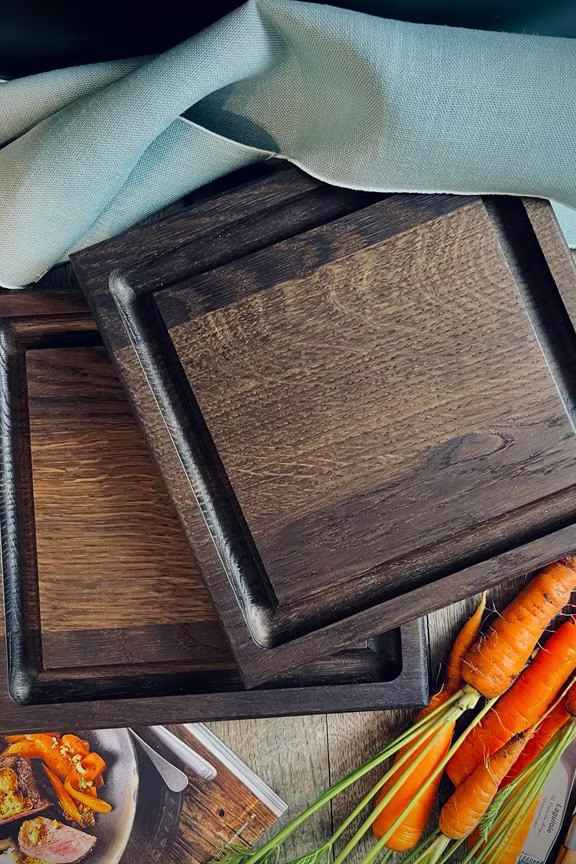 Steak board set of 2 made of solid oak in dark or natural with juice groove