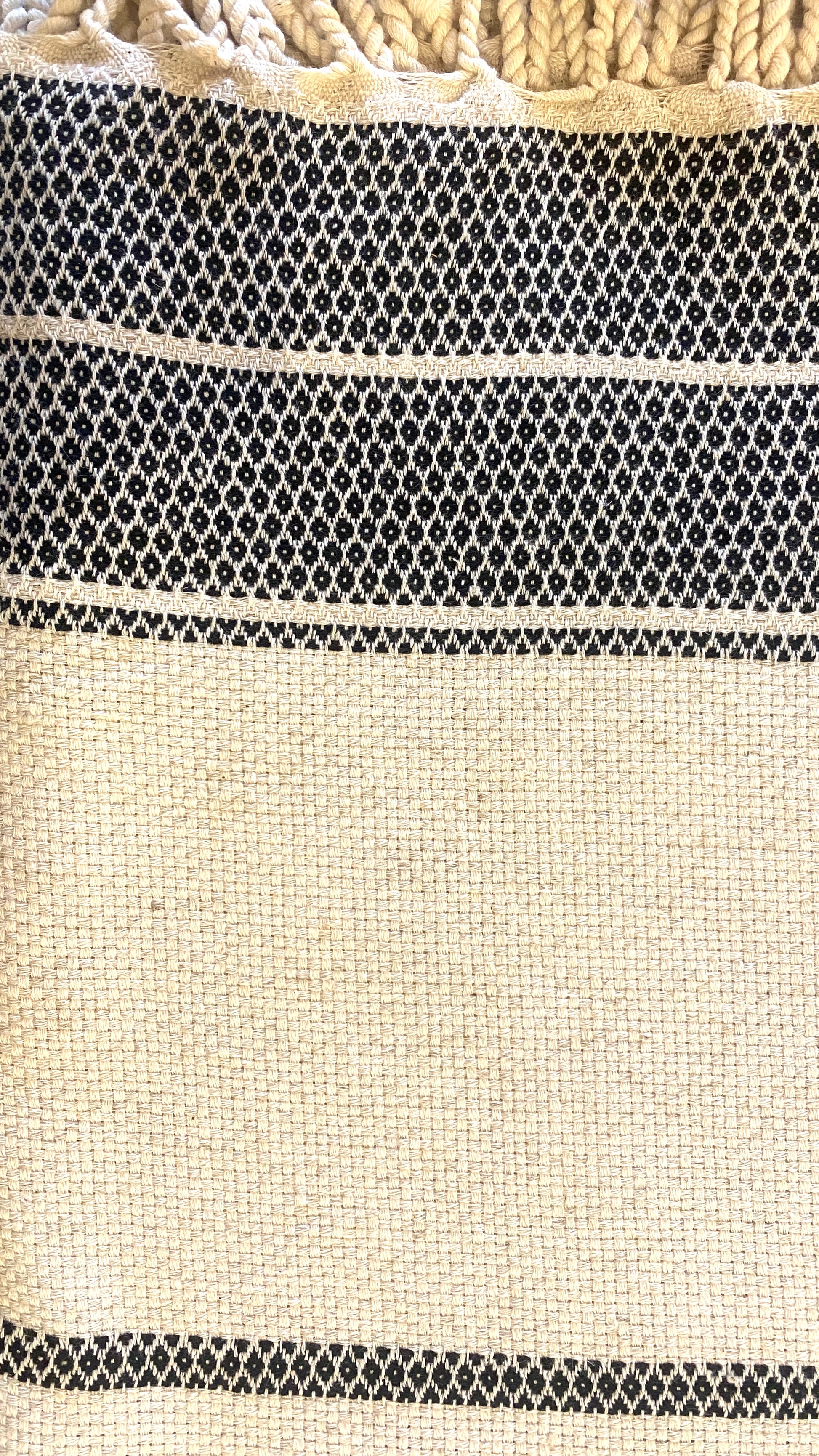 Beach towel, sauna towel, bath towel 50% linen 50% cotton black with 3in1 vanilla