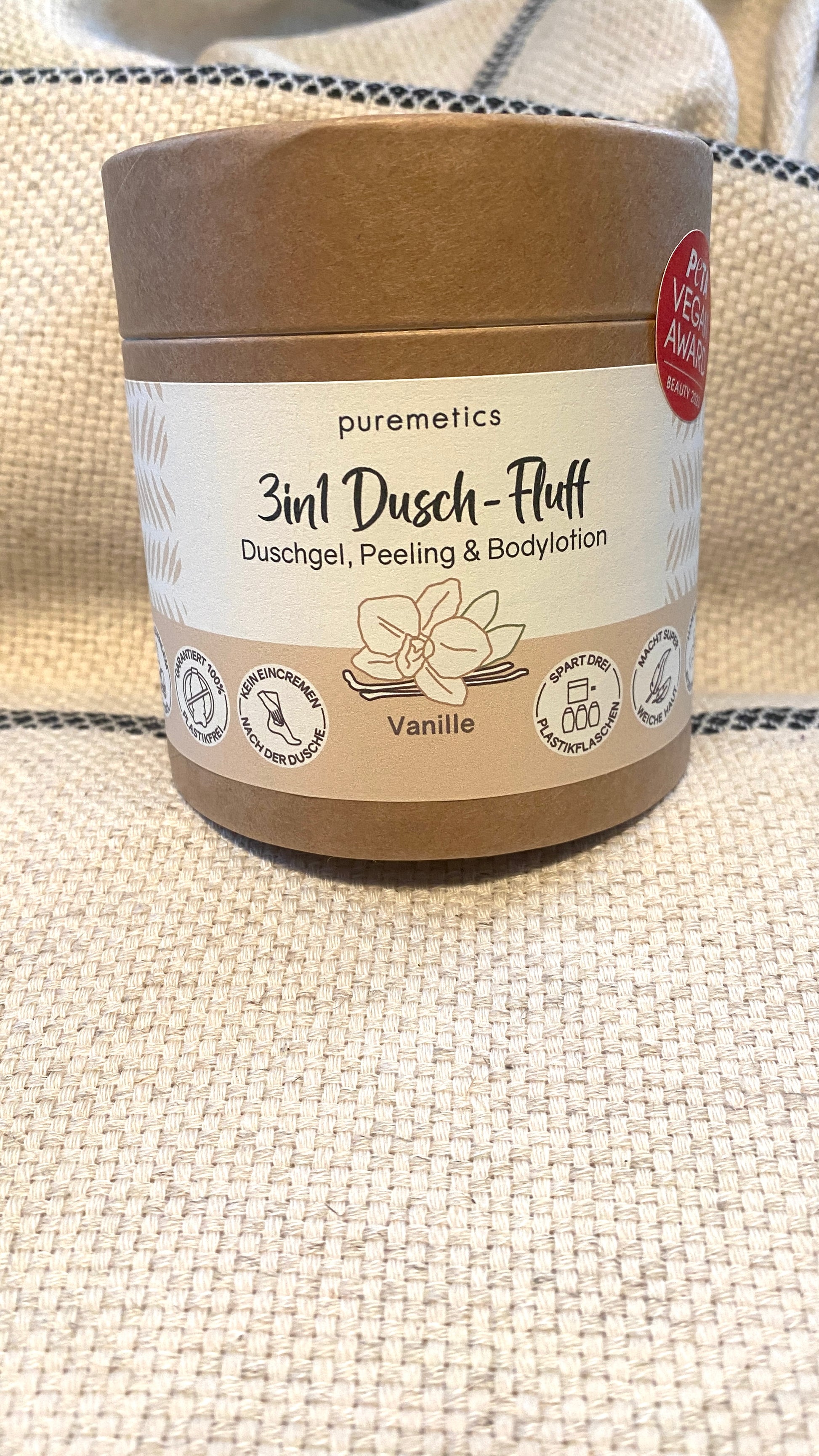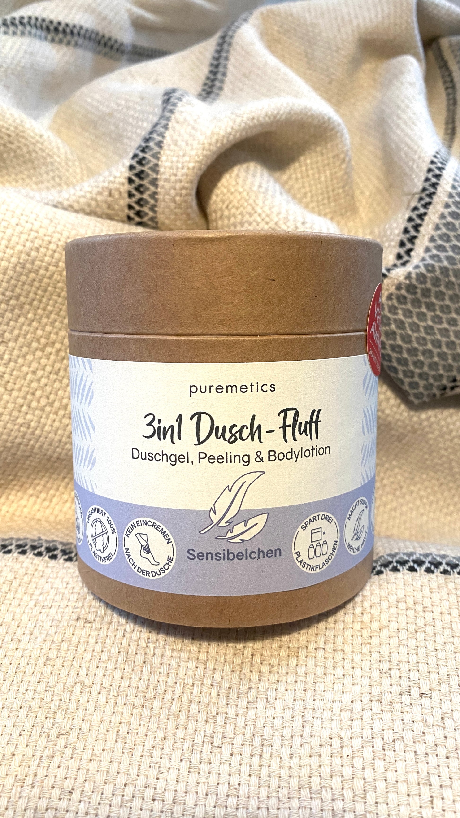- Shower Fluff: 3-in-1 Shower Gel, Scrub & Body Lotion