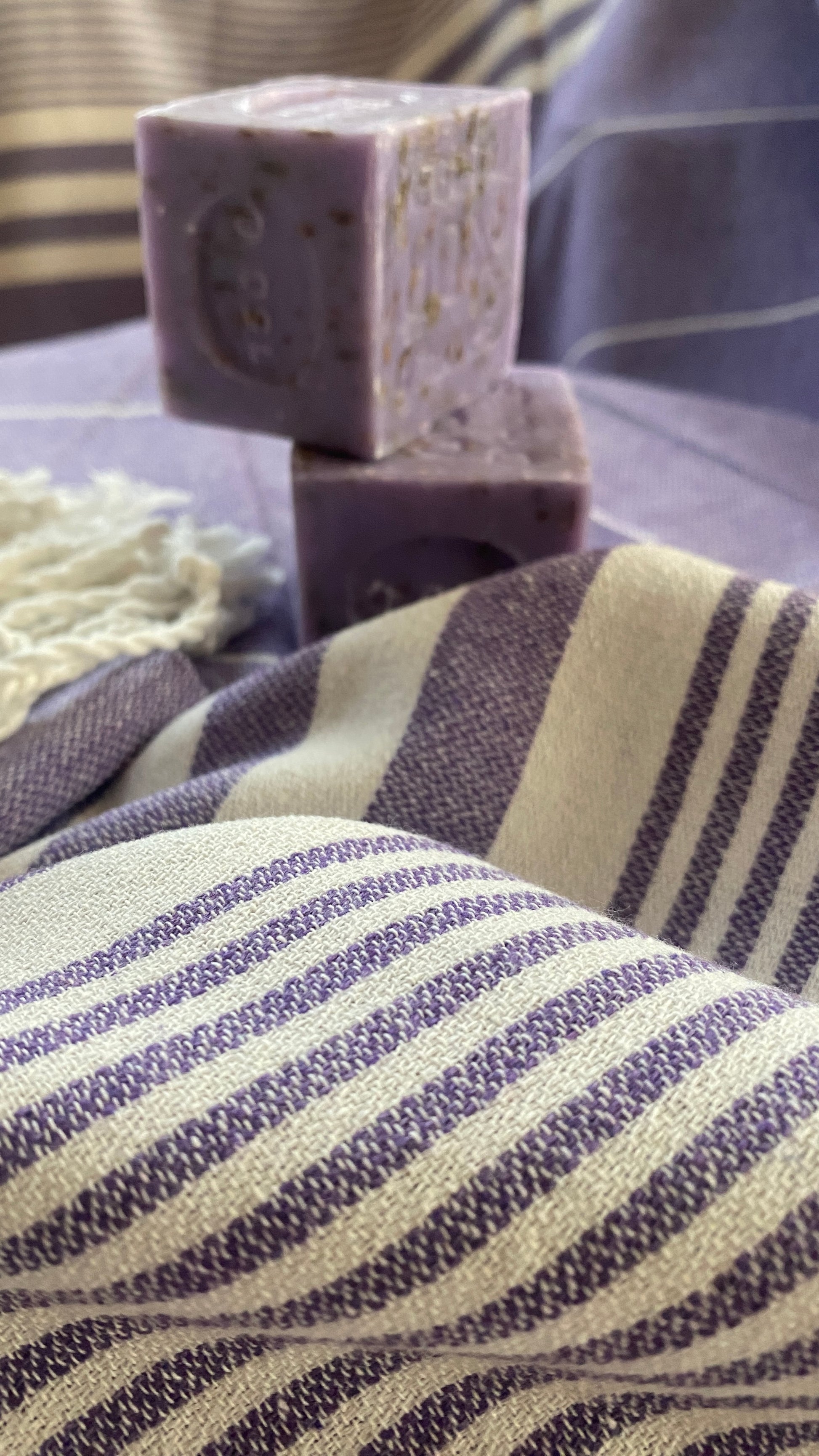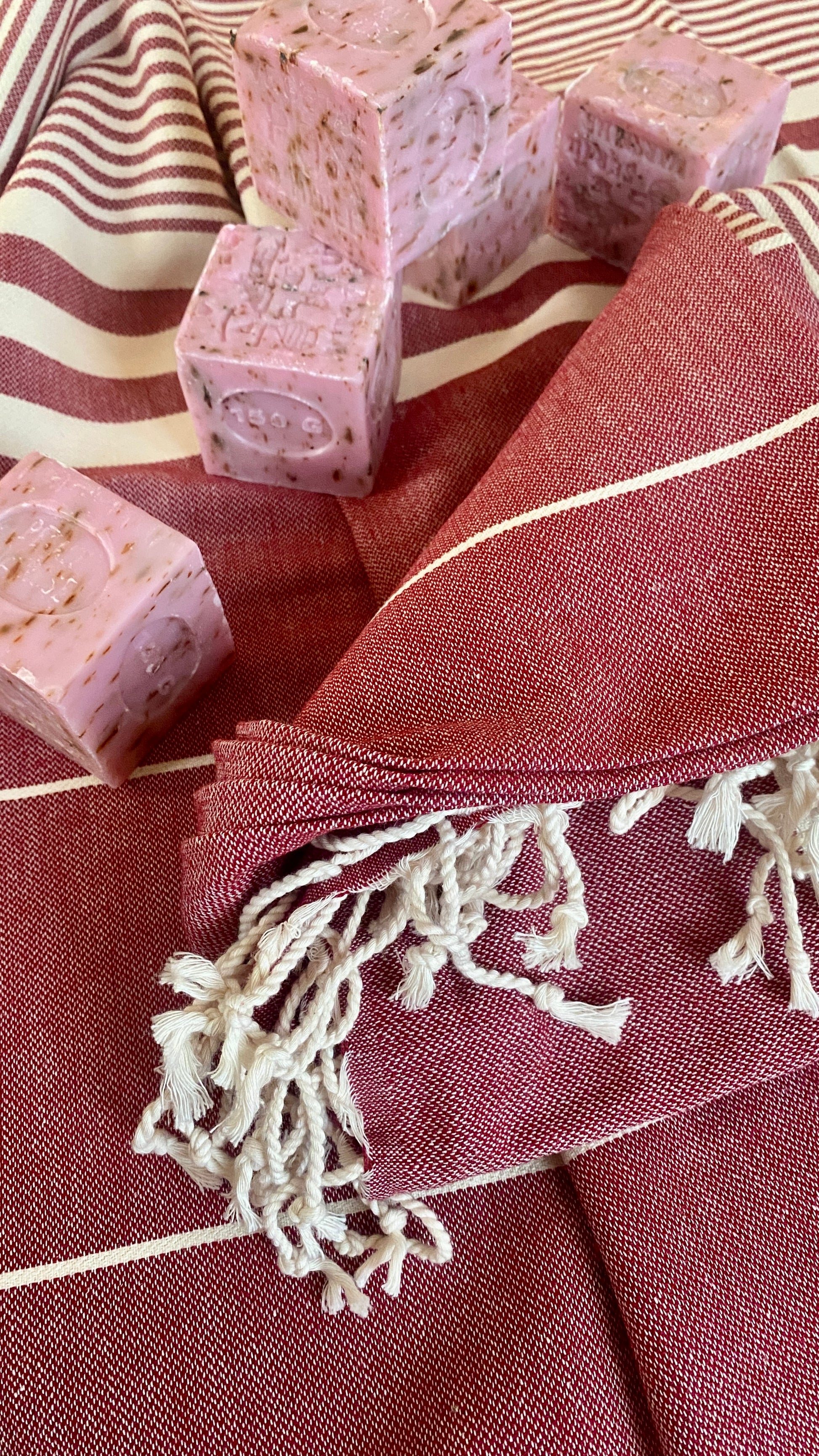Consisting of a high-quality 100% cotton towel and an original Marseille soap bar. The towels are handcrafted in Turkey using a centuries-old weaving technique dating back to the 16th century. They are exceptionally soft, lightweight (300 g), and versatile—perfect for the beach, sauna, bath, or as a wrap. The towels are dyed exclusively with natural root dyes and are completely plastic-free, environmentally friendly, and washable at 30°C.