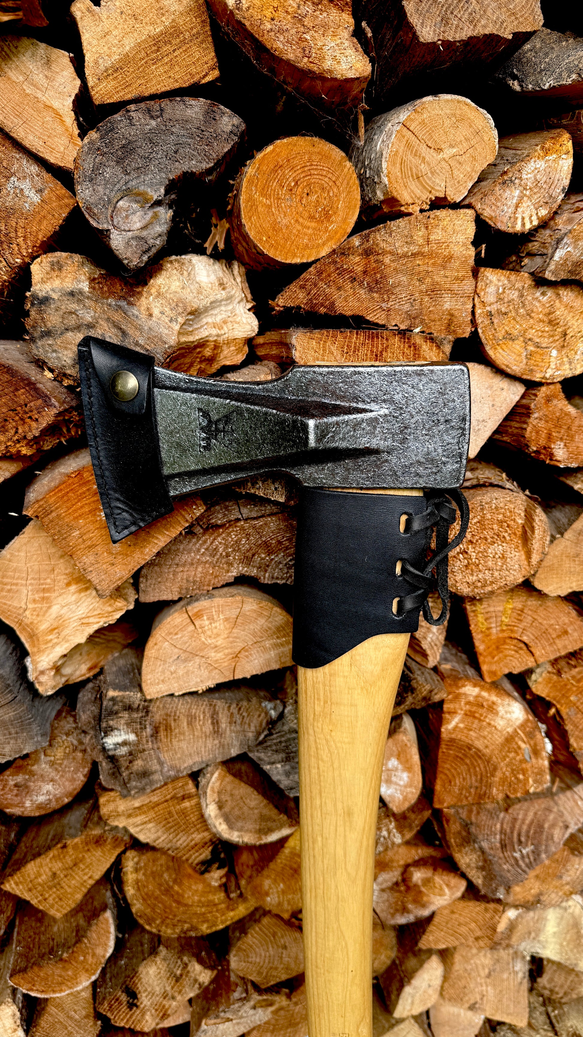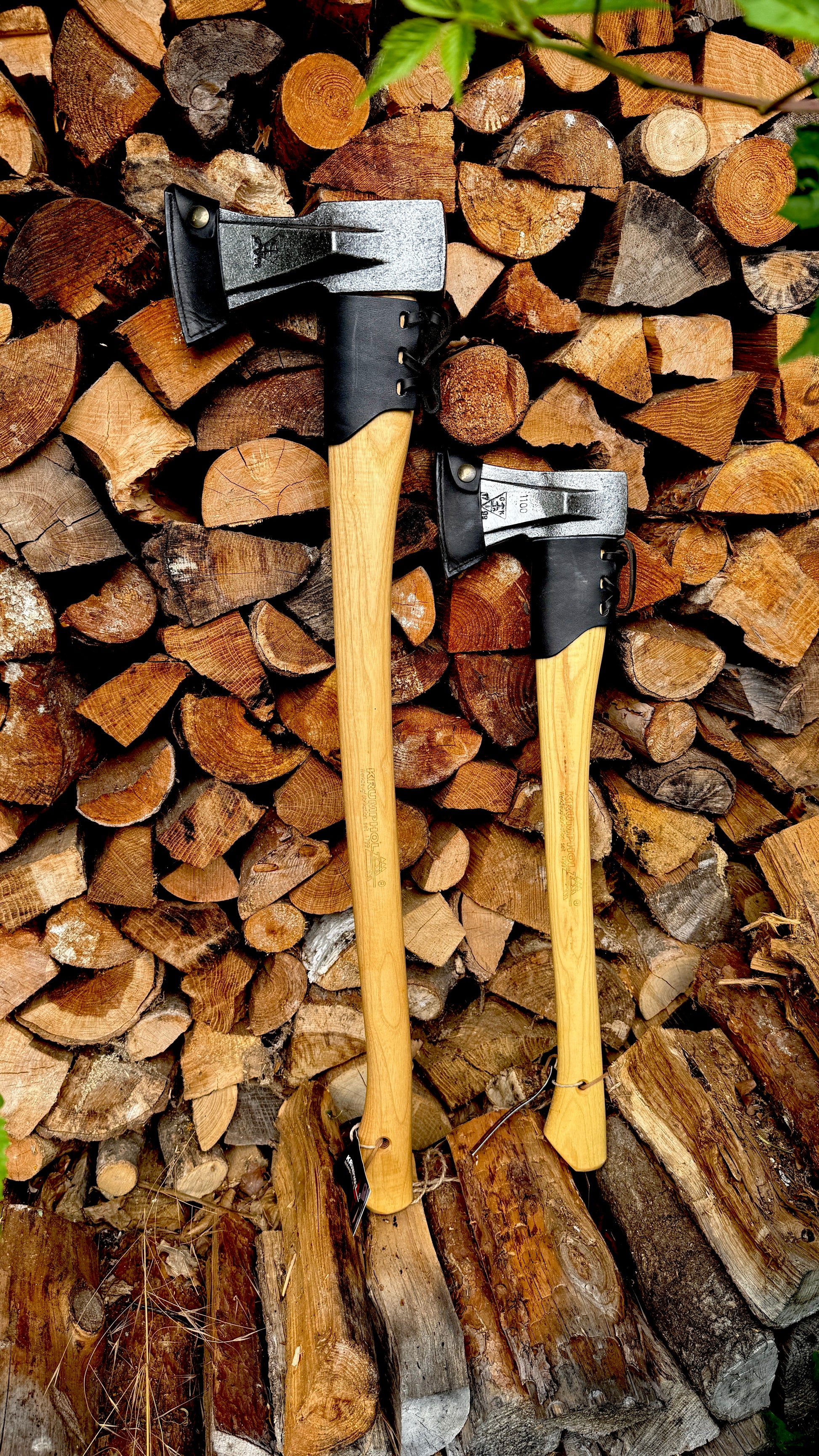 Hickory (optional): extremely durable, especially safe under heavy use; available with hand-stitched leather blade and handle protection.
