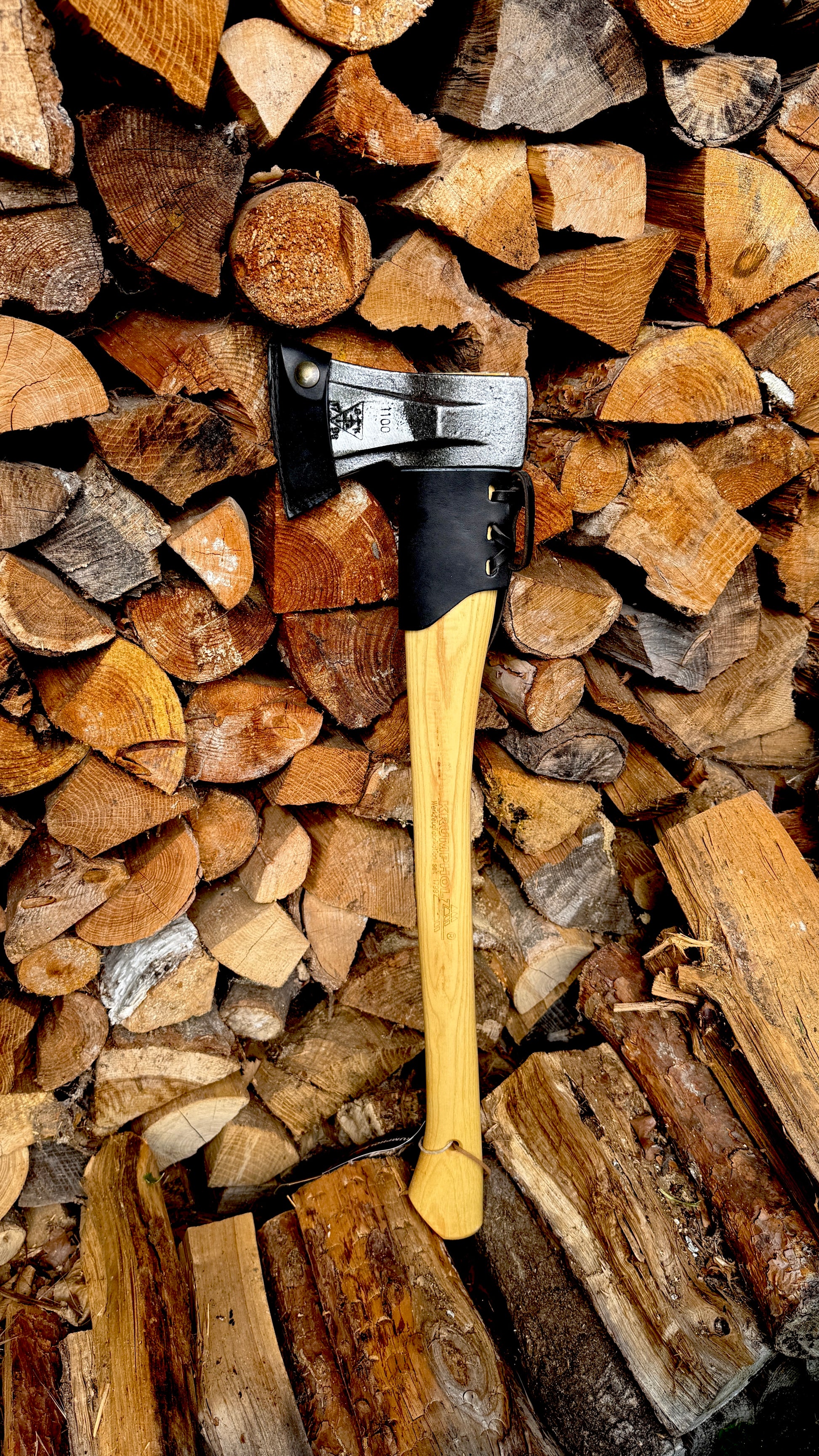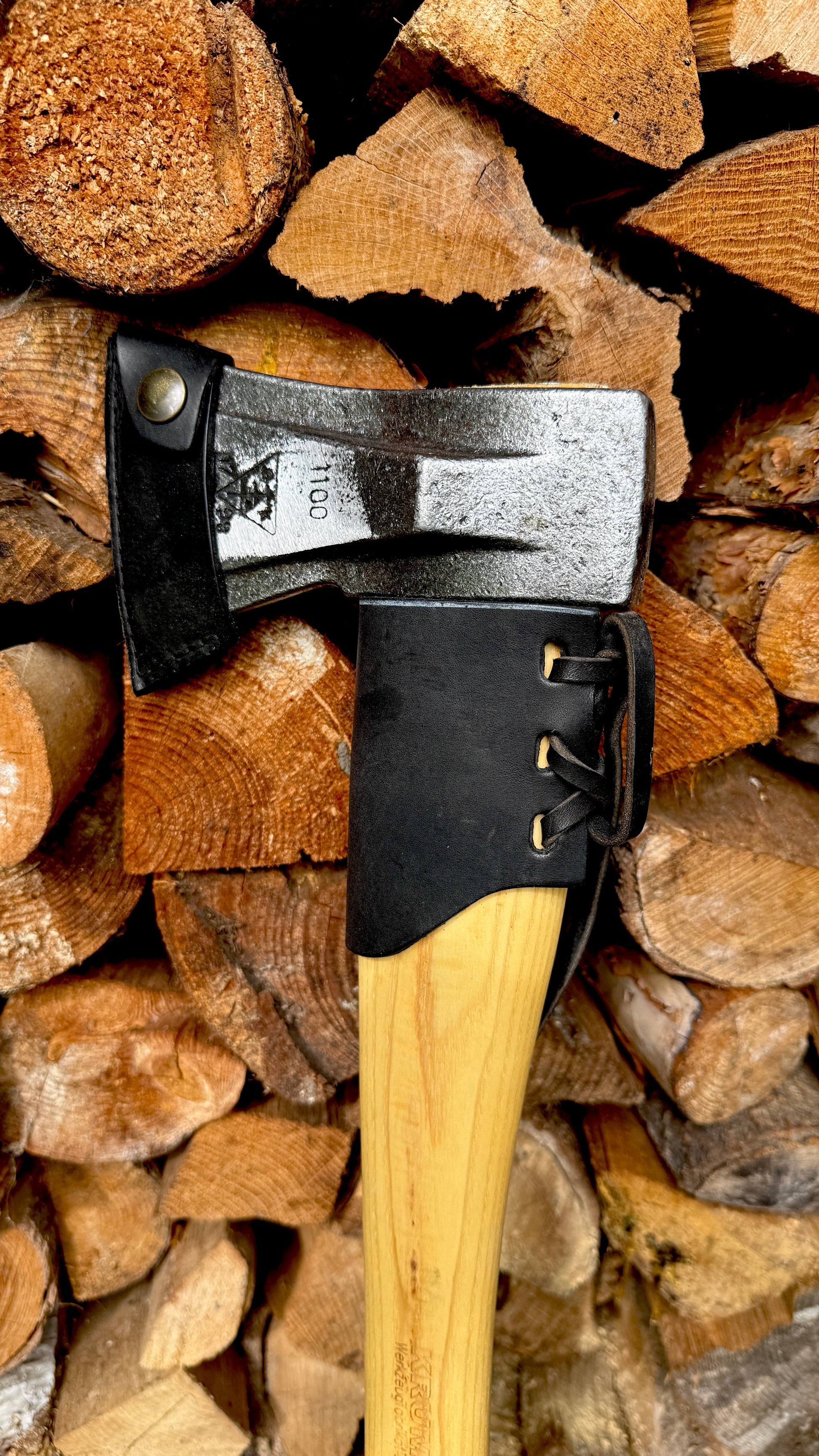 The Krumpholz Super Splitting Axe 371 is a hand-forged quality tool – ideal for efficiently splitting firewood. With a 1.10 kg hardened carbon steel head and a 60 cm long oiled ash wood handle, it offers excellent balance, easy on the joints and safe handling. The axe is also optionally available with a particularly robust hickory handle and with hand-stitched leather cutting and handle protection. Perfect for everyday use in woodworking.