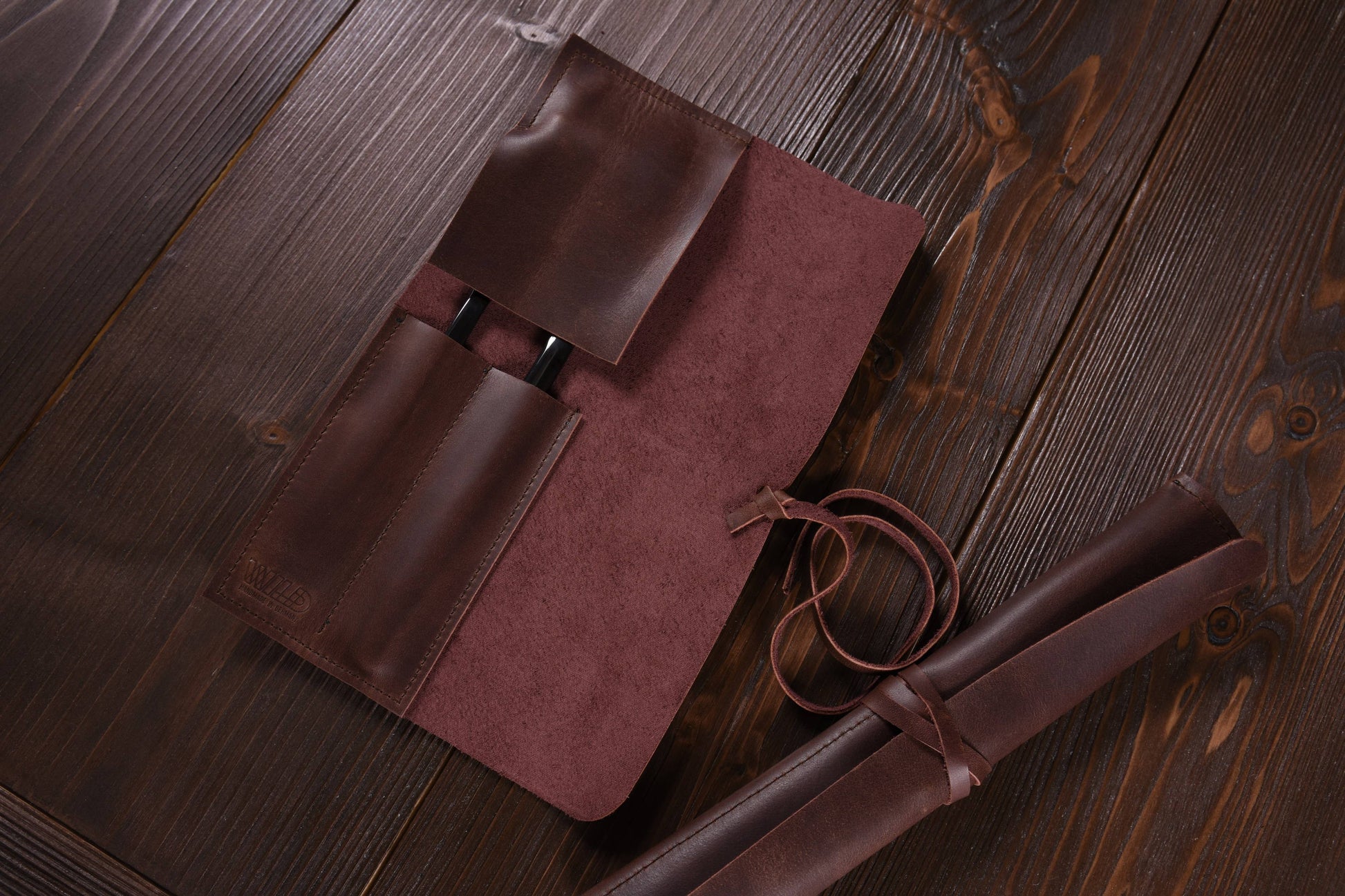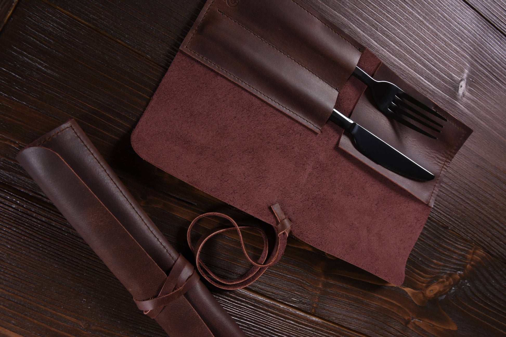 Bestecketui Ob Restaurant oder daheim - machen Sie ihre Mahlzeit zu einem angenehmen Ritual. Speziell für dieses Erlebnis ist das Wild Bestecketui entworfen. Ein Rolletui für zweierlei Besteck zum zusammen binden aus hochwertigem Leder. Das Produkt wurde aus speziellem Pull-up Leder gefertigt das bereits bei der Herstellung stark gefettet wird und somit im Nachgang und durch die Nutzung eine Individuelle Marmorierung entsteht. Infos: - 100% Pflanzlich gegerbtes Rindsleder, - Handgemacht in Düsseldorf, - Lederstärke ca. 1,6mm
