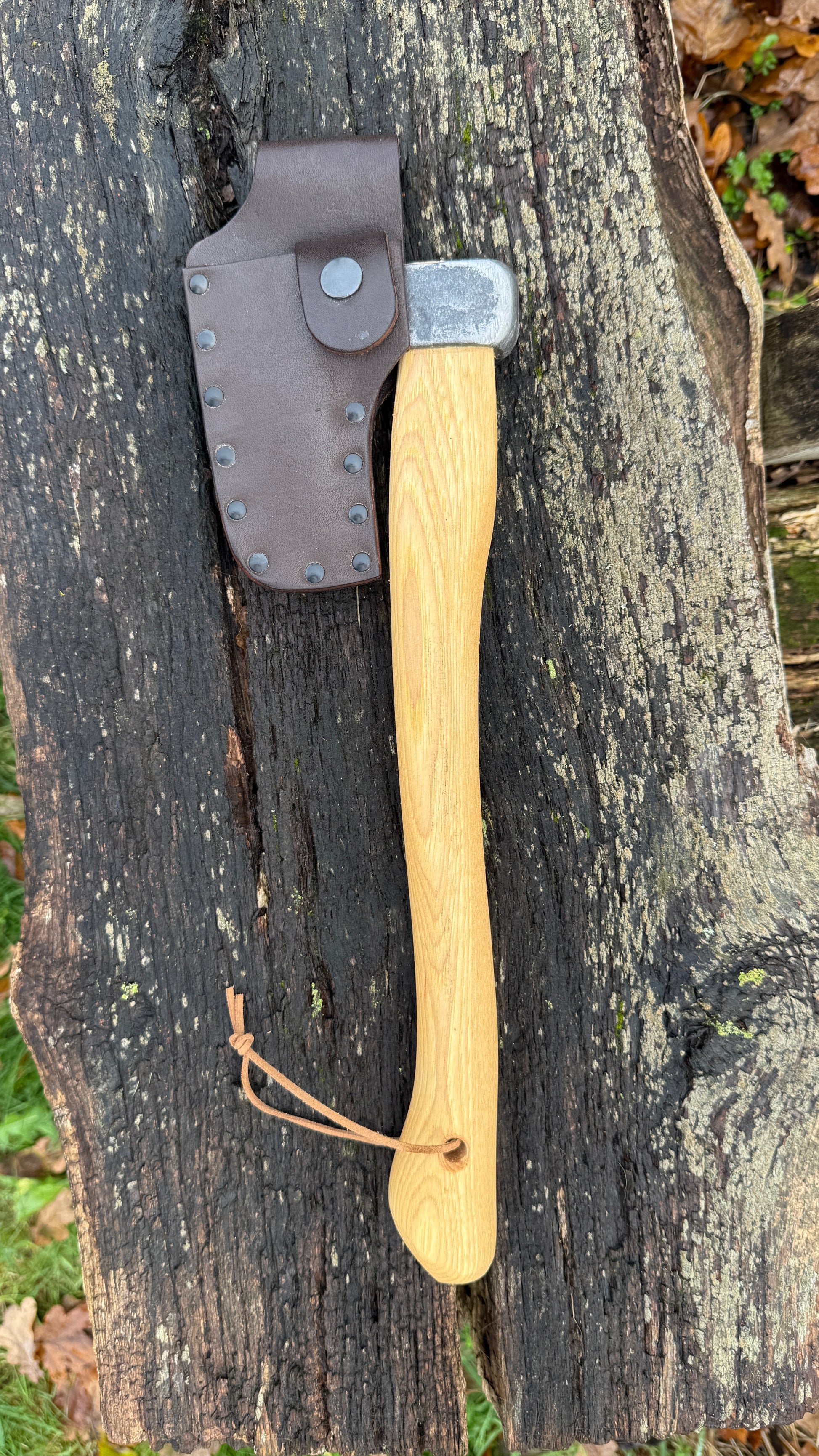 Der ergonomisch geformte Stiel aus geöltem Eschenholz (Europa) bietet eine hervorragende Griffigkeit und sorgt für eine optimale Kraftübertragung. Das Beil ist mit einem passenden Lederschneidenschutz erhältlich, der die Schneide zuverlässig schützt und die Sicherheit beim Transport erhöht.