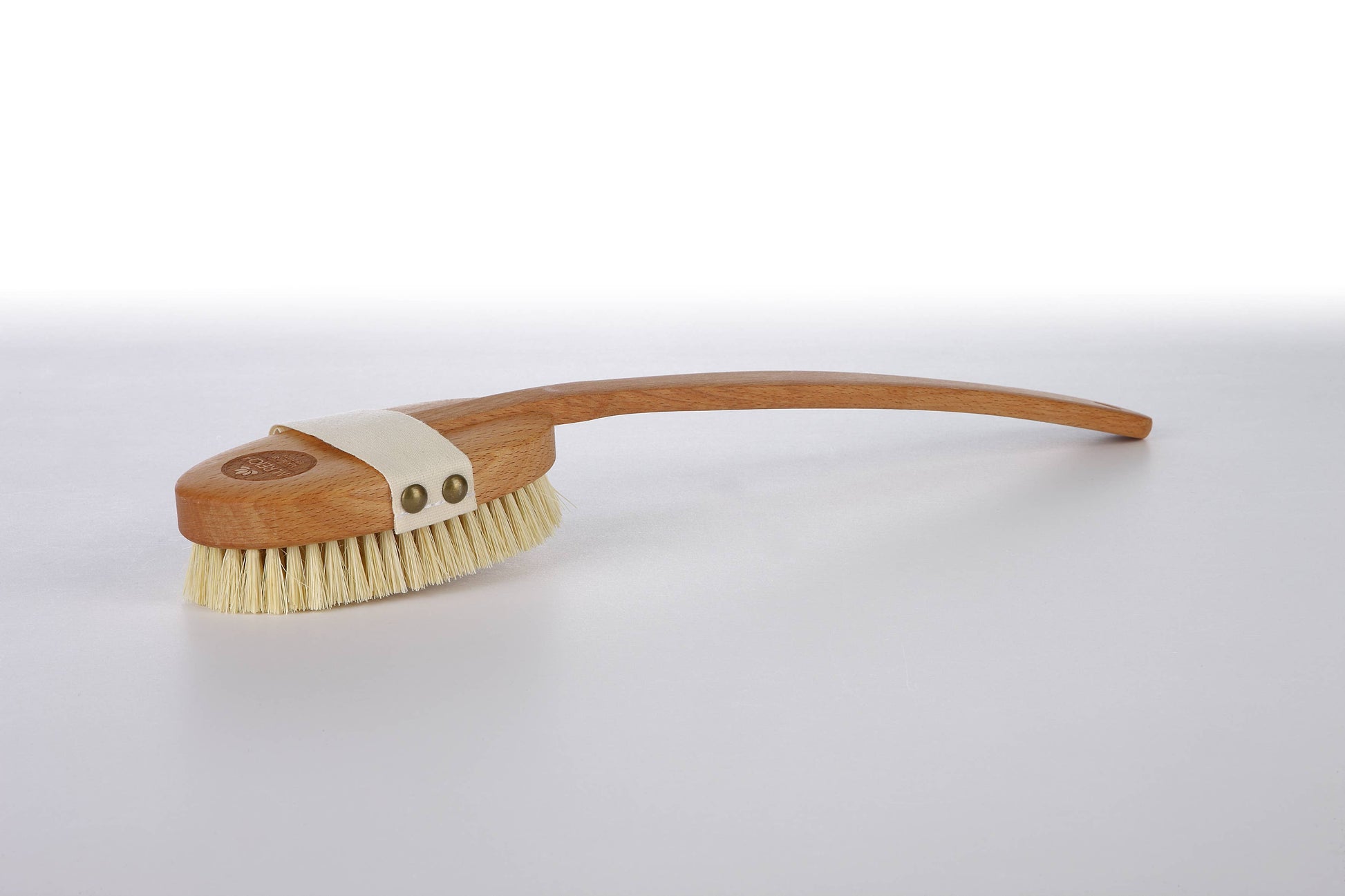 Die praktische 2in1 KörperBürste eignet sich sowohl für eine Trocken- als auch eine Nassbürstung während eines entspannten Vollbads. Die feinen Borsten aus Kakteen machen das Trockenbürsten besonders angenehm. Die Naturbürste wird schonend hergestellt und eignet sich ideal als Körperpeeling-Bürste.